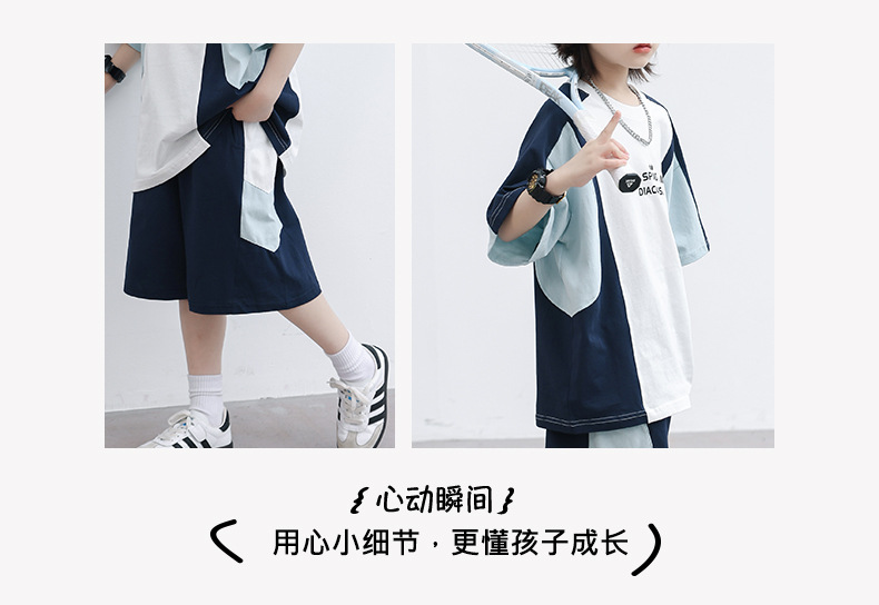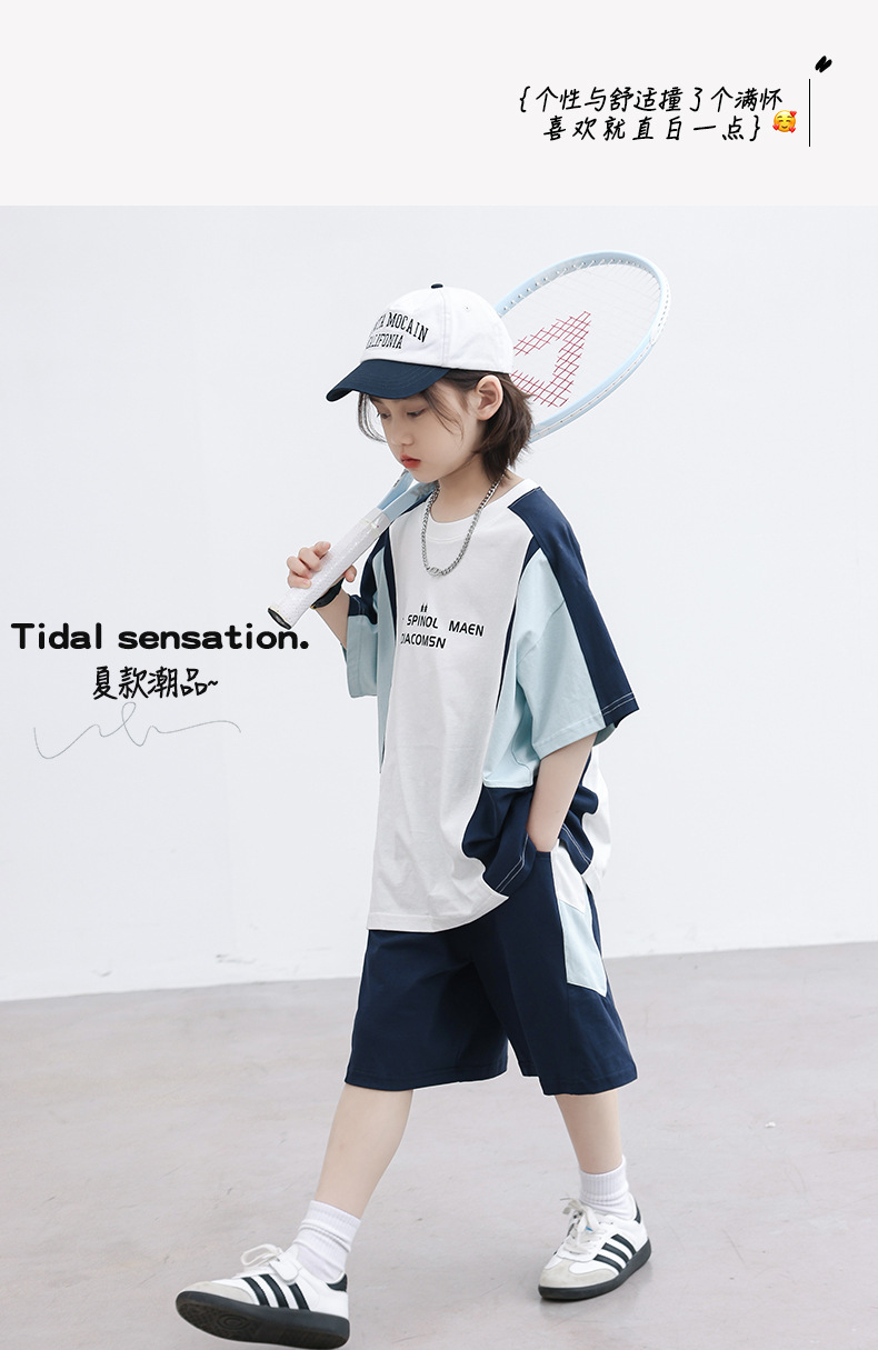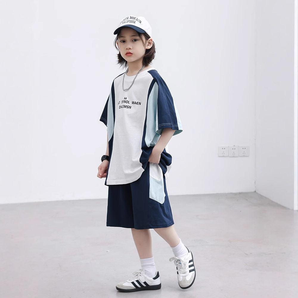 소년 여름 스포츠 반팔 양복 2025 새로운 중대형 어린이 여름 스트리트 스타일 소년 투피스 세트 유행스토어 가기