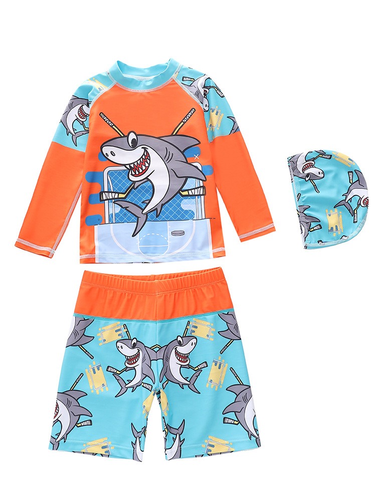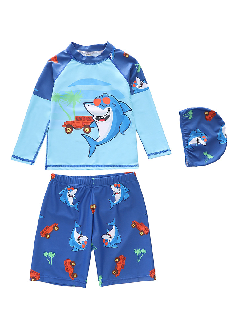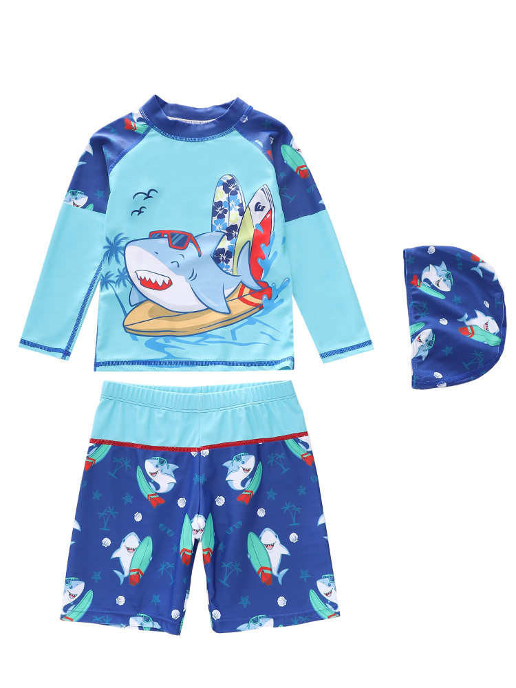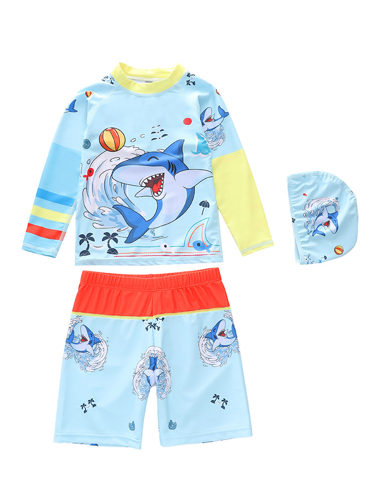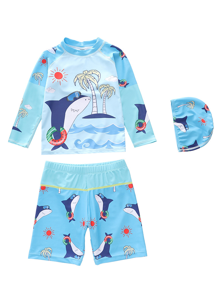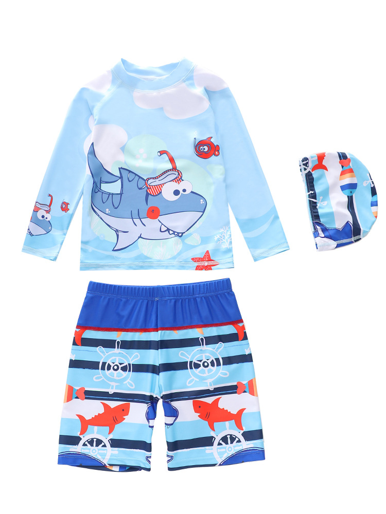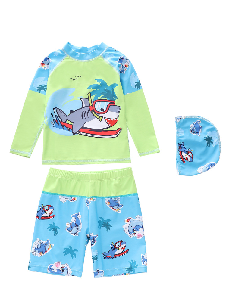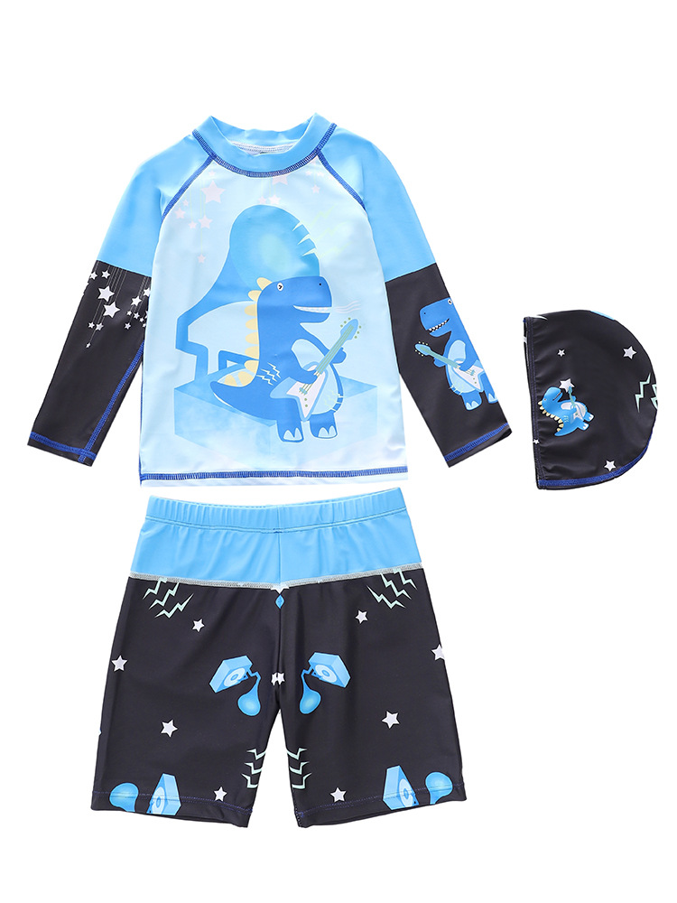 2025 새로운 어린이 수영복 남자 스플릿 긴팔 중간 바지 소형, 중형 및 대형 어린이 수영복 복서 팬티 소년 수영복스토어 가기