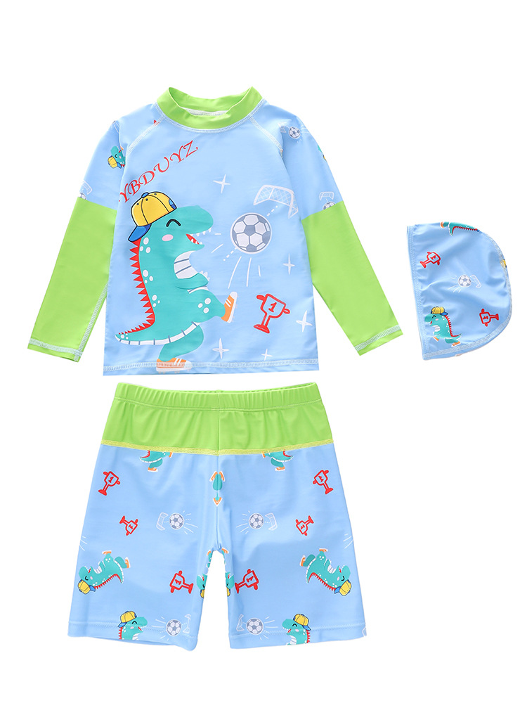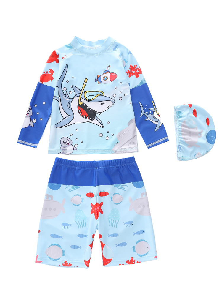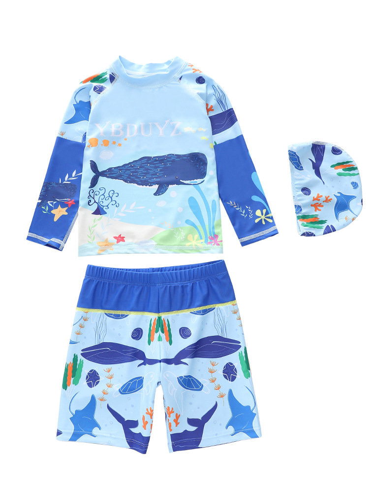 2025 새로운 어린이 수영복 남자 스플릿 긴팔 중간 바지 소형, 중형 및 대형 어린이 수영복 복서 팬티 소년 수영복
