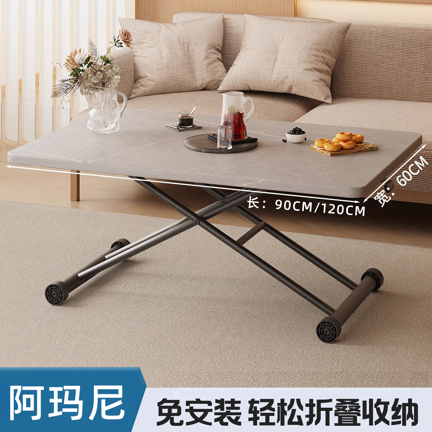 가정용 접이식 높이 조절 티 테이블 식탁 휴대용 야외 판매대 긴 테이블 침대 옆 책상 도매스토어 가기