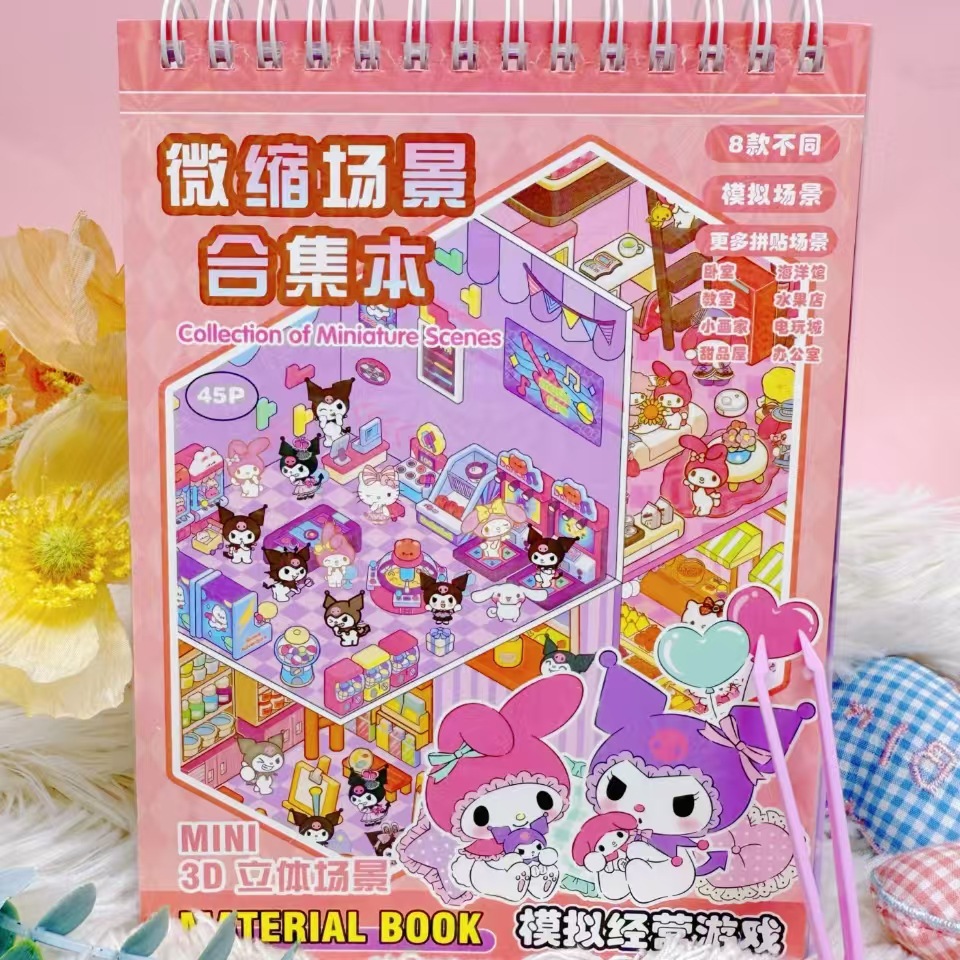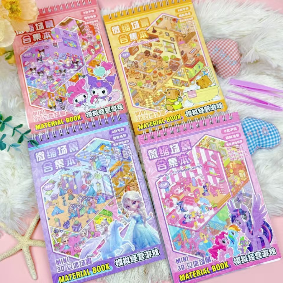 5원 가게 공급 업체 박스 포장 입체 미니어처 장면 모음 스티커 부모-자녀 상호작용 만화 미니어처 장면 스티커