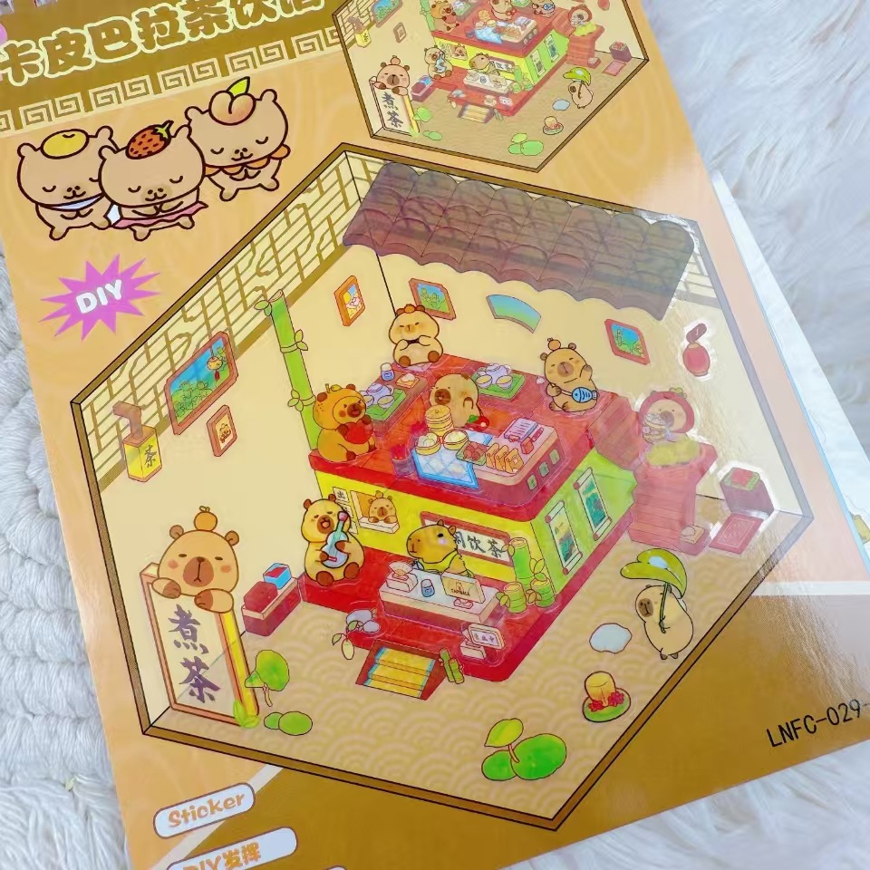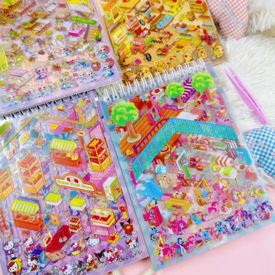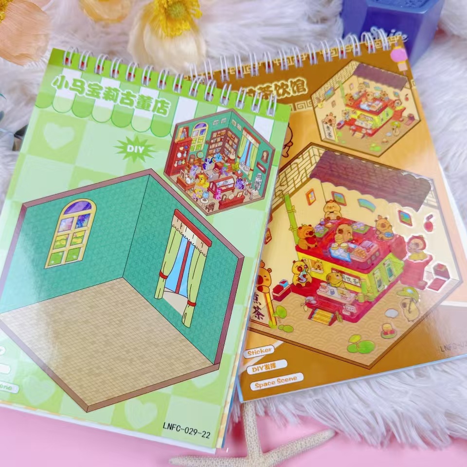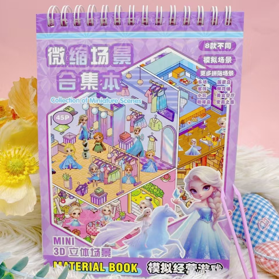 5원 가게 공급 업체 박스 포장 입체 미니어처 장면 모음 스티커 부모-자녀 상호작용 만화 미니어처 장면 스티커스토어 가기