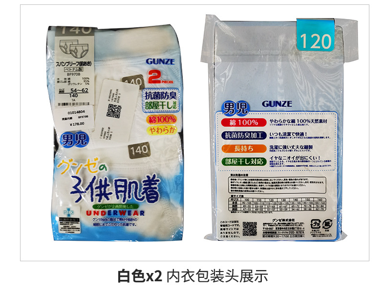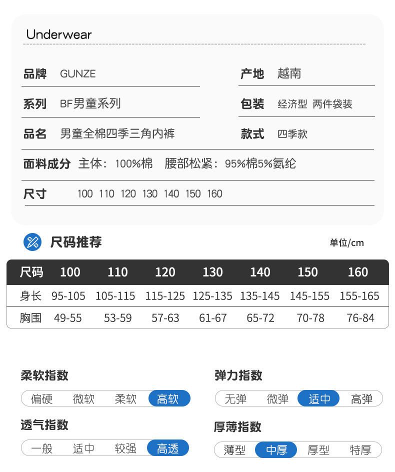Gunze kids는 어린이 소년 순면 속옷 항균 및 탈취 부드러운 면 사계절 팬티입니다.