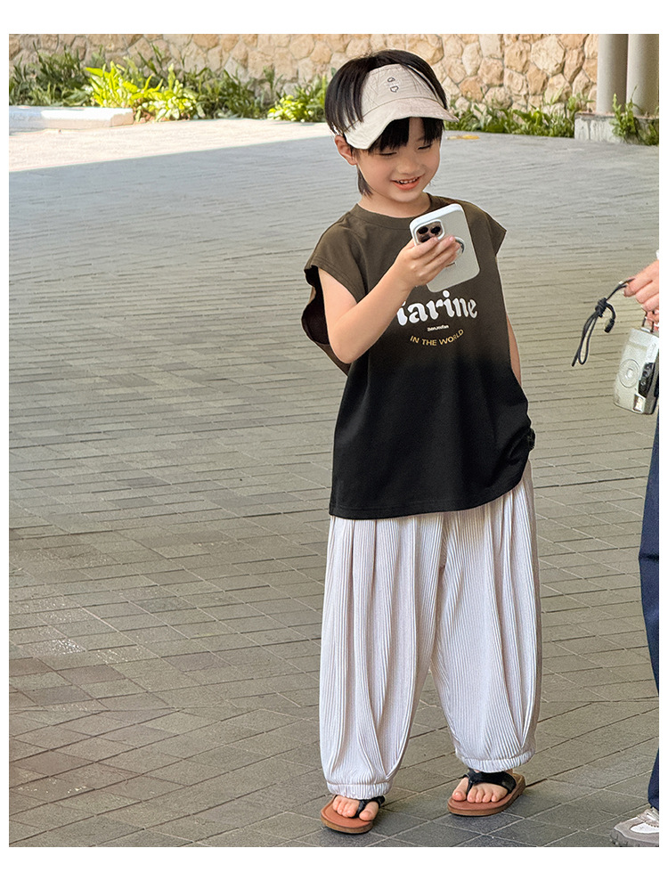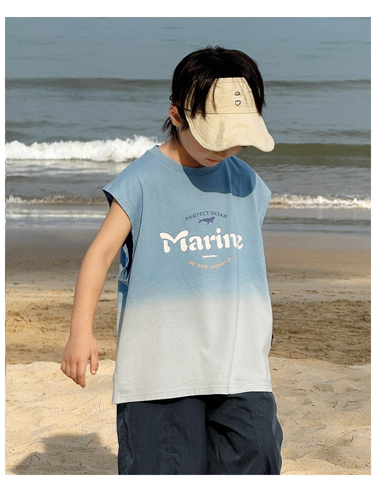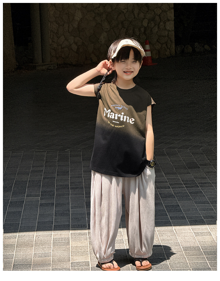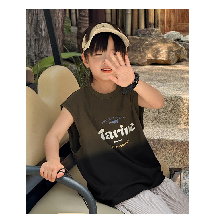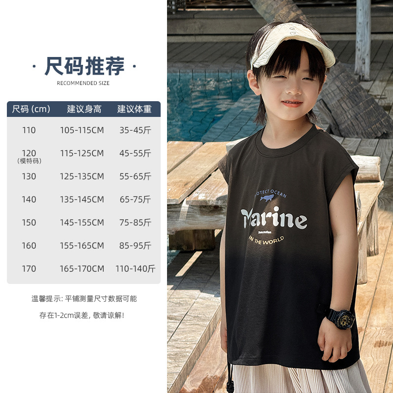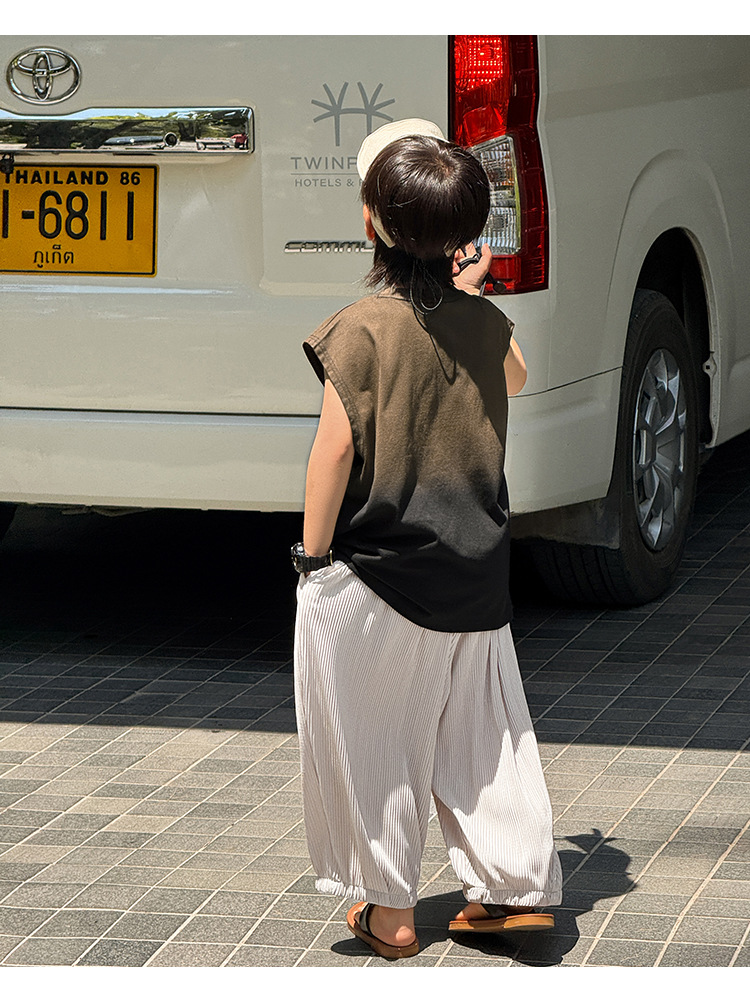 Zhenpinxuan 아동 의류 소년 조끼 여름 얇은 아동 겉옷 순수 코튼 민소매 티셔츠 큰 어린이 양복 조끼 소년상의