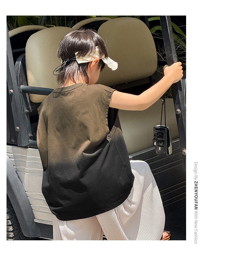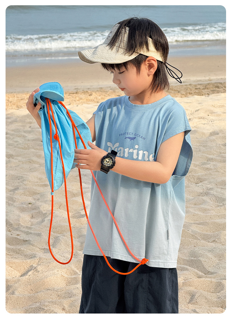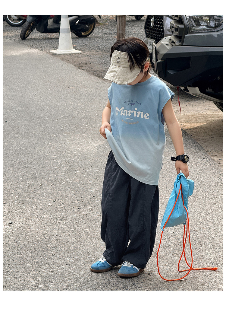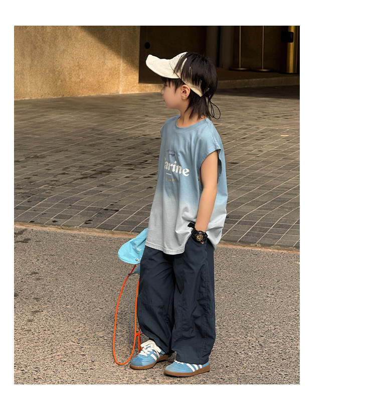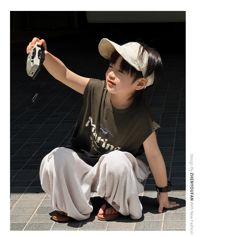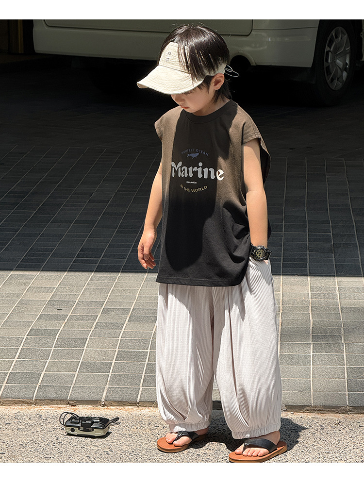 Zhenpinxuan 아동 의류 소년 조끼 여름 얇은 아동 겉옷 순수 코튼 민소매 티셔츠 큰 어린이 양복 조끼 소년상의