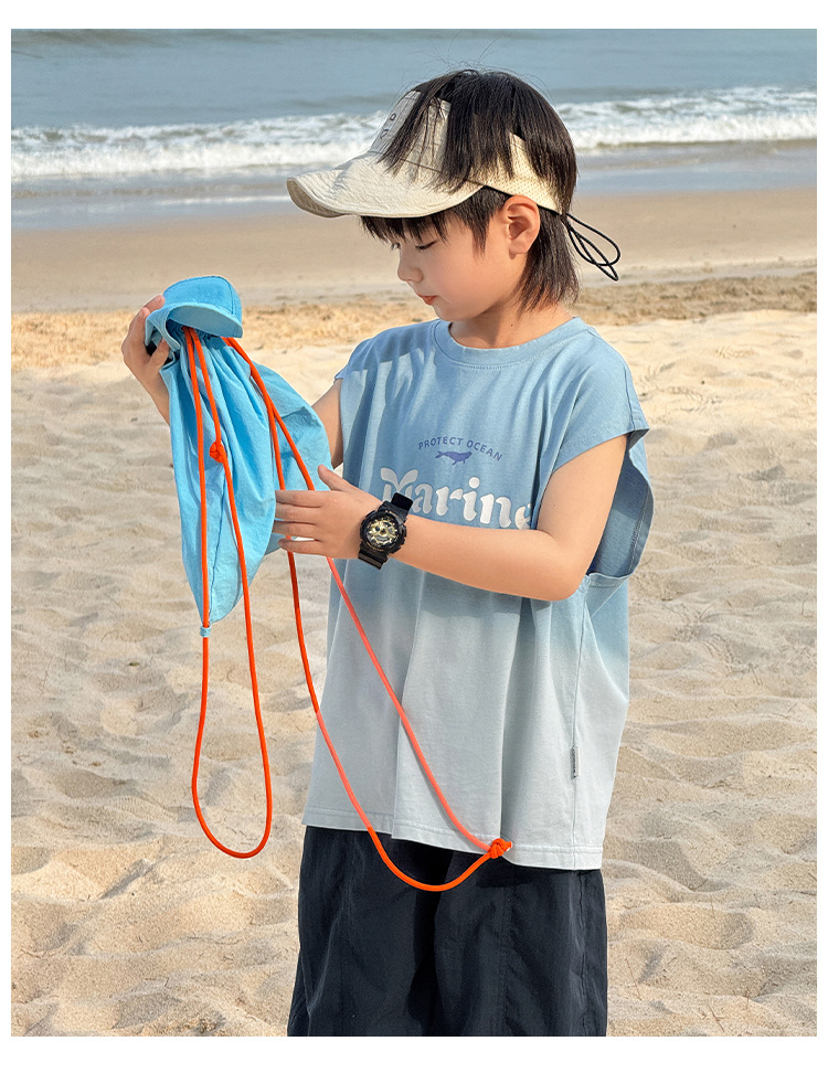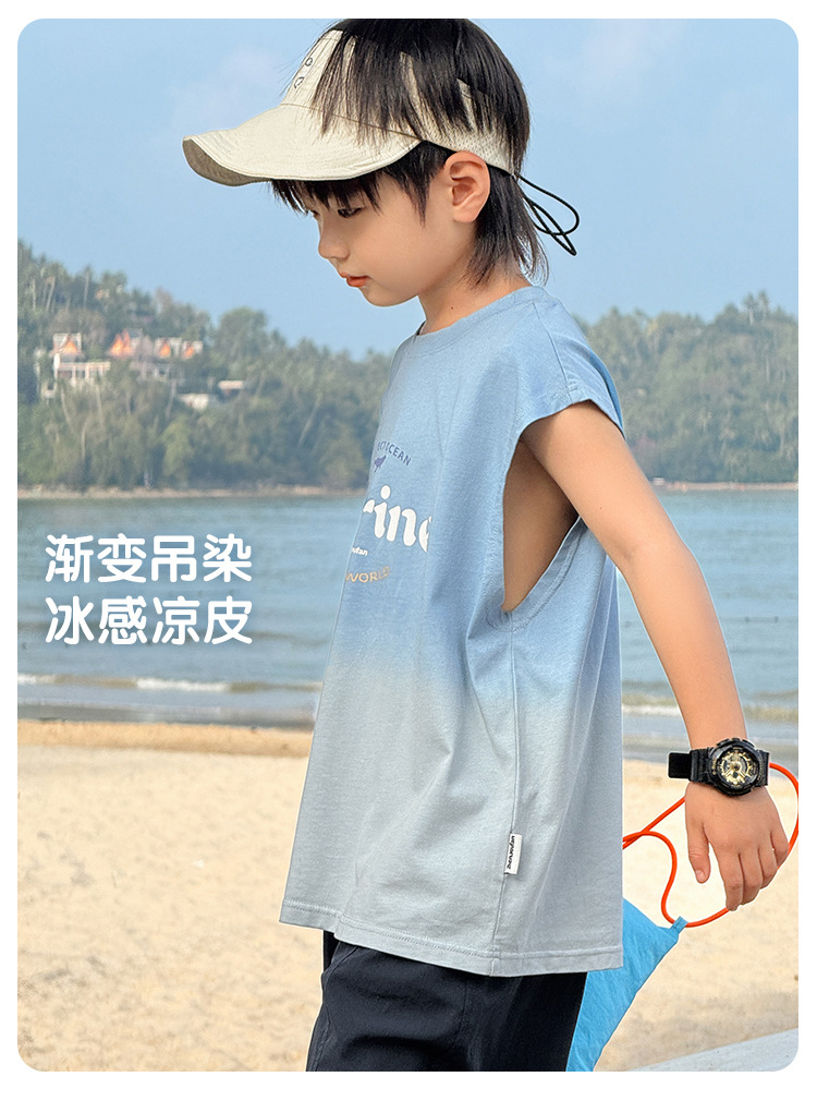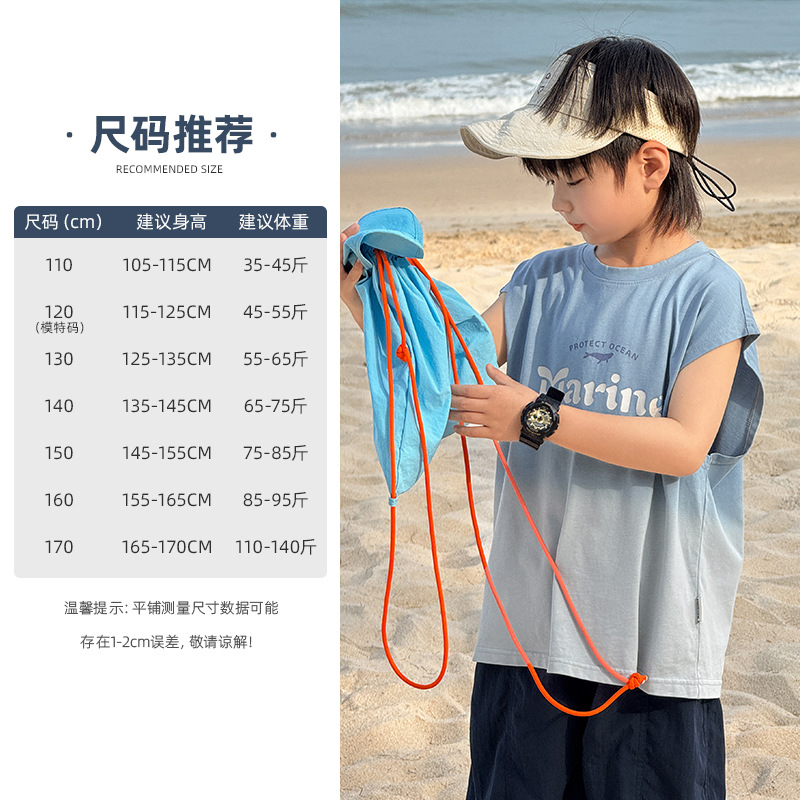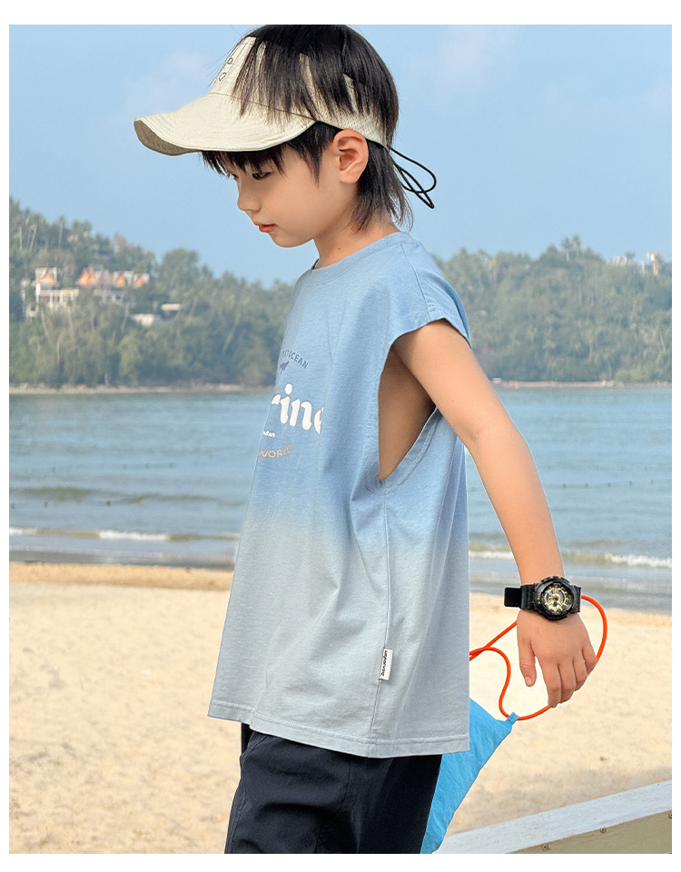 Zhenpinxuan 아동 의류 소년 조끼 여름 얇은 아동 겉옷 순수 코튼 민소매 티셔츠 큰 어린이 양복 조끼 소년상의스토어 가기
