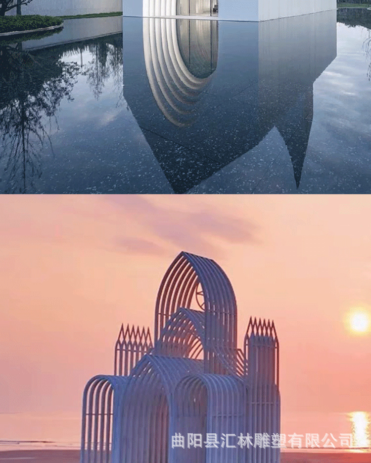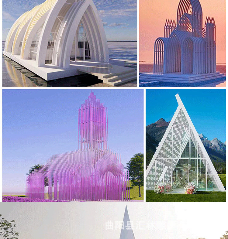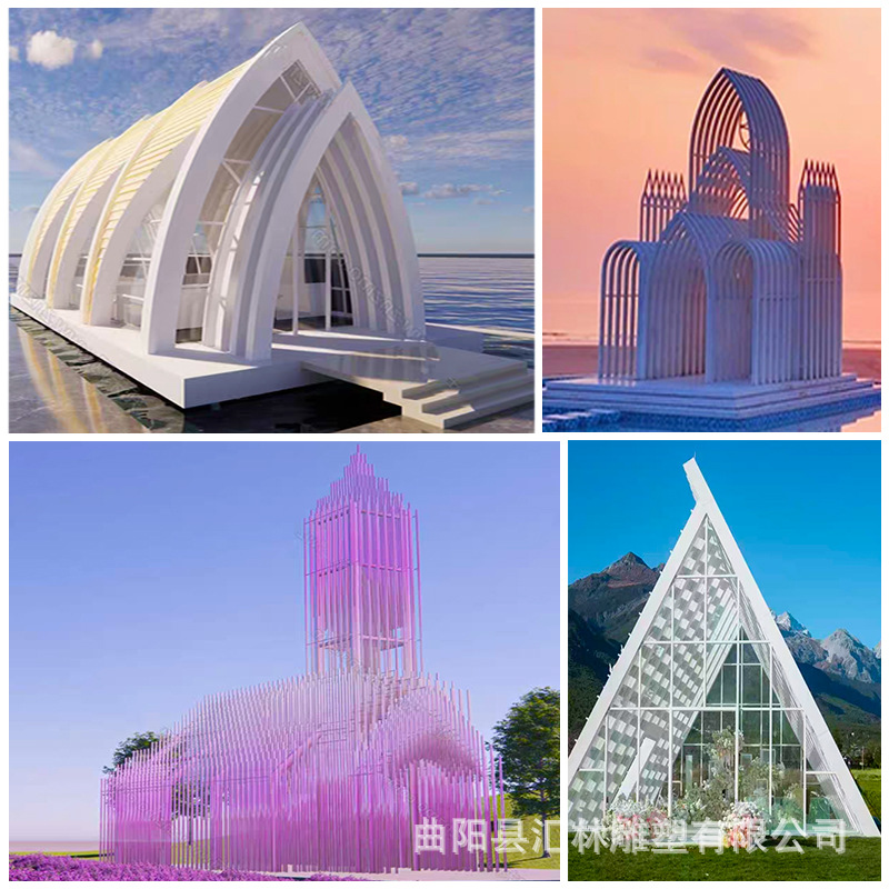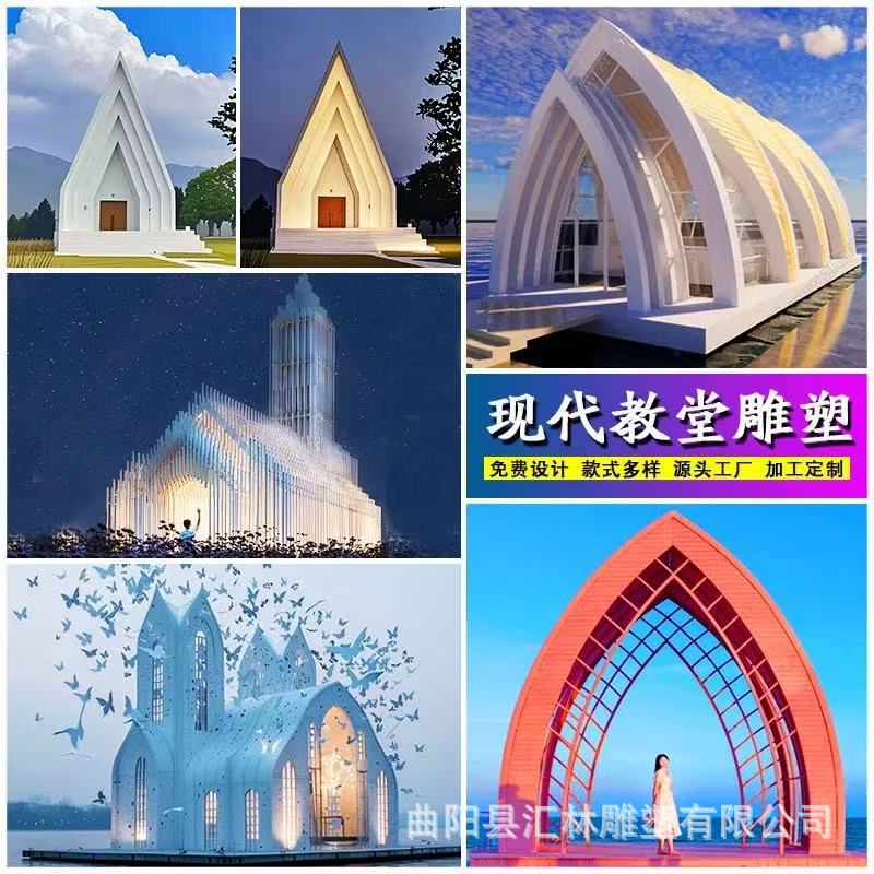 스테인레스 스틸 유럽 스타일의 그림자없는 교회 금속 건물 조형물 조각 공원 인터넷 연예인 결혼식 사진 명소 체크인 사진