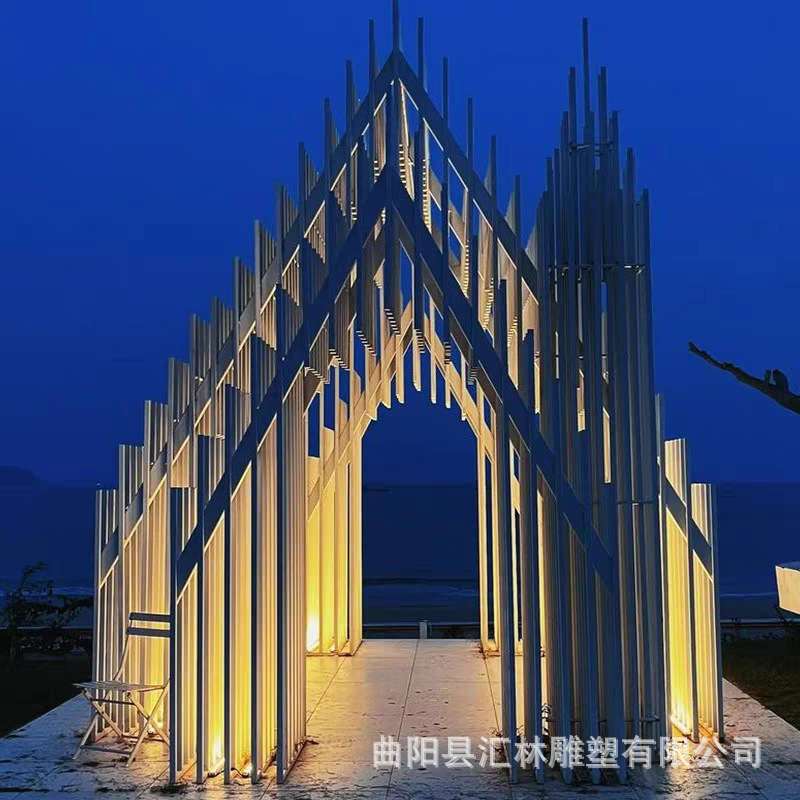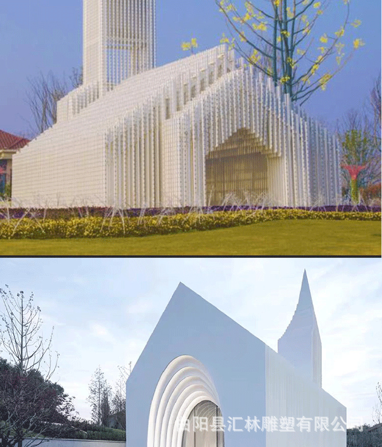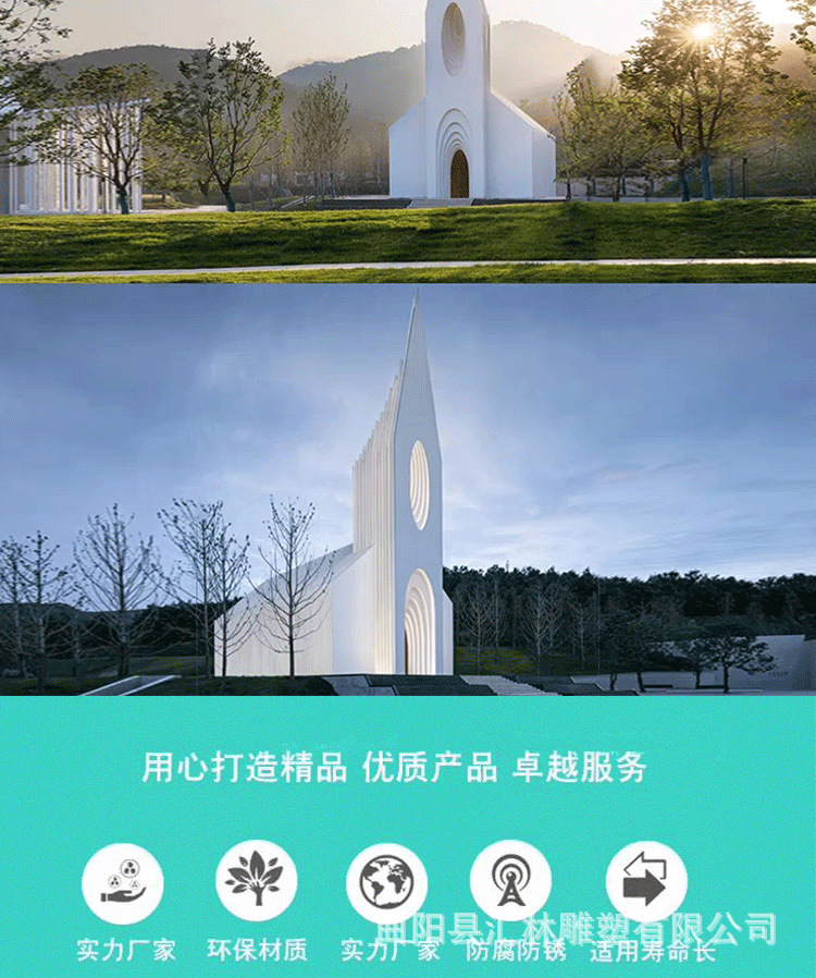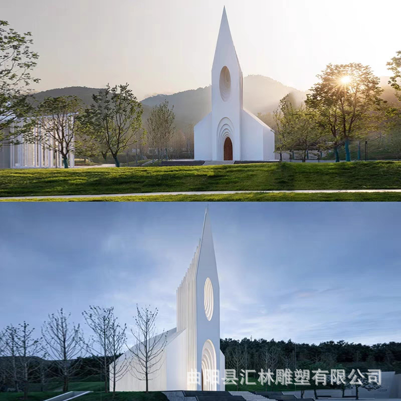 스테인레스 스틸 유럽 스타일의 그림자없는 교회 금속 건물 조형물 조각 공원 인터넷 연예인 결혼식 사진 명소 체크인 사진스토어 가기