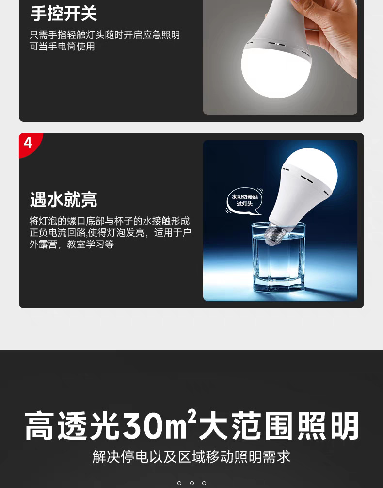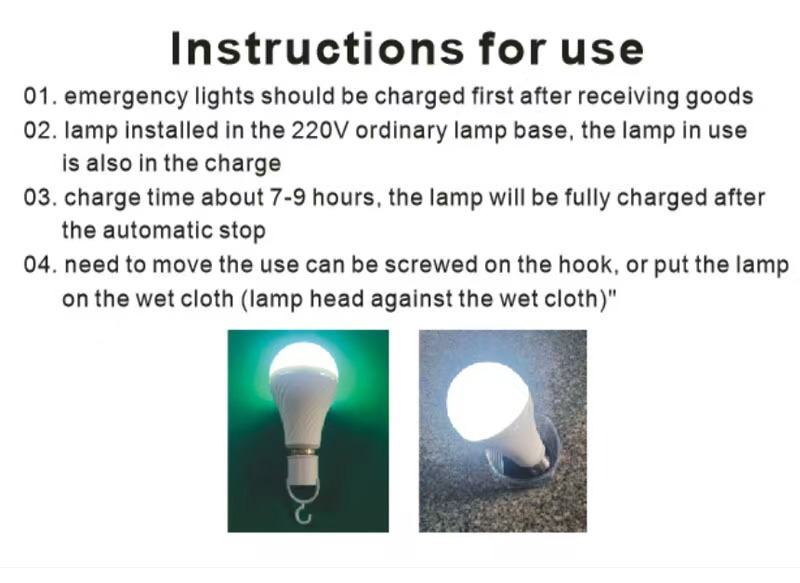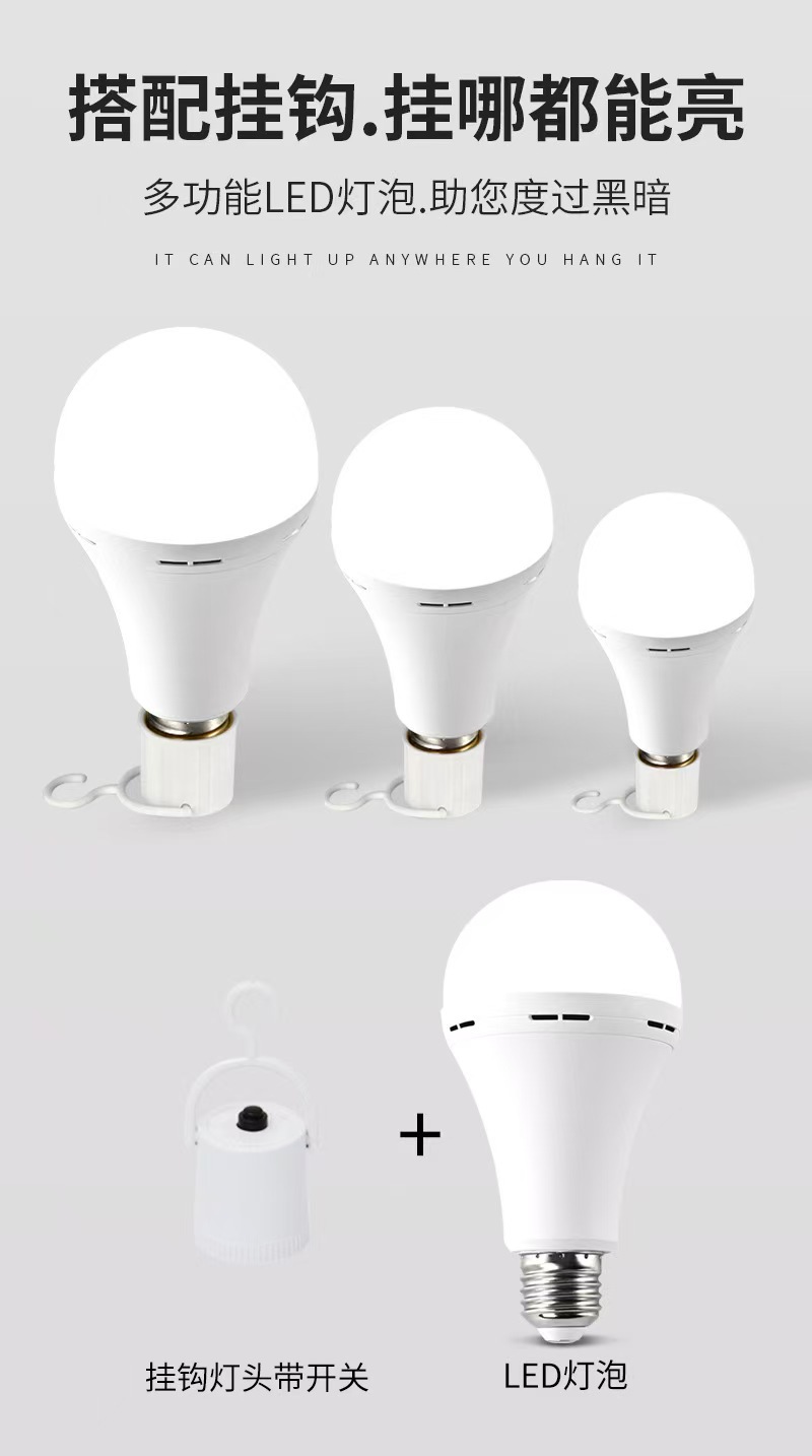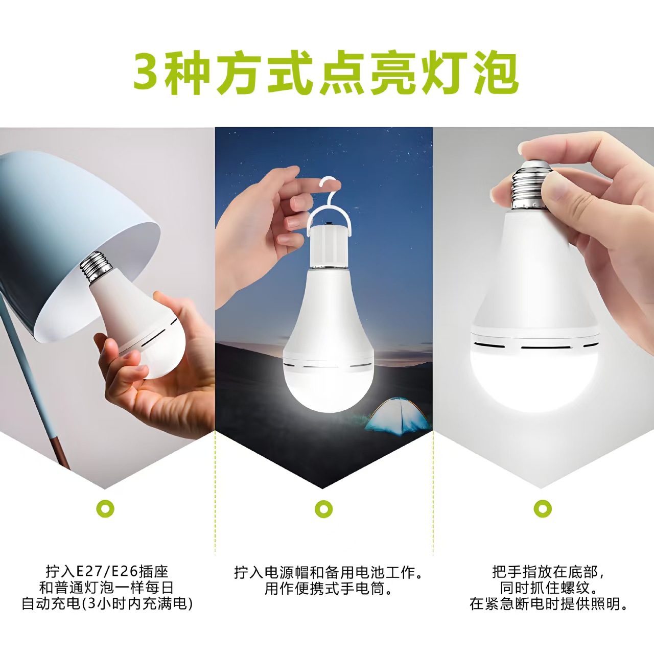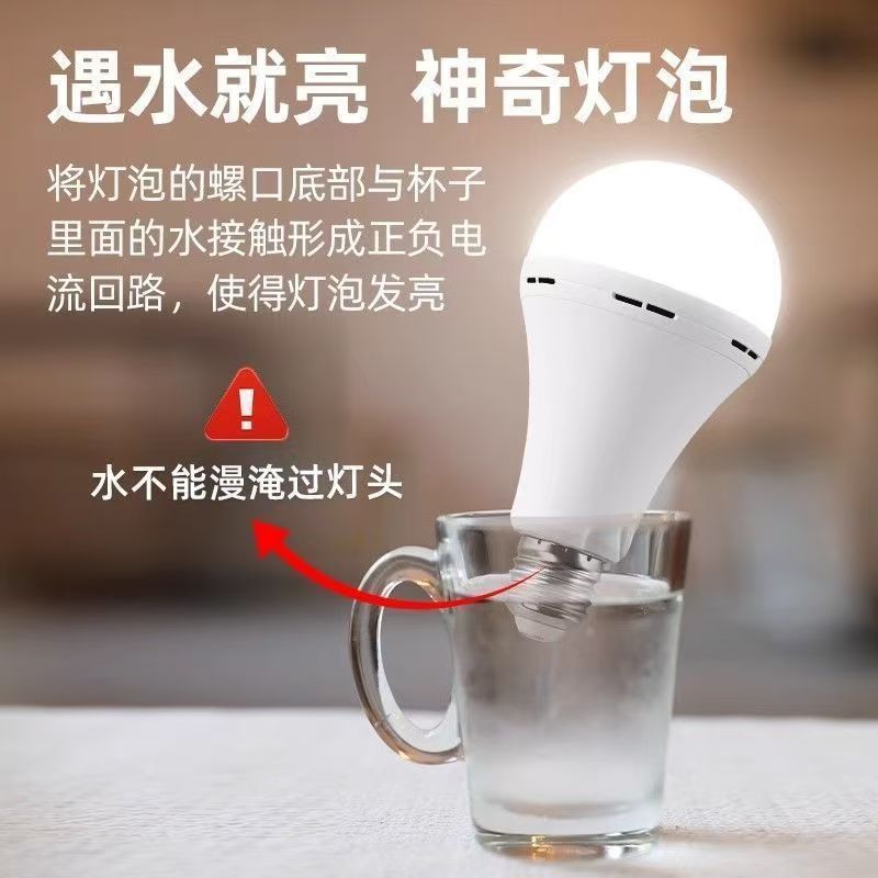 공장 직접 판매 LED 충전식 전구 e27 물에 노출되면 전구가 켜집니다. 가정용 정전 비상 조명 충전 야외 캠핑 밤