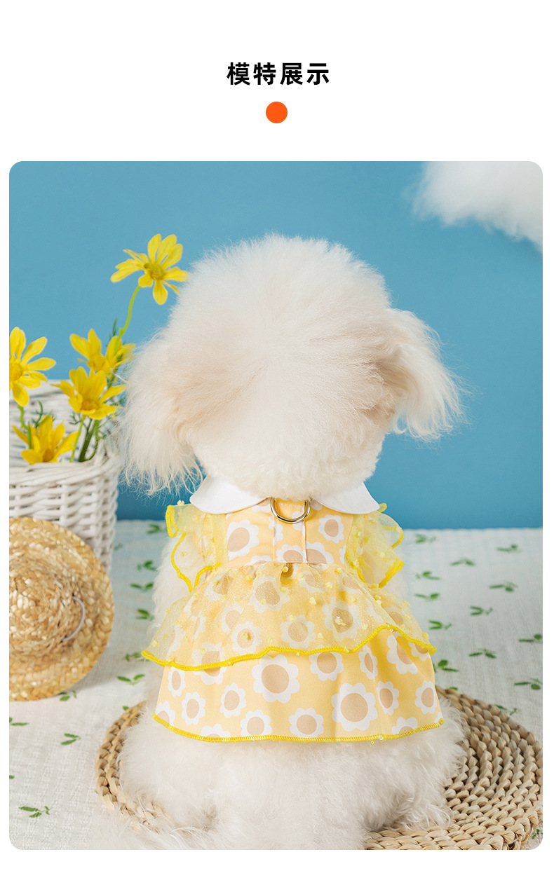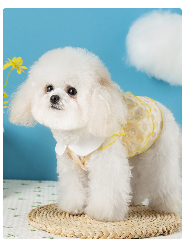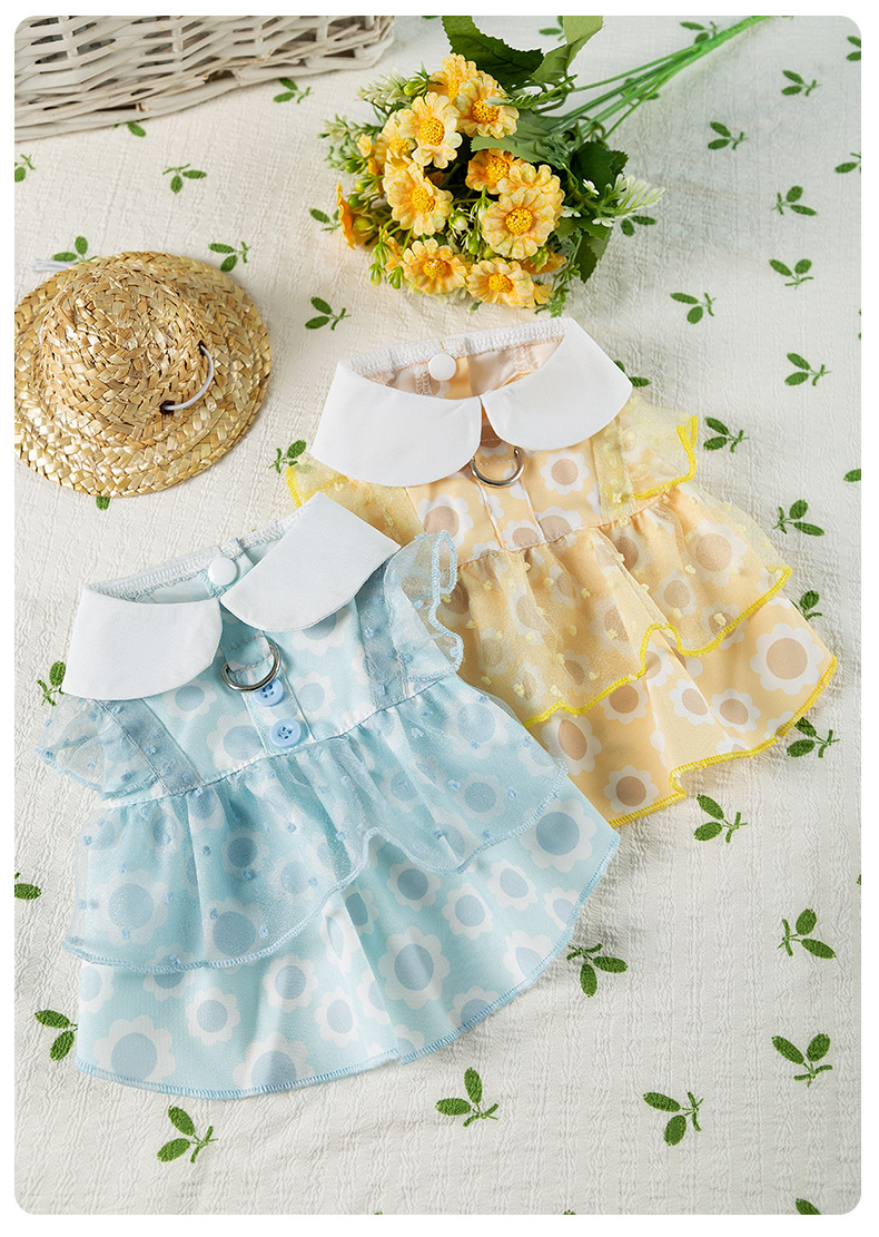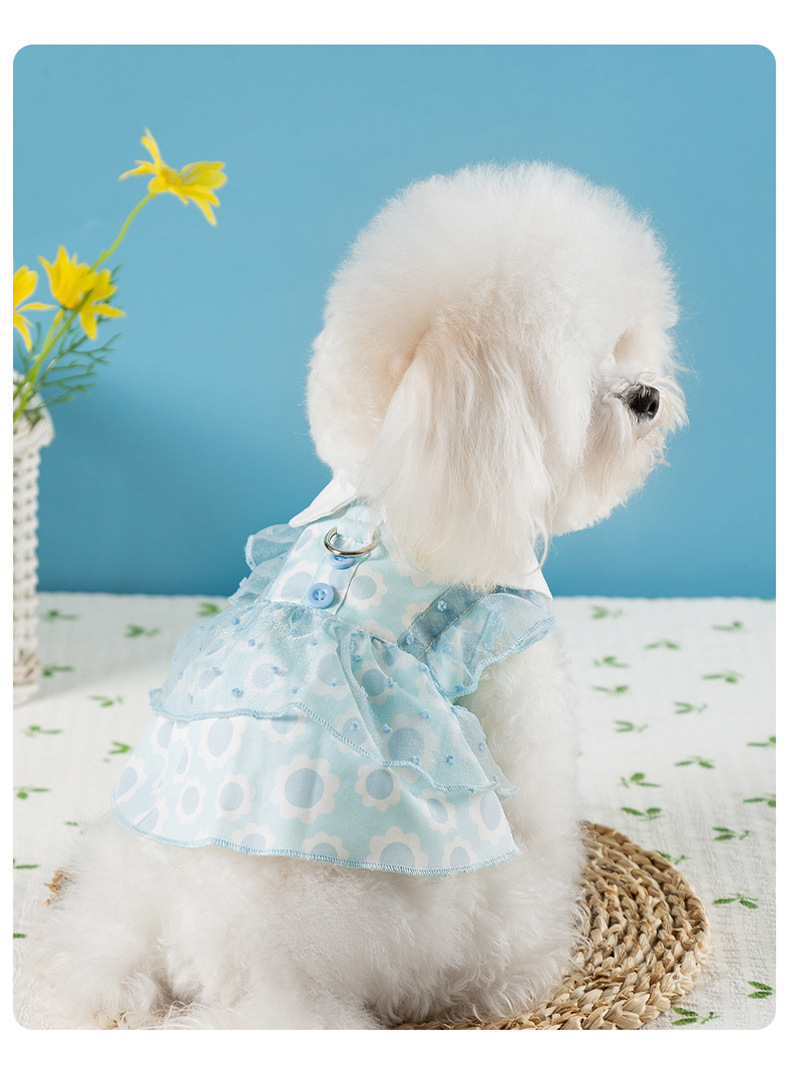 봄과 여름 개 레이스 폴카 도트 견인 드레스 얇은 메쉬 중소형 개 애완 동물 고양이 옷스토어 가기