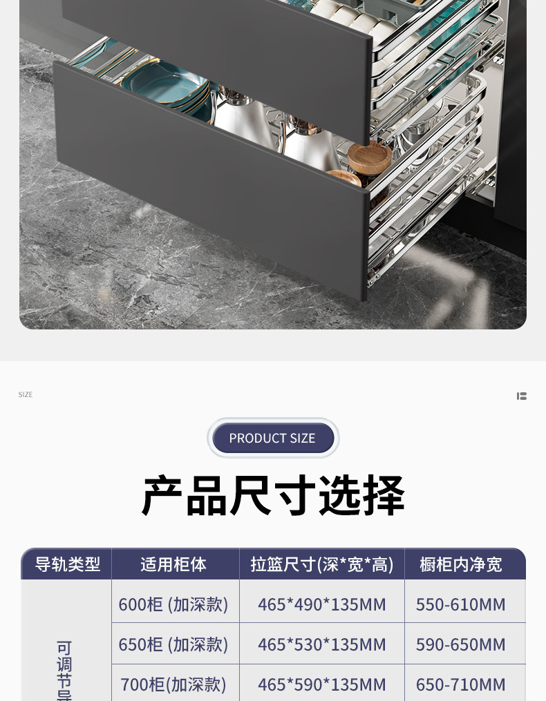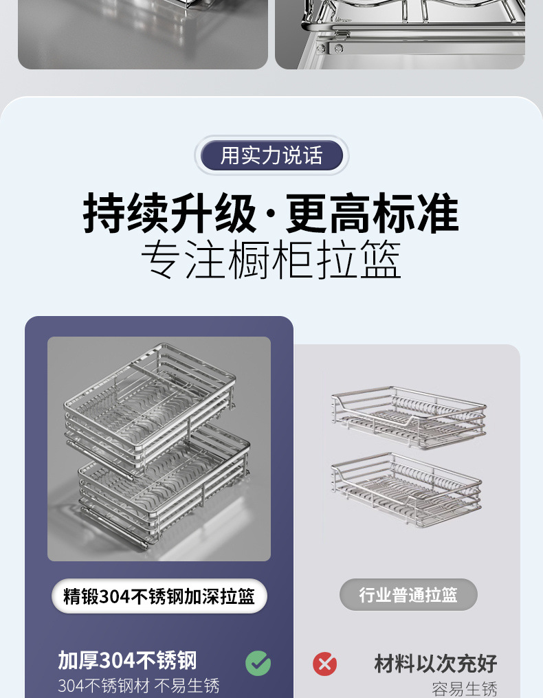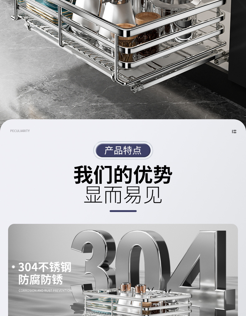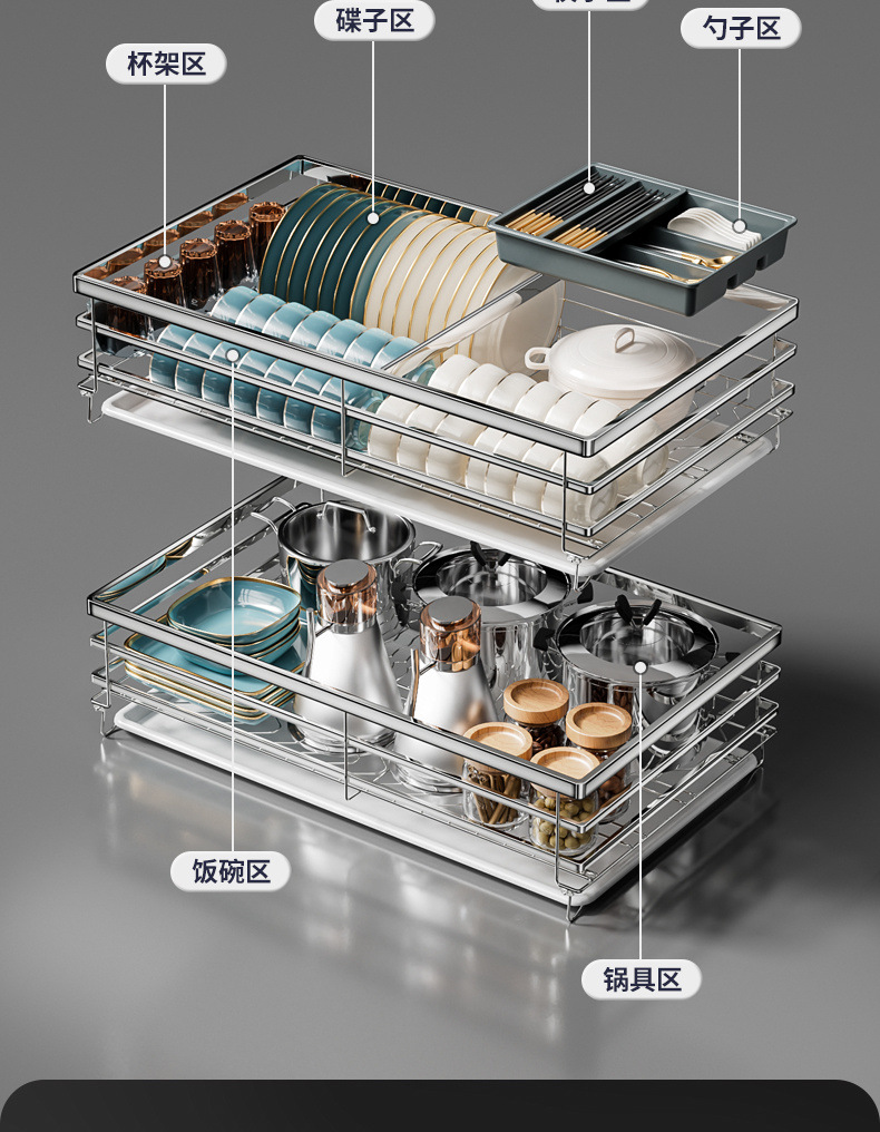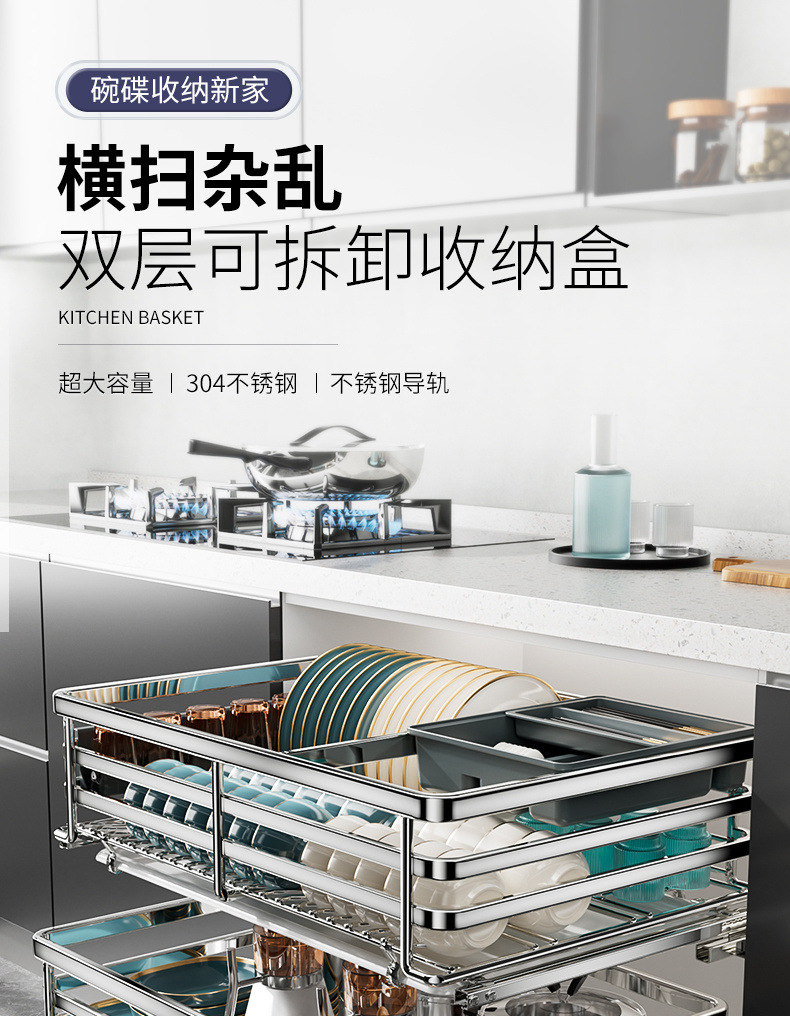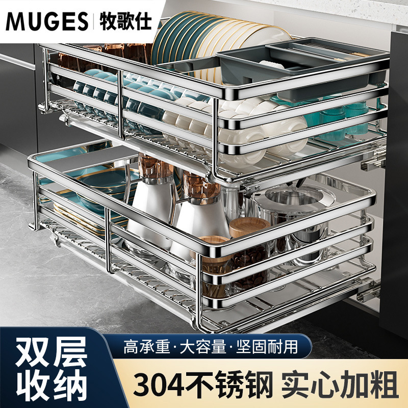주방 캐비닛 서랍형 그릇 바구니 304 스테인레스 스틸 이중층 조미료 캐비닛 주방 캐비닛 접시 두꺼운 그릇 대외 무역 공장스토어 가기