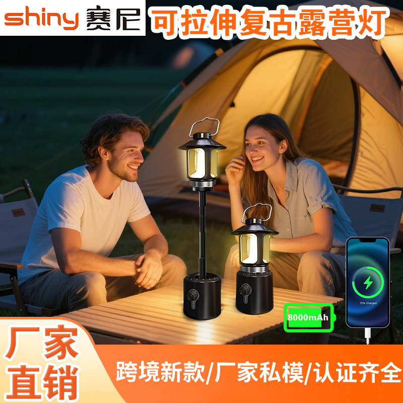새로운 크로스보더 복고풍 캠핑 램프, 데스크탑 휴대용 램프, 리프팅 및 스트레칭 야외 충전식 캠프 램프, 매우 긴 배터리 수명