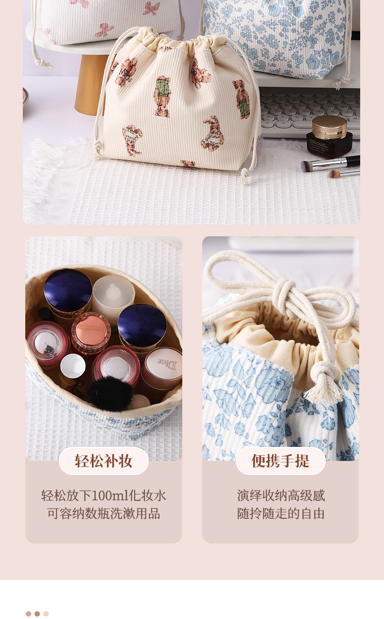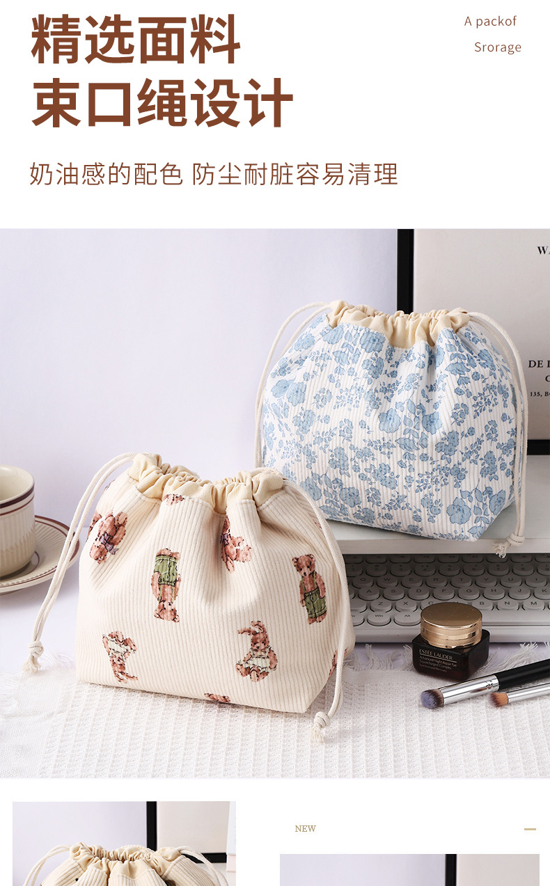 국경을 넘는 새로운 코듀로이 화장품 가방 대용량 휴대용 여행 졸라매는 끈 보관 가방 큰 귀여운 번들 포켓 가방