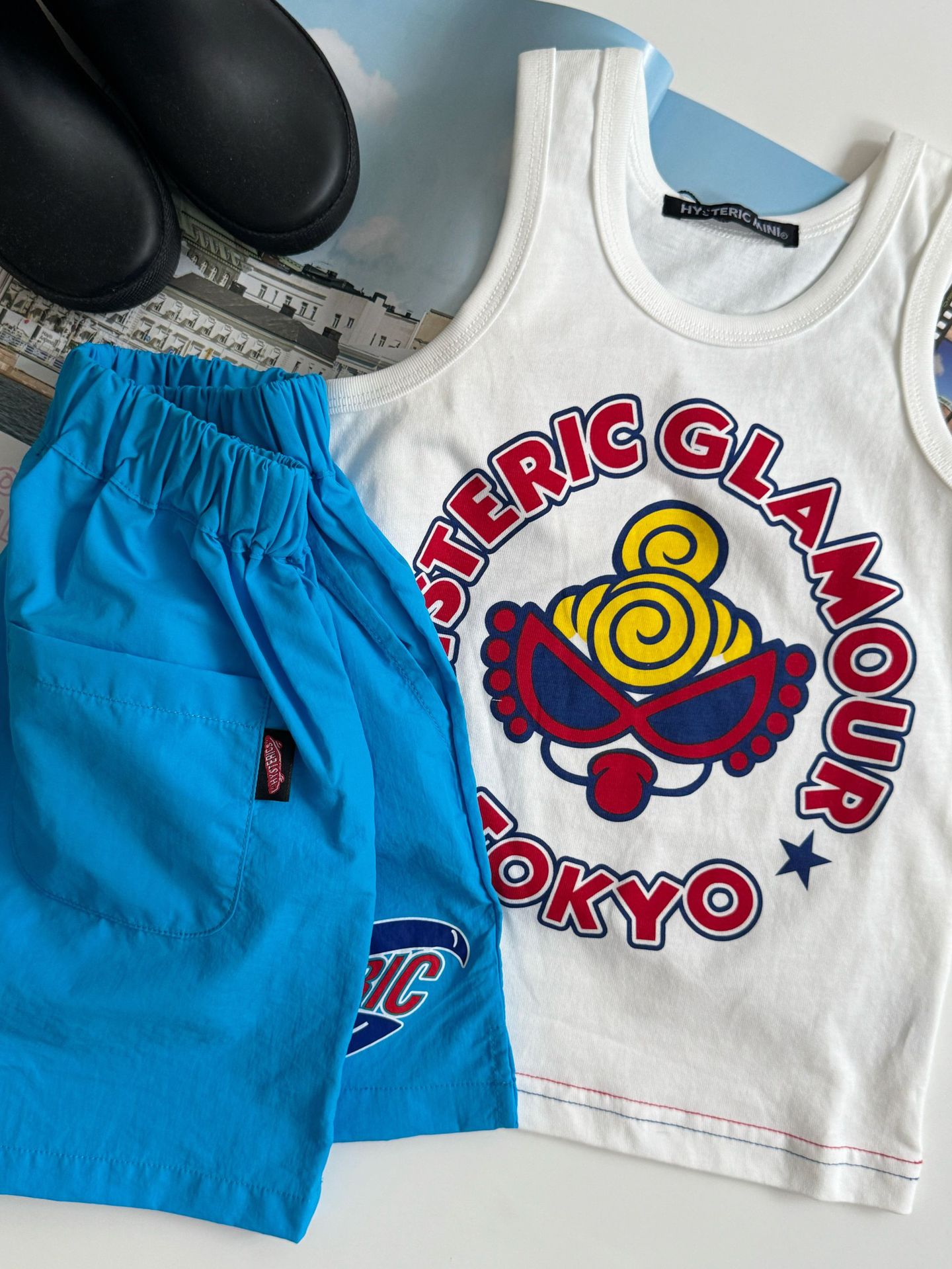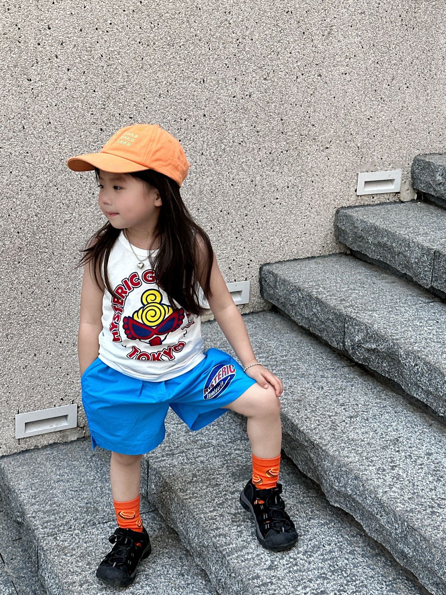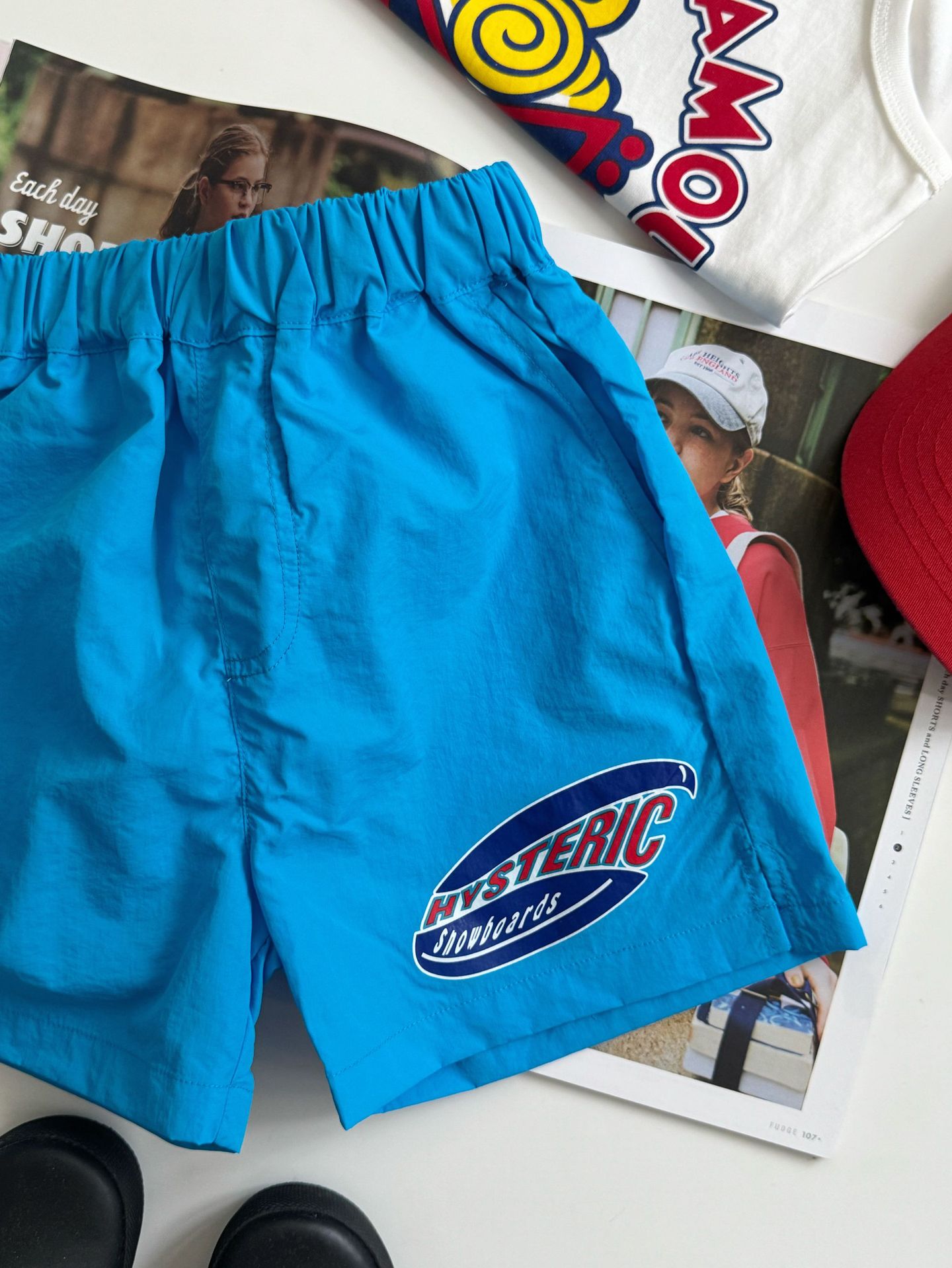 2025 새로운 블랙 슈퍼 트렌디 브랜드 젖꼭지 측면 블루 라벨 짠 스포츠 반바지 젖꼭지 아동 바지 재고 있음