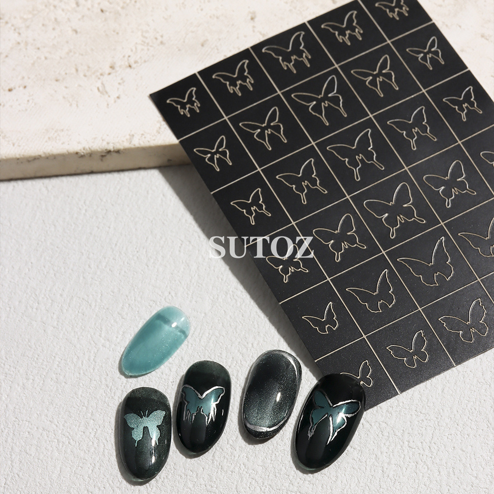 국경을 넘는 새로운 네일 아트 중공 스티커 세트 프랑스어 중공 나비 활 스프레이 페인트 템플릿 중공 스티커스토어 가기