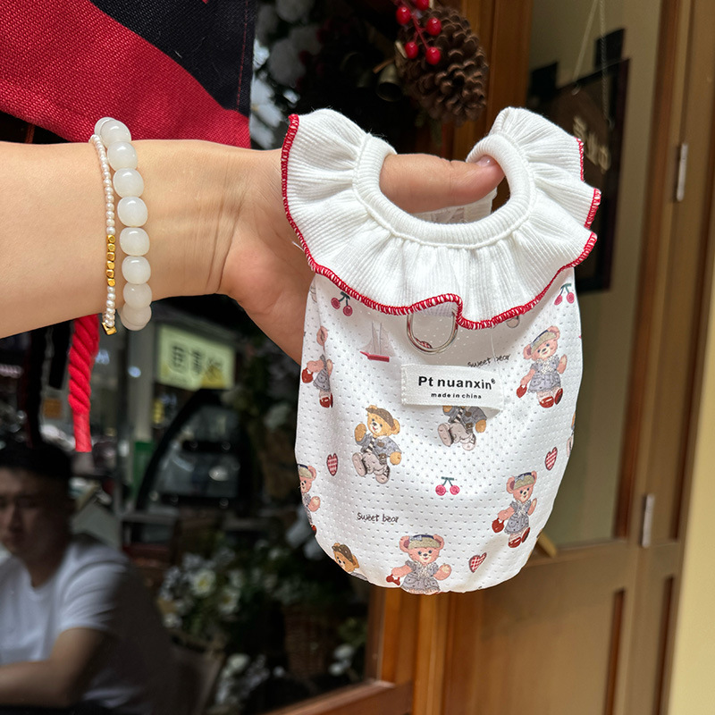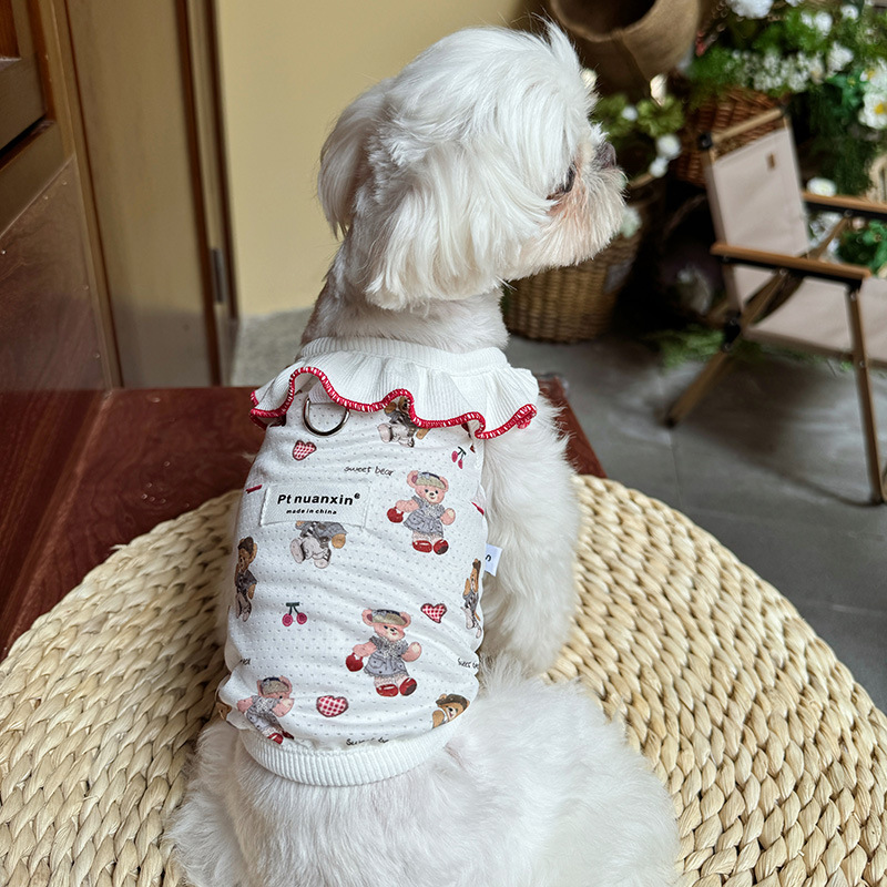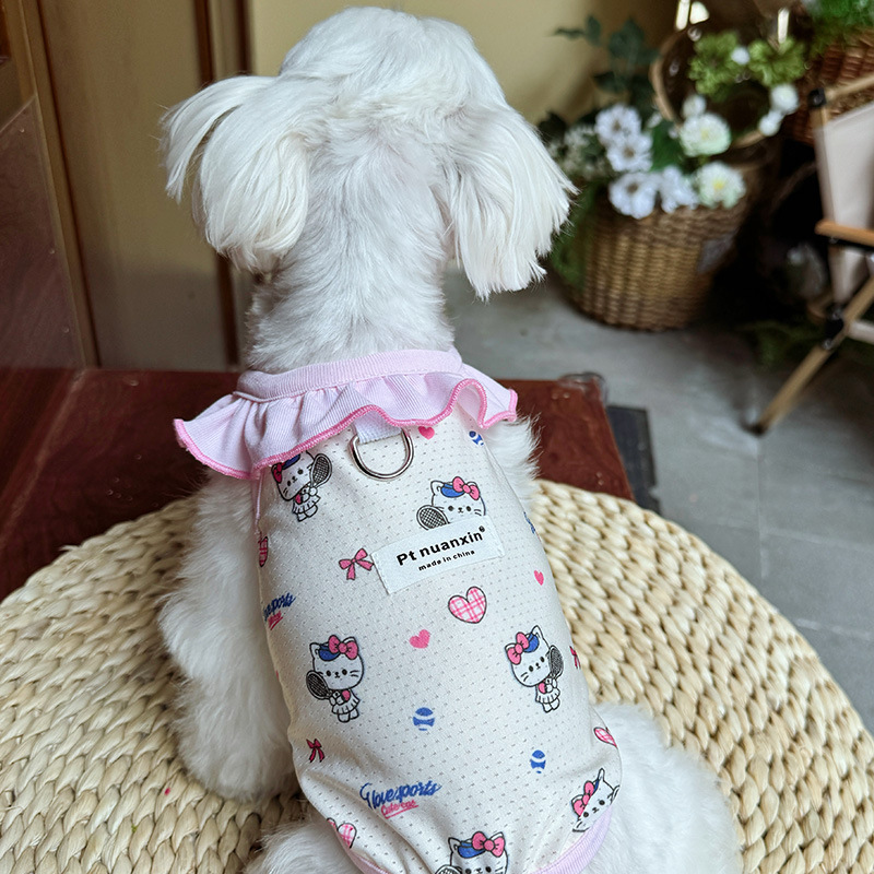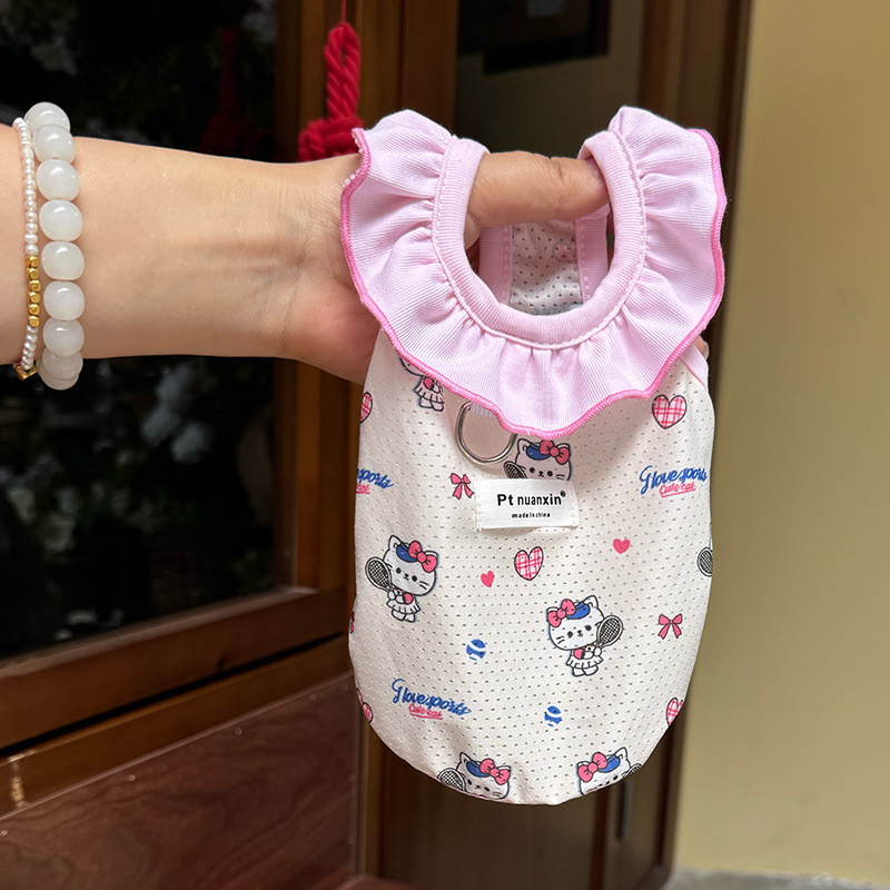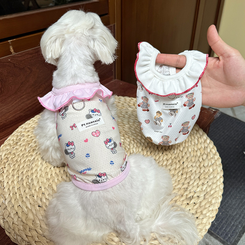 25 한국 여름 애완 동물 홈 아이스 실크 레이스 조끼 개 고양이 작은 개 옷 견인 가능스토어 가기