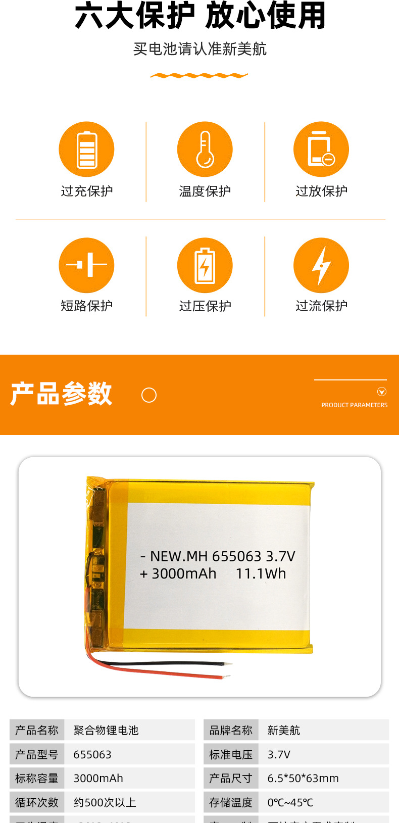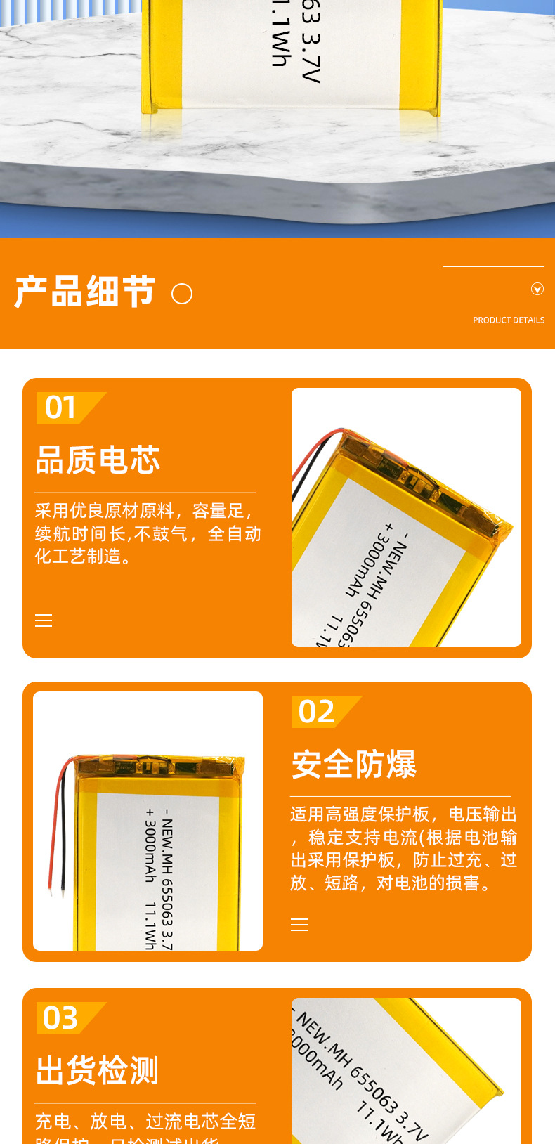 655063 보호판이 있는 폴리머 리튬 배터리 3000mA 발열 장갑 발열 양말 보온 발열 신발 배터리스토어 가기
