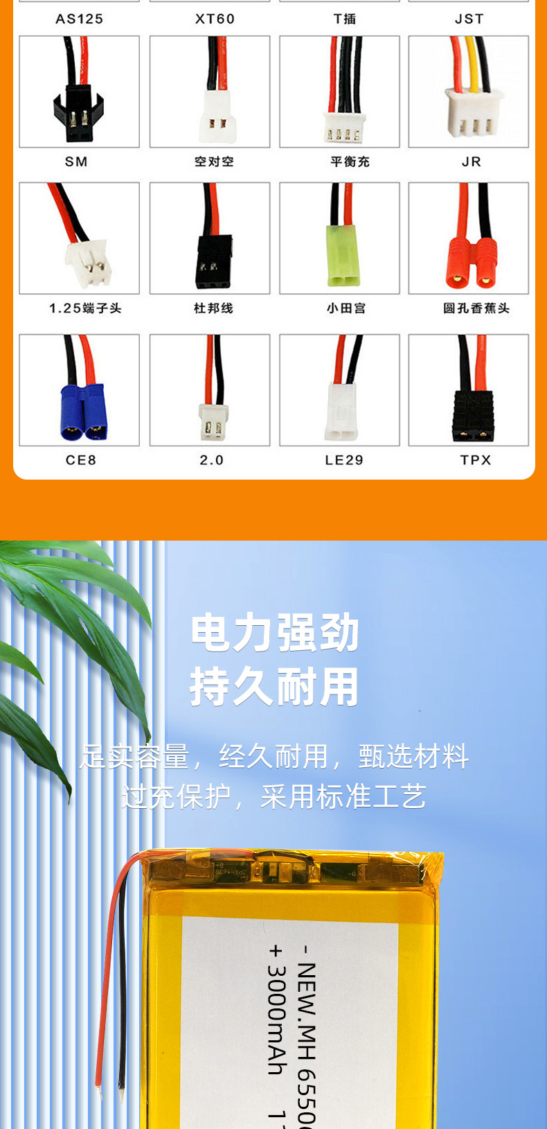• 655063-3000mAh 플러스 보드(케이블 포함)