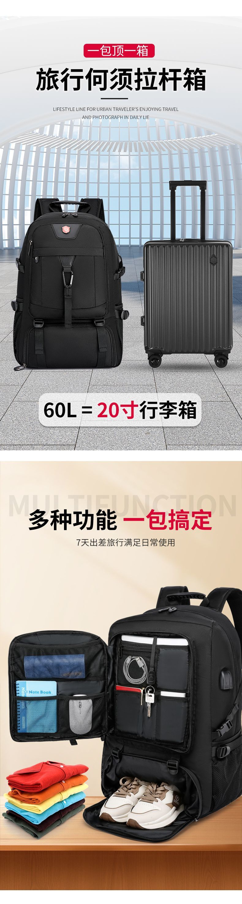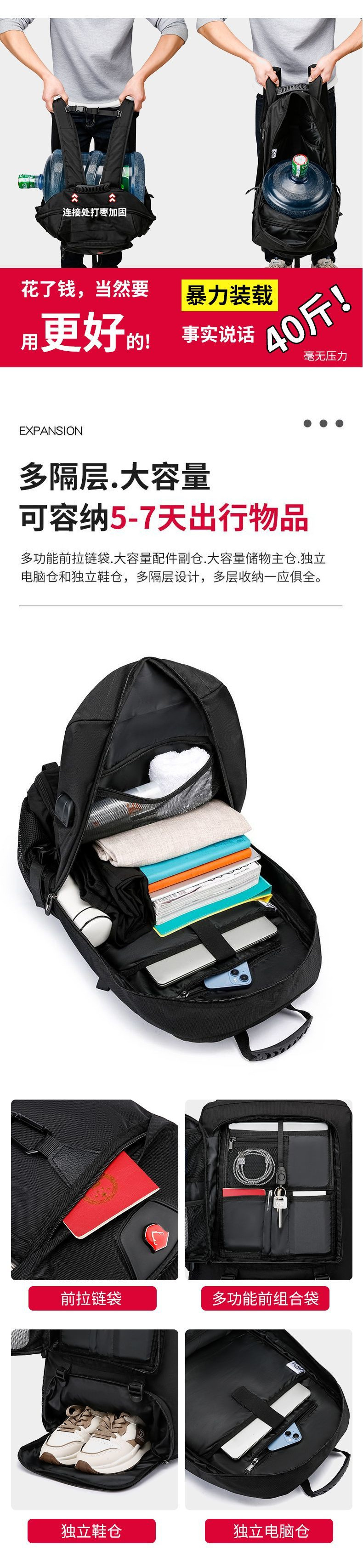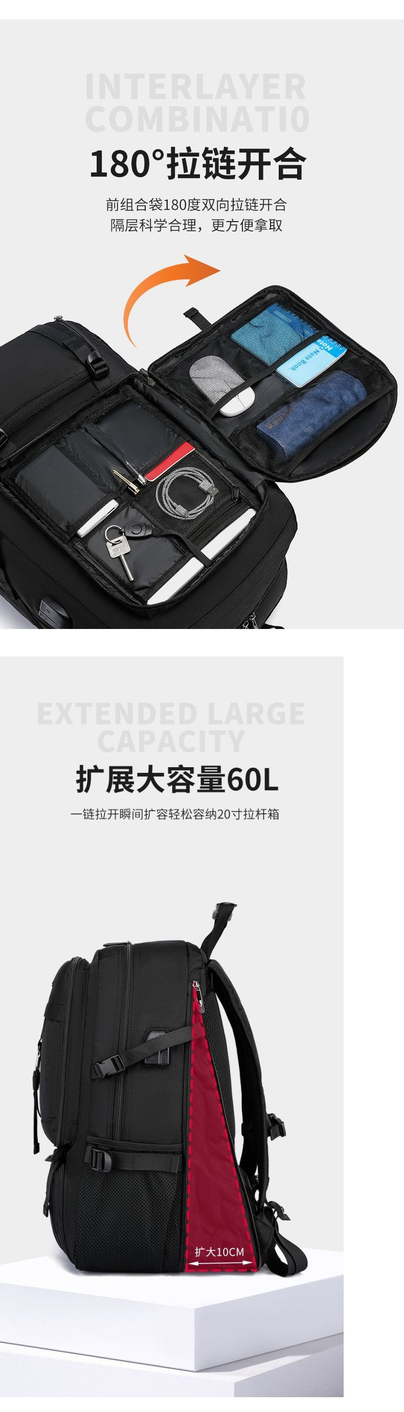 • [라지 사이즈, 패셔너블하고 심플하며 강화된 마킹] 25% 확장 + 독립된 신발 수납공간