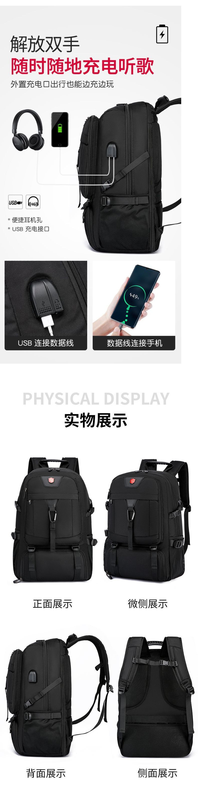 새로운 배낭 남자 대용량 방수 여행 배낭 내구성 여행 가방 작업 수하물 배낭