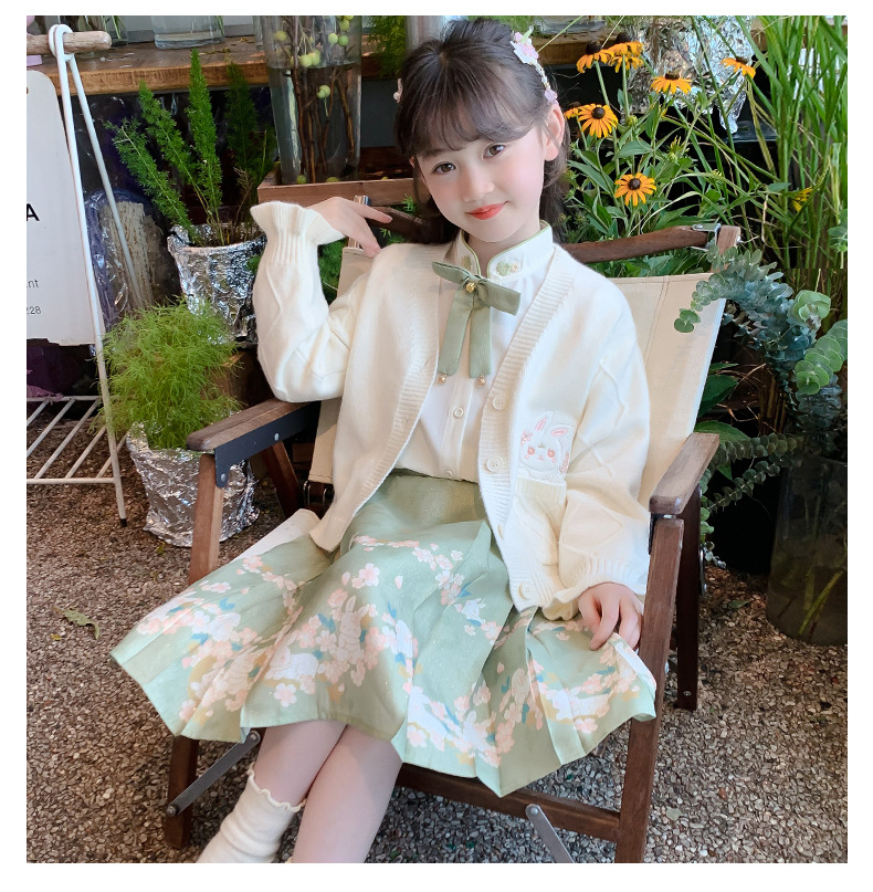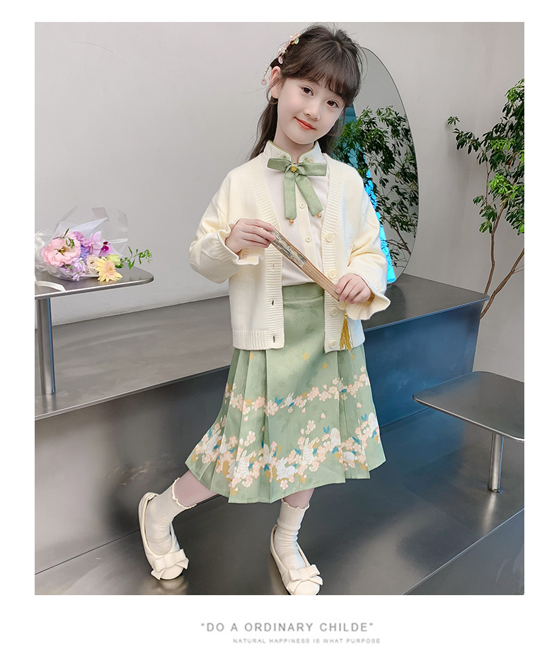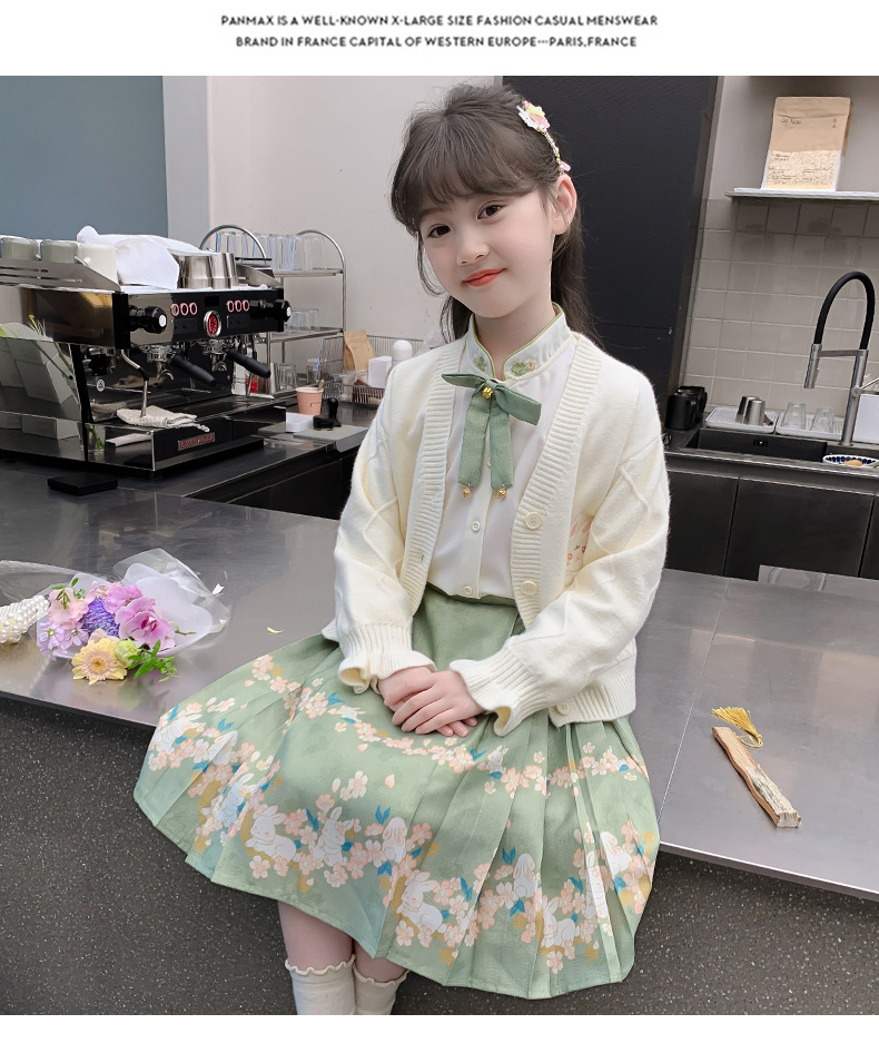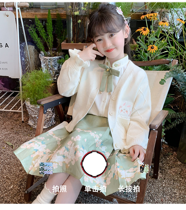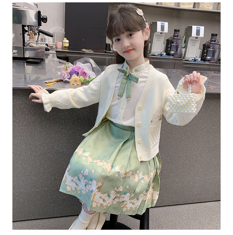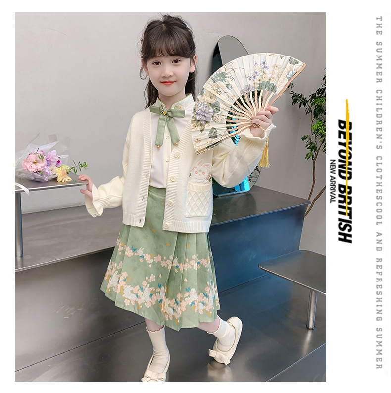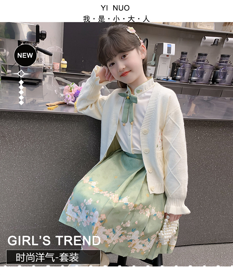 여아 마면 스커트 세트 2026년 신상 봄옷 어린이 한복 중국풍 봄 가을 여아 3종 세트