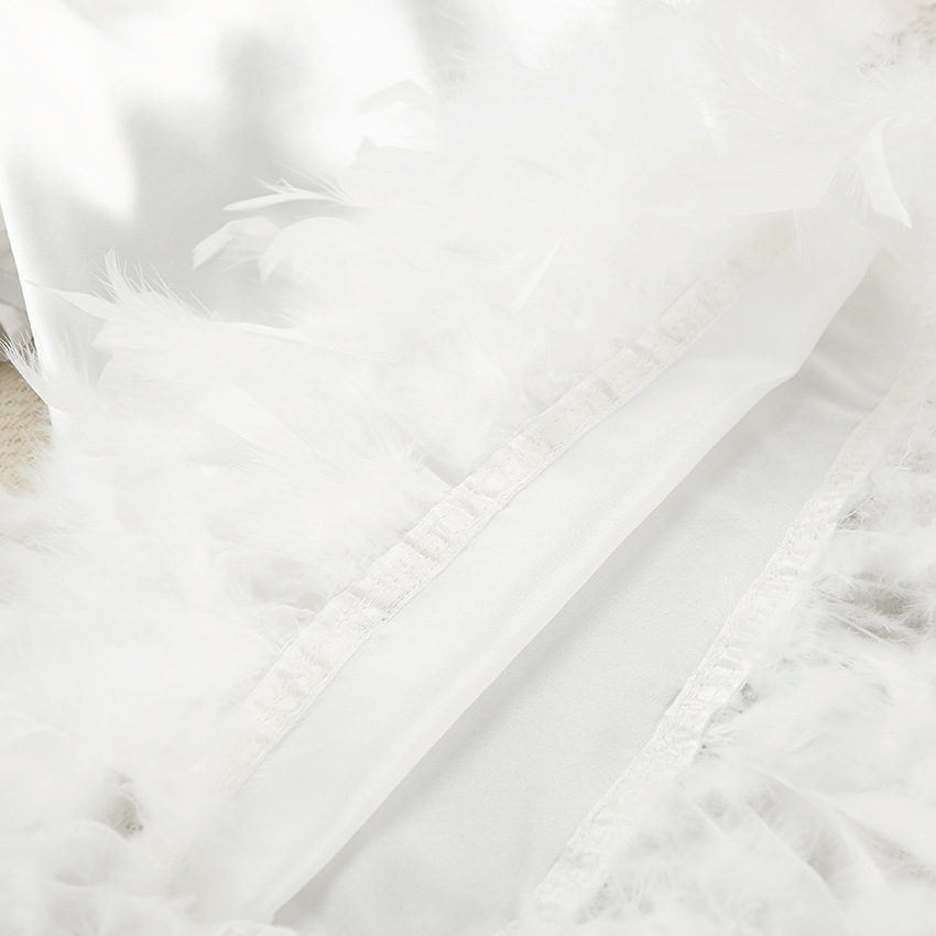 2025 유럽과 미국의 새틴 편안한 깃털 잠옷 여성 여름 얇은 양복 크로스 보더 잠옷 서스펜더 홈웨어 세트