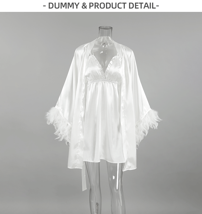 2025 유럽과 미국의 새틴 편안한 깃털 잠옷 여성 여름 얇은 양복 크로스 보더 잠옷 서스펜더 홈웨어 세트스토어 가기