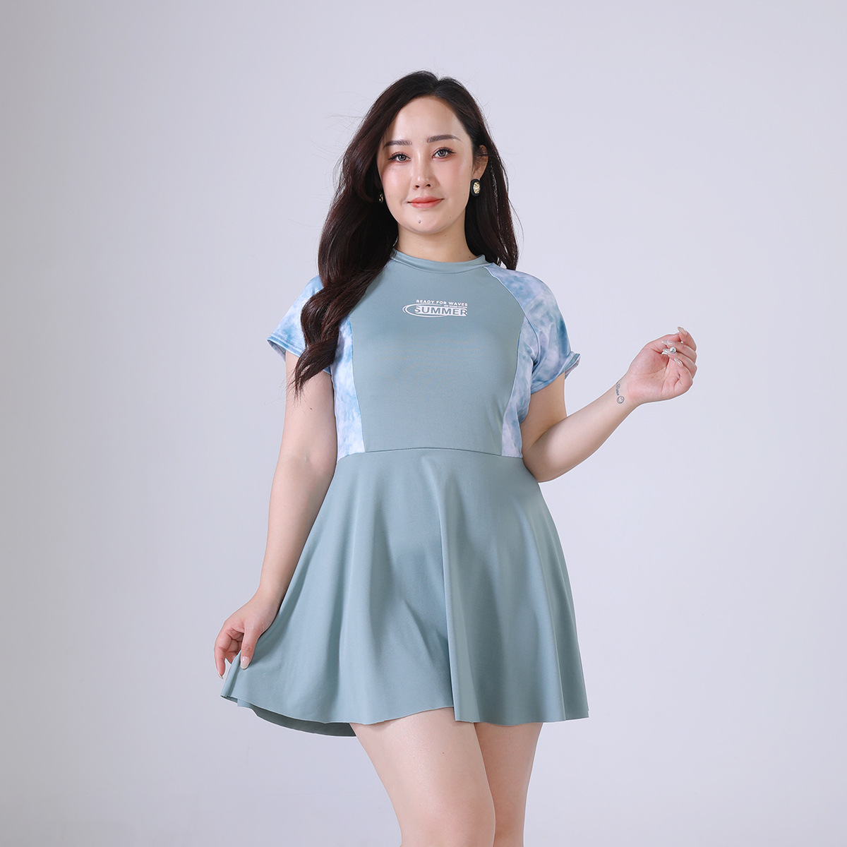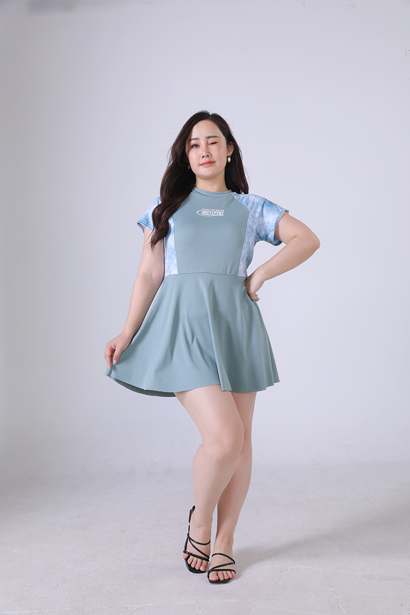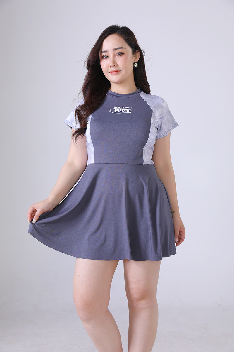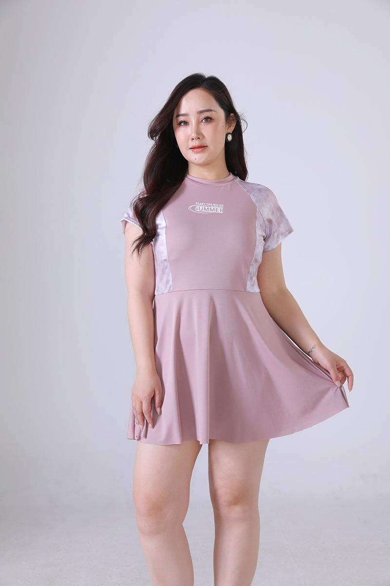 뚱뚱한 mm 원피스 수영복 학생 소녀 한국 스타일 속건 스포츠 수영복 프린트 온천 대학 스타일 수영복