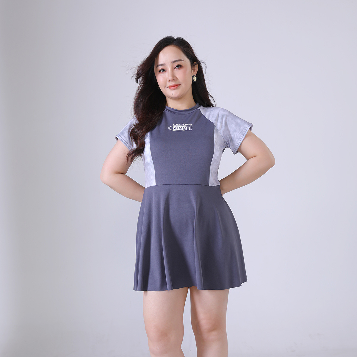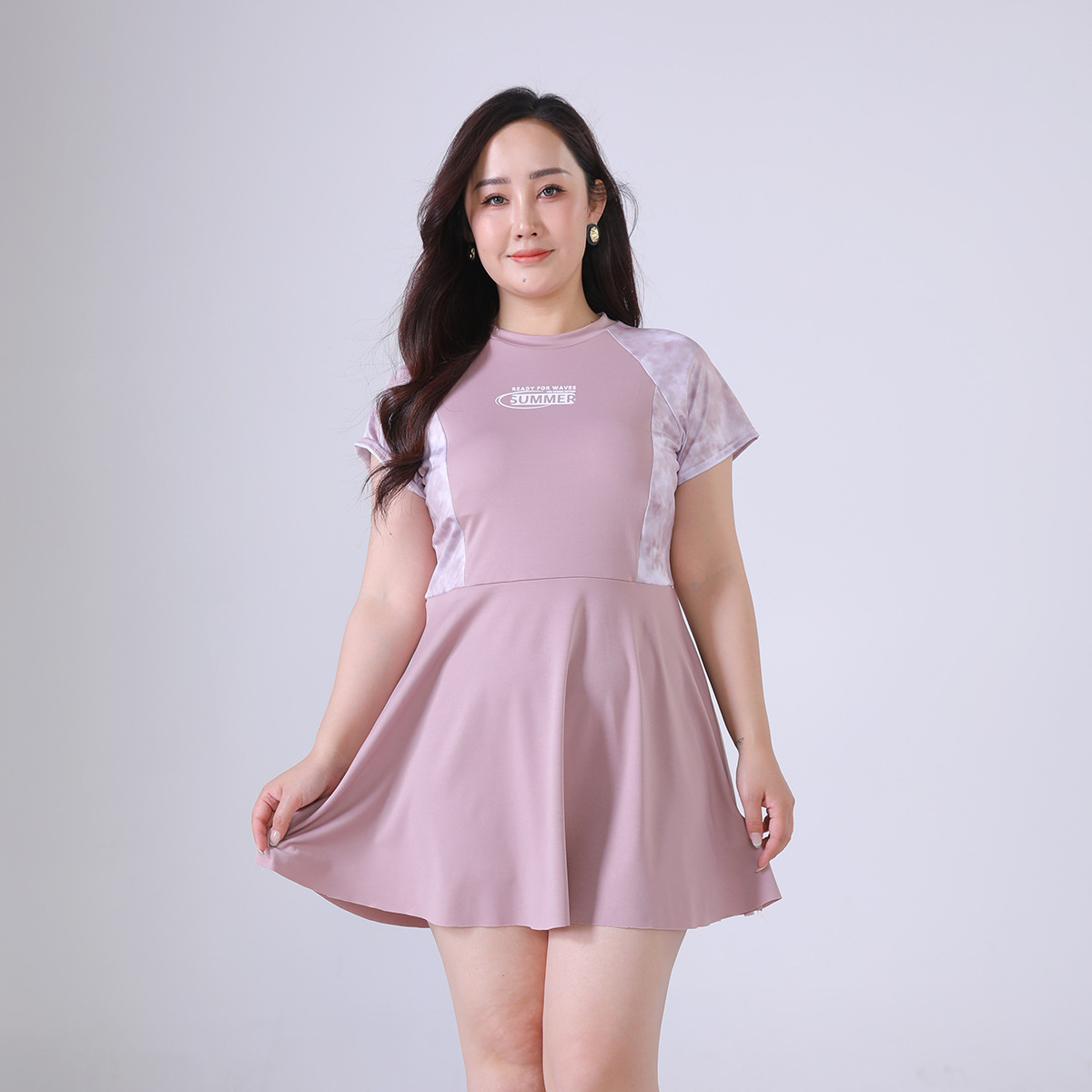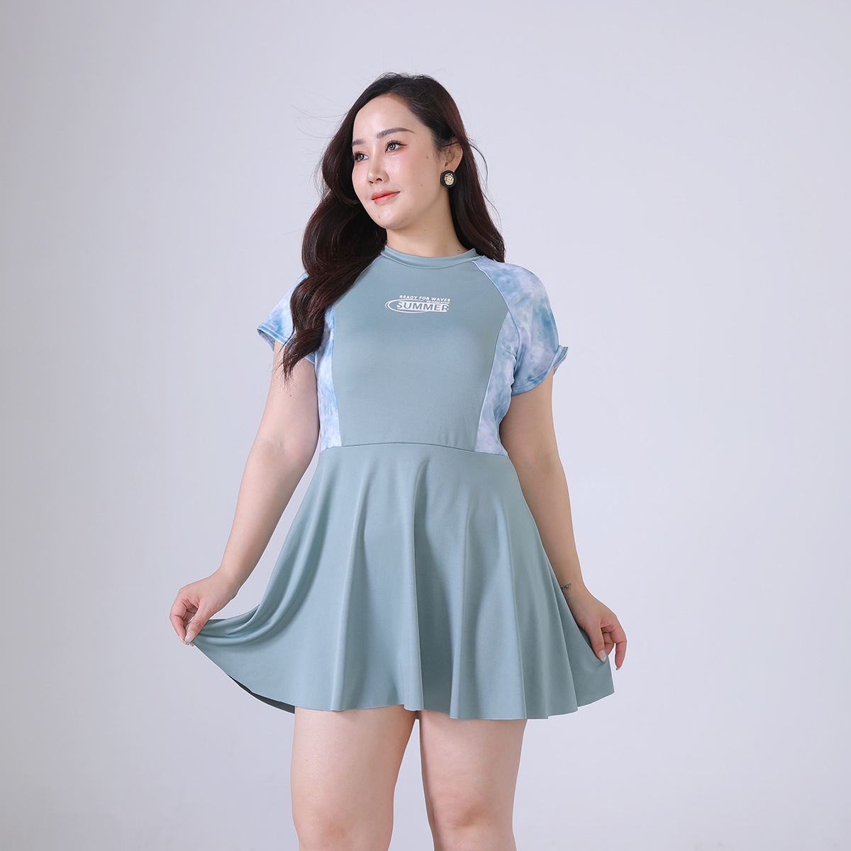 뚱뚱한 mm 원피스 수영복 학생 소녀 한국 스타일 속건 스포츠 수영복 프린트 온천 대학 스타일 수영복