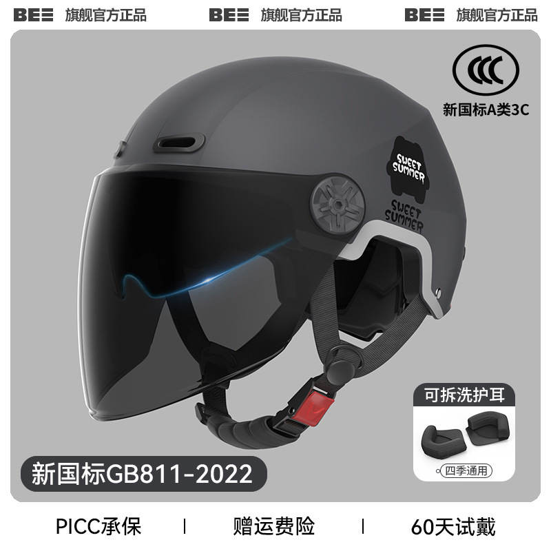 • 3C 아이스 크리스탈 블루 [선크림 반바지] + 사계절 탈부착 귀 보호, 새로운 국가 표준 카테고리 A
