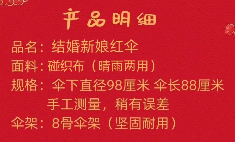 빨간 우산 웨딩 신부 우산 중국 웨딩 웨딩 용품 빨간색 약혼 결혼 레이스 웨딩 긴 손잡이 우산스토어 가기
