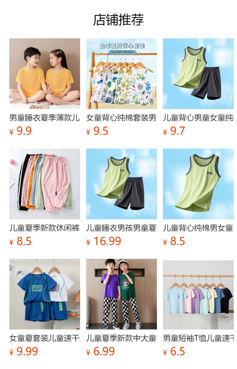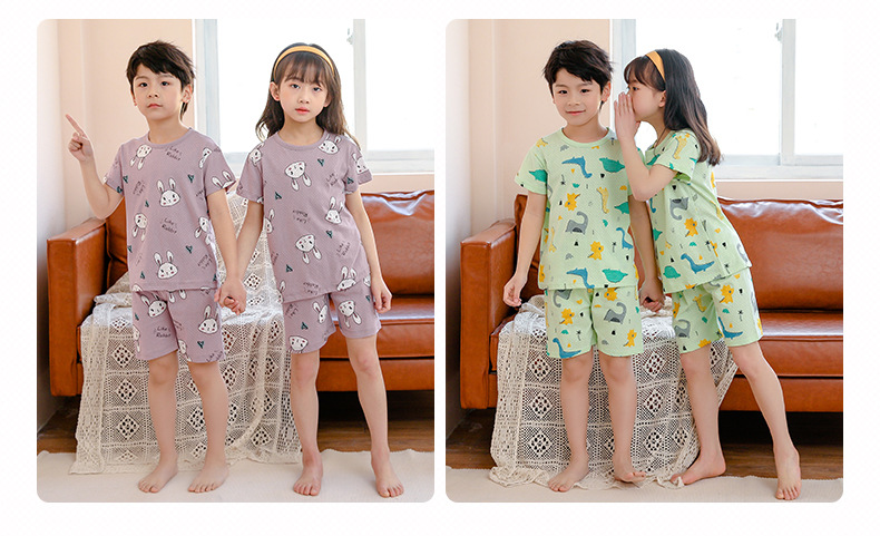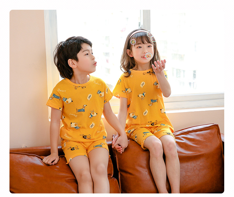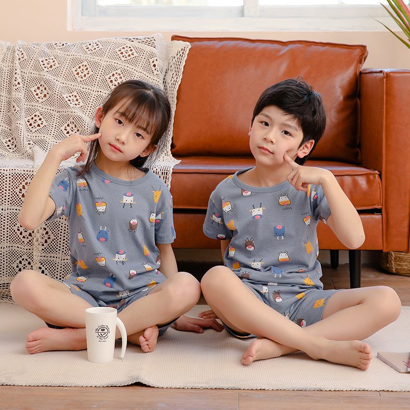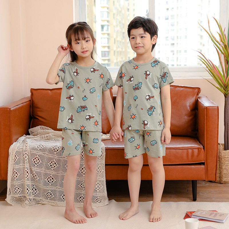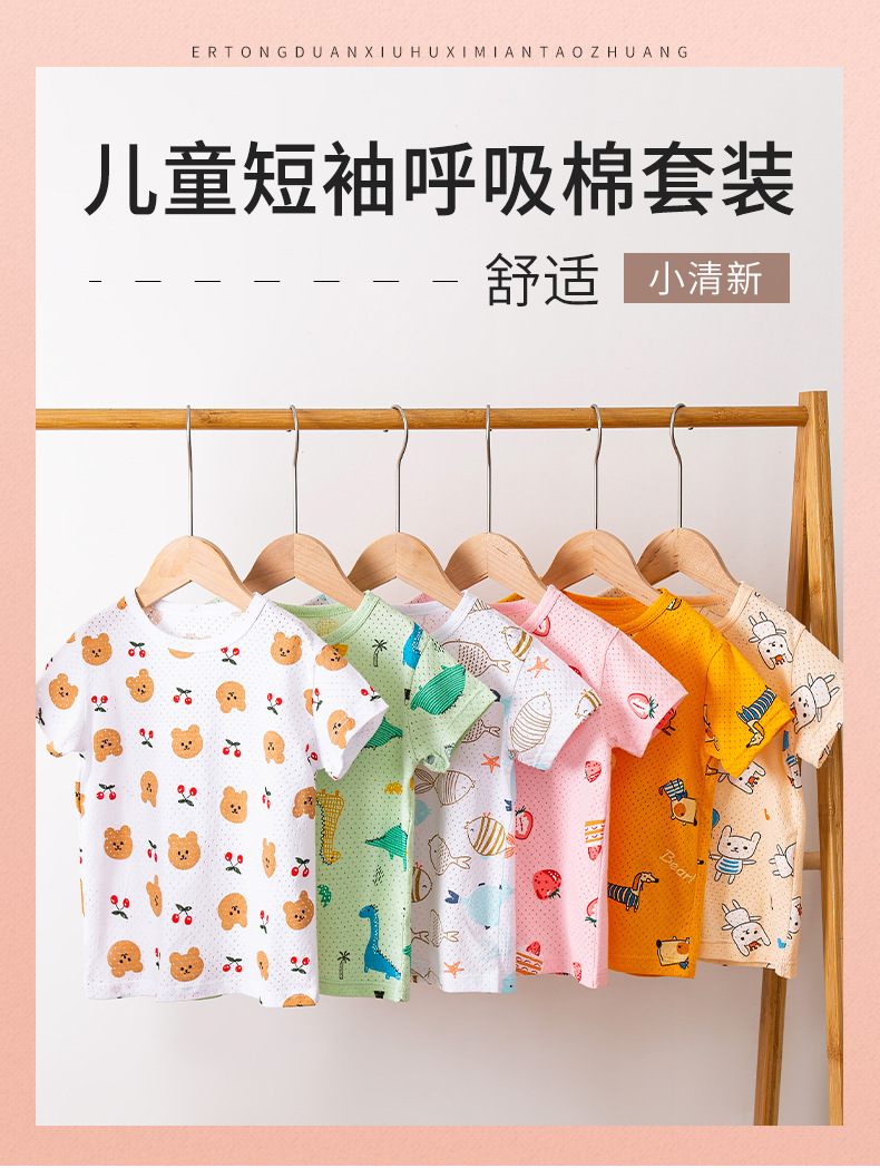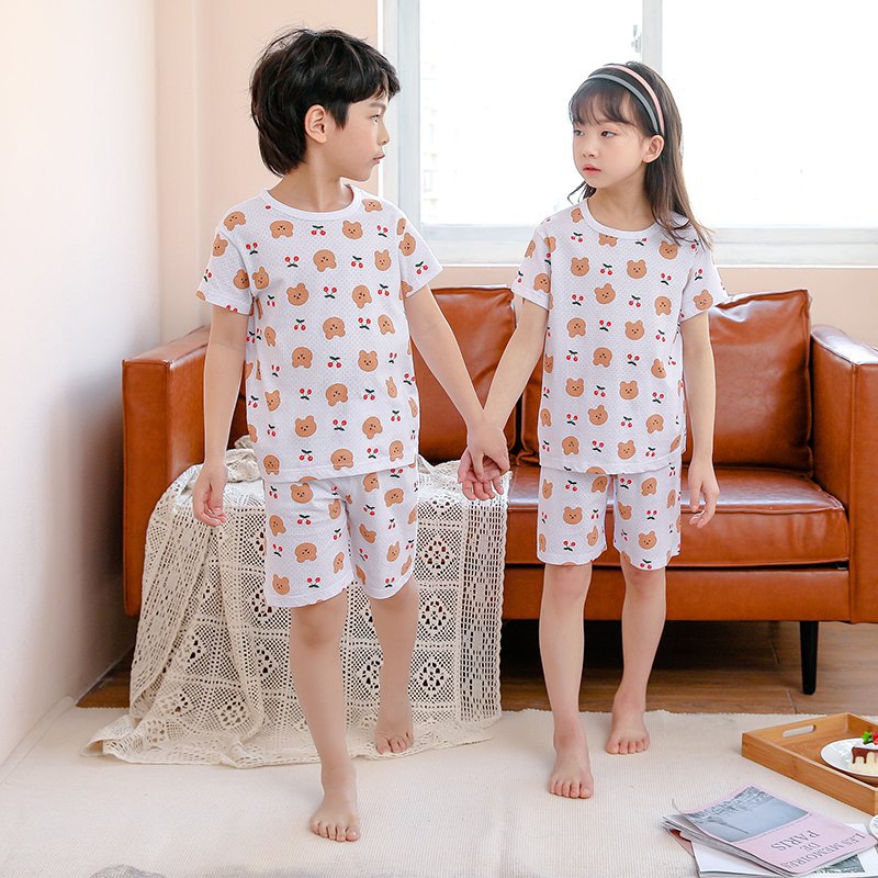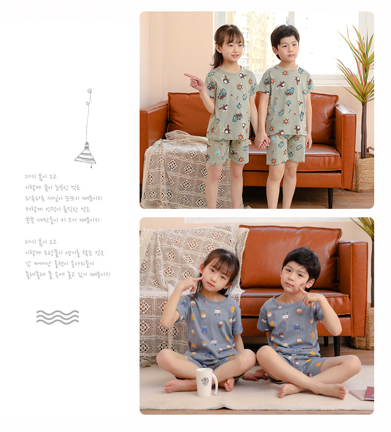 아동 잠옷 순면 여름 신작 메쉬 가정복 소년 반팔 반바지 소녀 베이비 슈트 에어컨 의류스토어 가기
