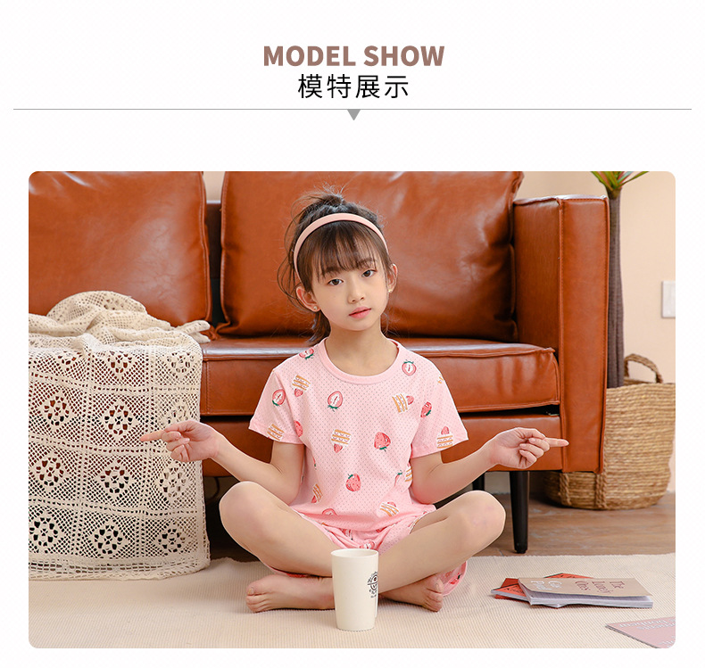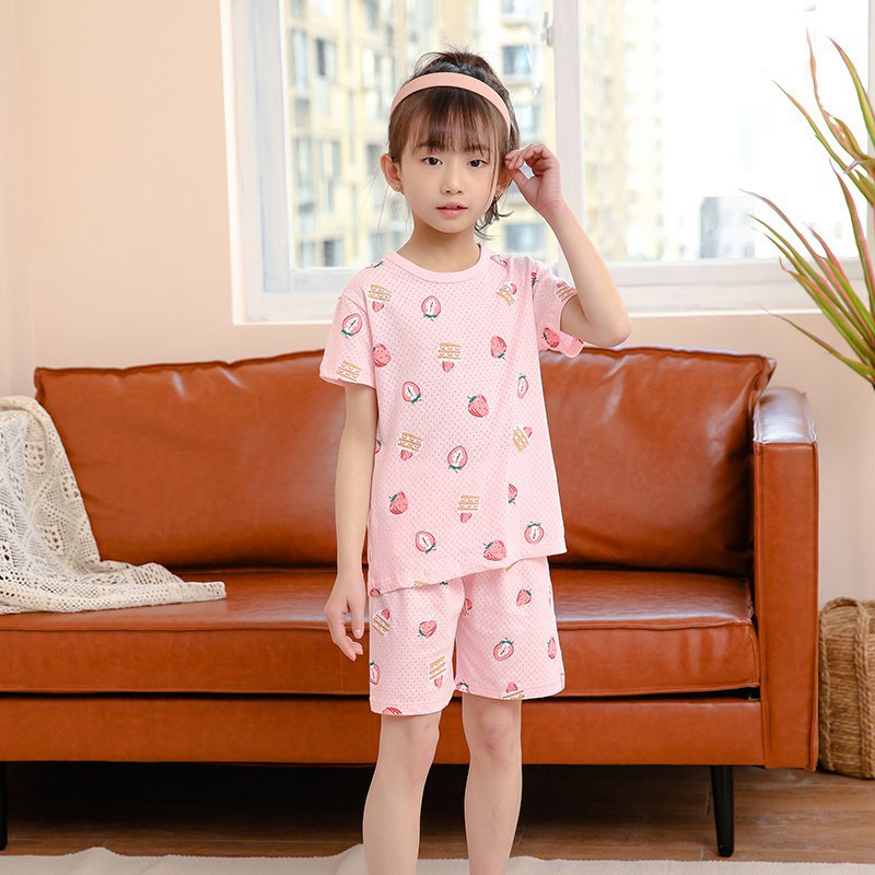 아동 잠옷 순면 여름 신작 메쉬 가정복 소년 반팔 반바지 소녀 베이비 슈트 에어컨 의류