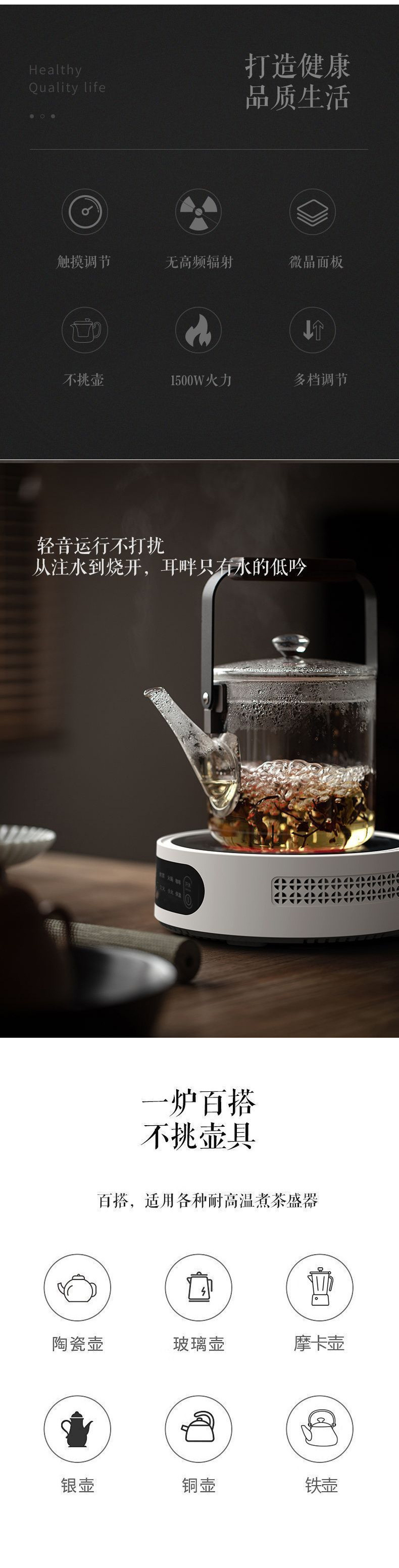전체 유리 차 요리, 스마트 전기 세라믹 스토브, 가정용 소형 차 스토브, 물 끓이는 건강 보존 주전자, 차 전자레인지, 항온스토어 가기