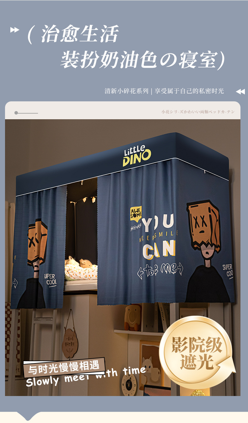 강력한 가리개 기능을 갖춘 학생 기숙사 침대 커튼, 모기장, 일체형 기숙사 이층 침대, 싱글 침대 가리개 커튼스토어 가기