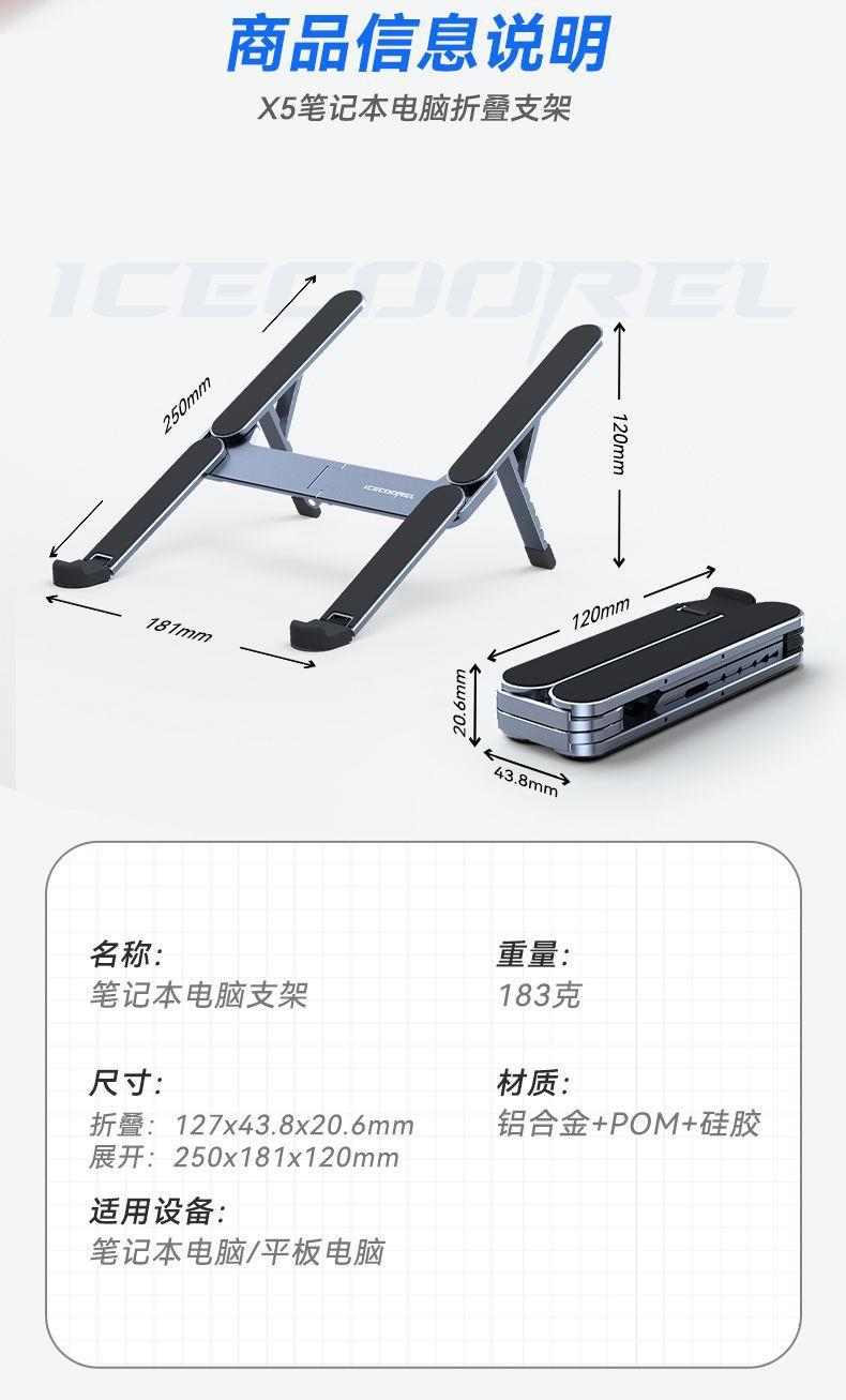 코어 아이스 노트북 스탠드 알루미늄 합금 높이 스탠드 냉각 데스크탑 오피스 접이식 휴대용 베이스스토어 가기