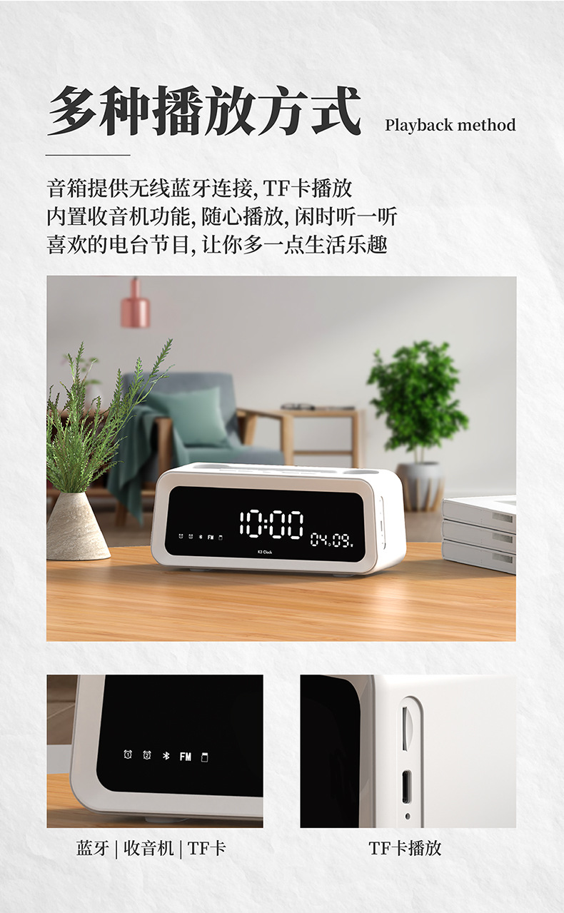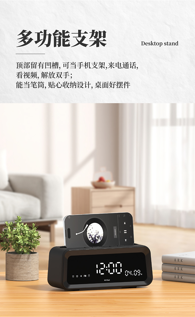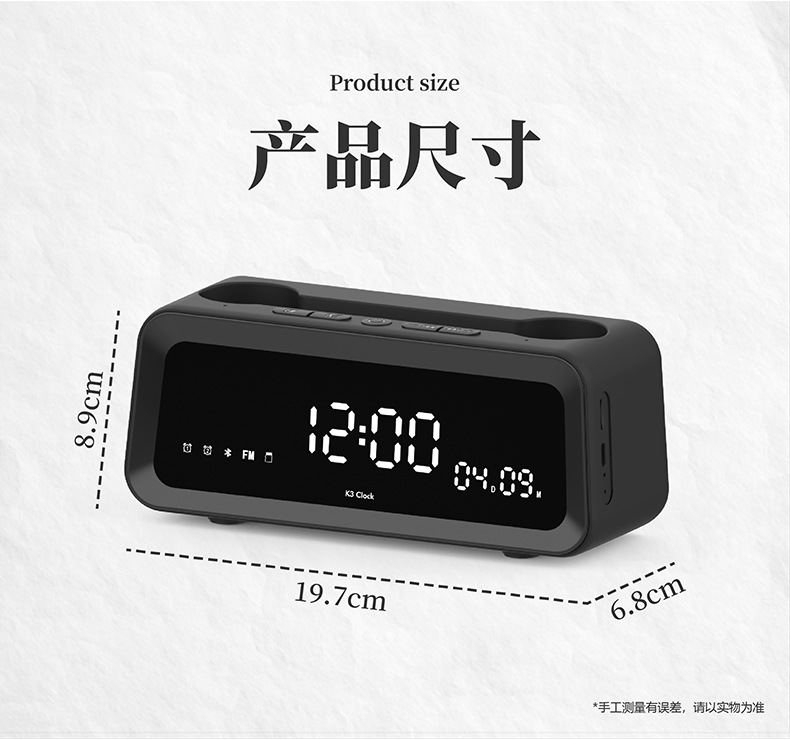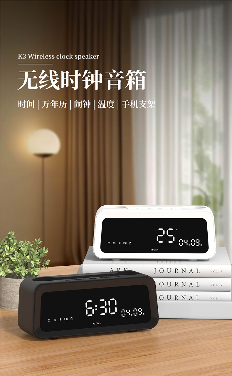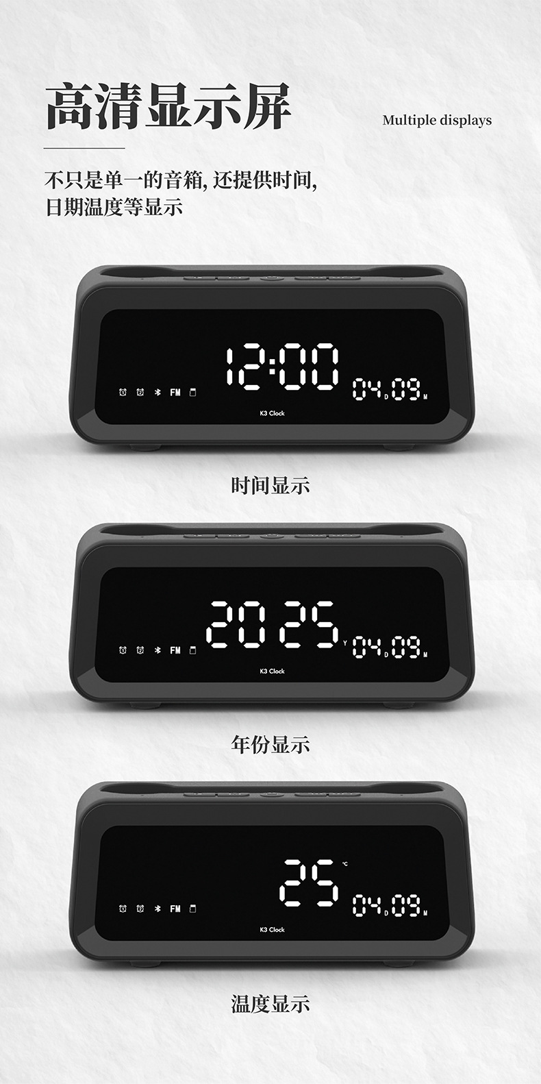 국경 간 새로운 K3 무선 블루투스 스피커 서브 우퍼 듀얼 알람 시계 데스크탑 영구 달력 온도계 소형 스피커