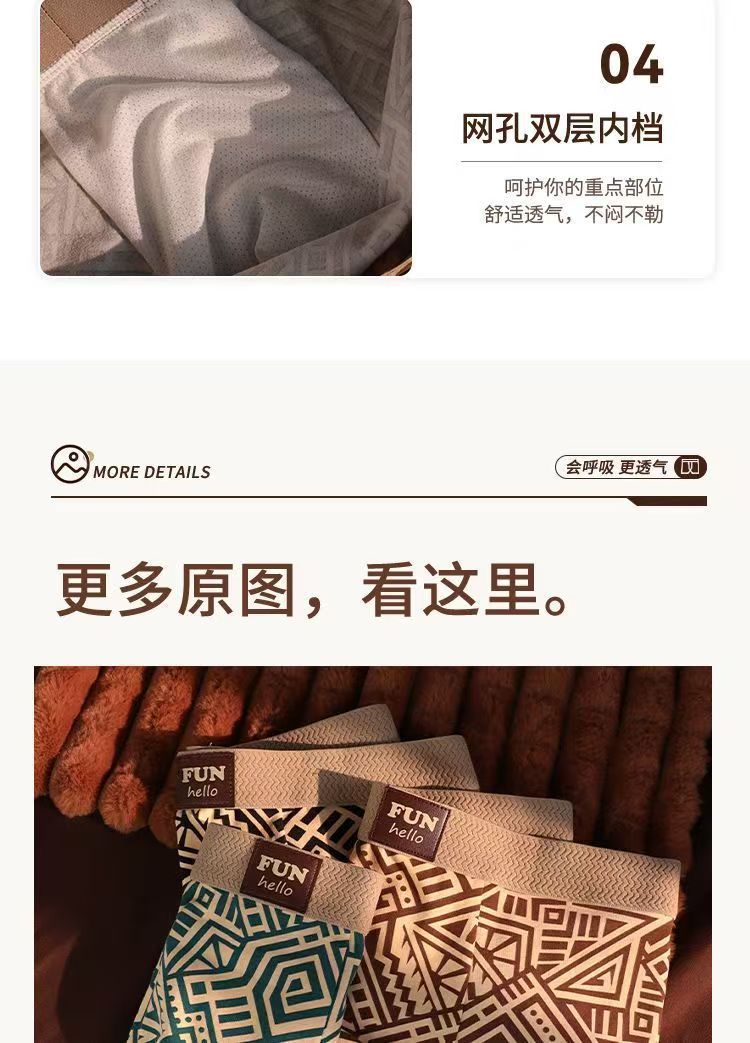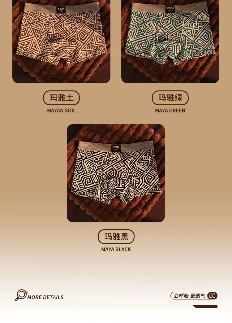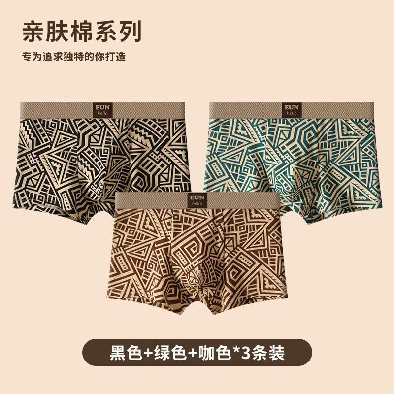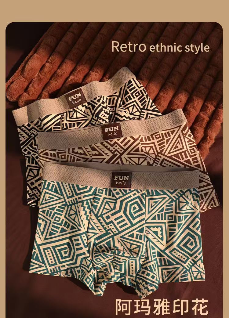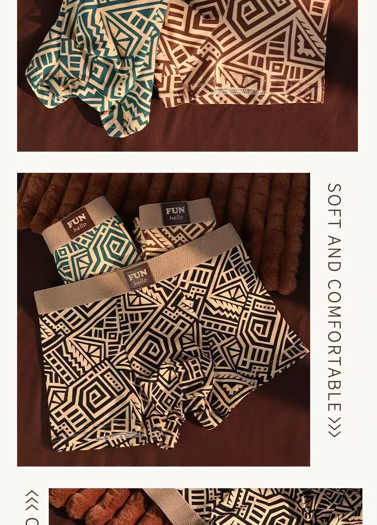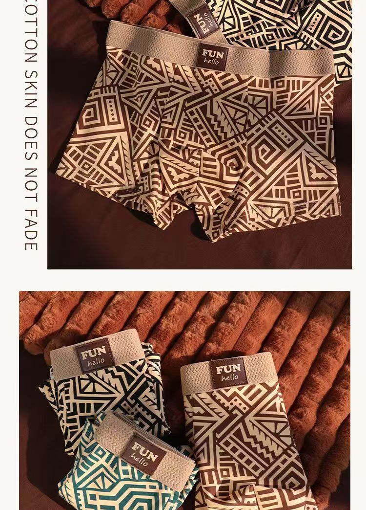레트로 스타일 남성 속옷, 기하학적 맞춤형 프린트, 사각형, 편안하고 통기성이 뛰어나며 트렌디한 남아용 사각 팬티, 드롭 배송