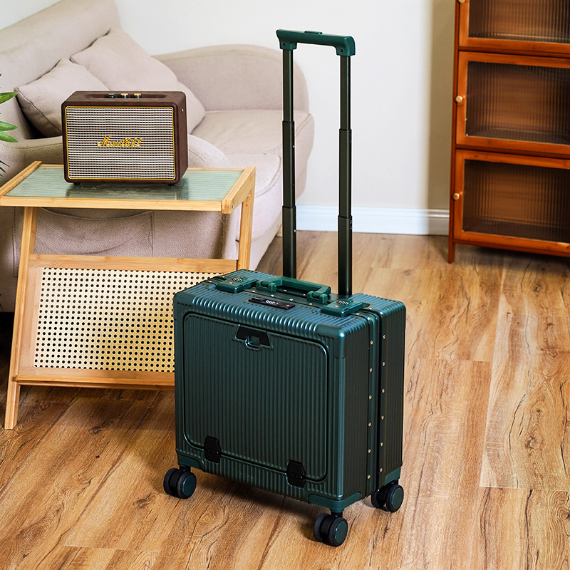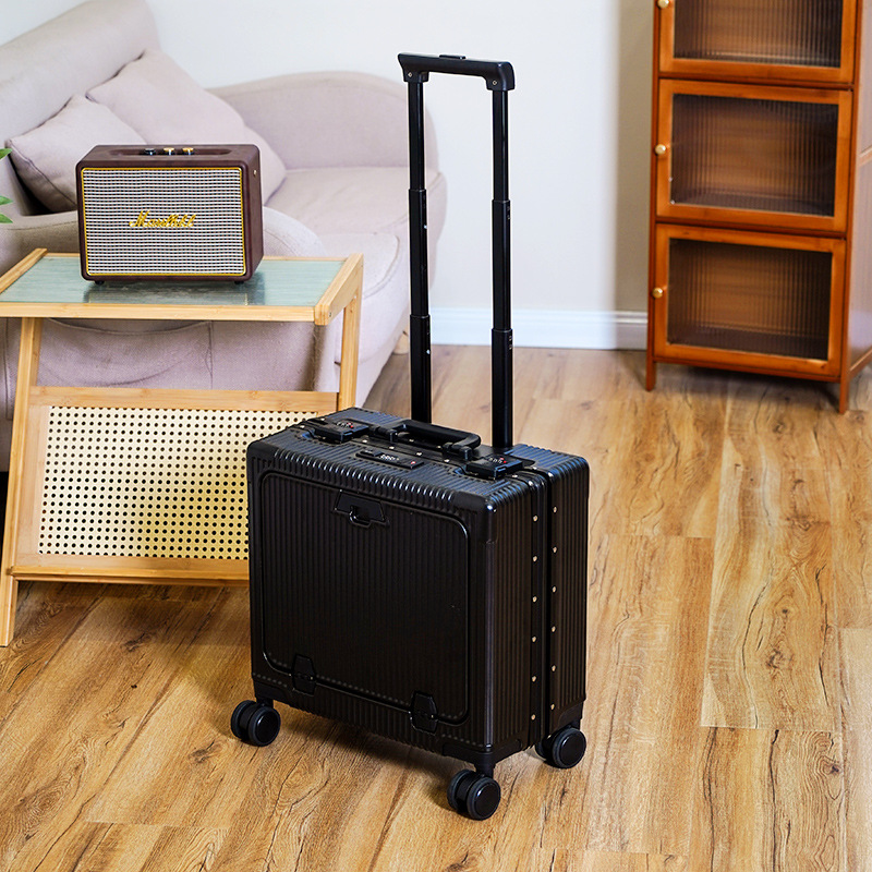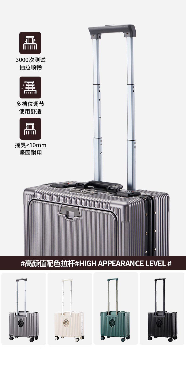 20inch 전면 개방형 다기능 학생 트롤리 케이스 알루미늄 프레임 컴퓨터 가방 남성과 여성 범용 휠 탑승 케이스 비밀번호