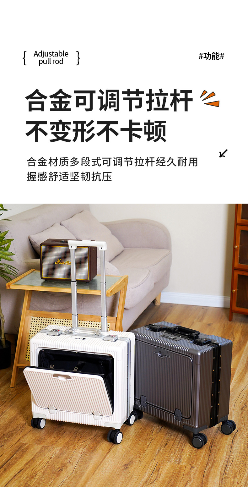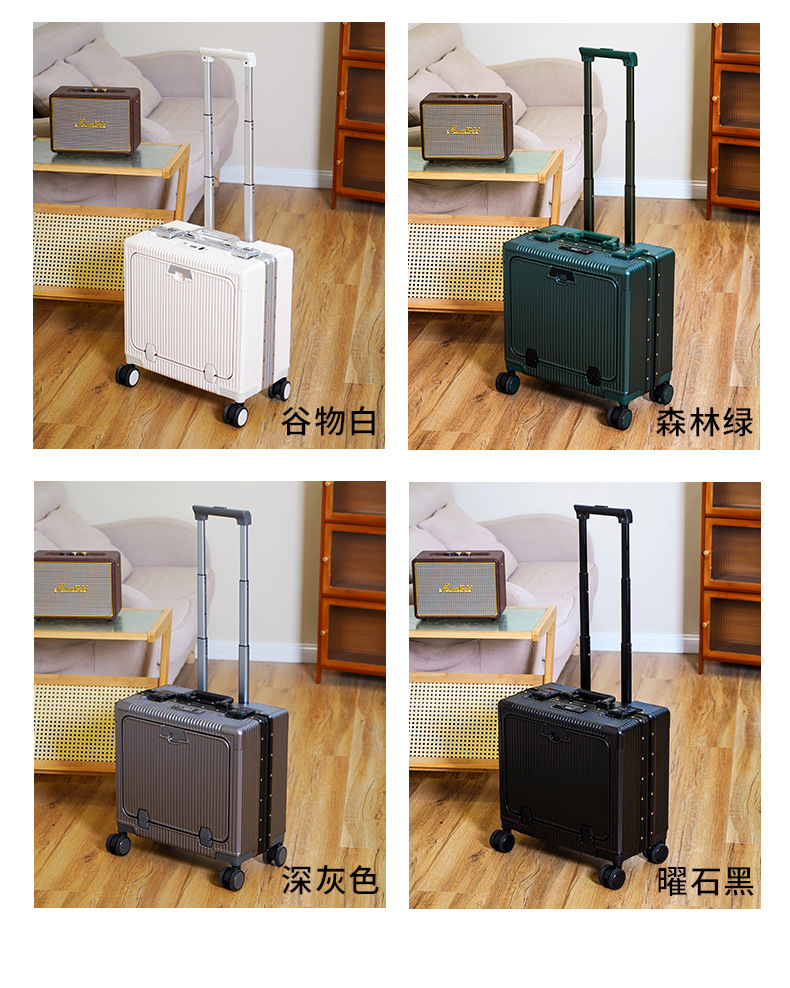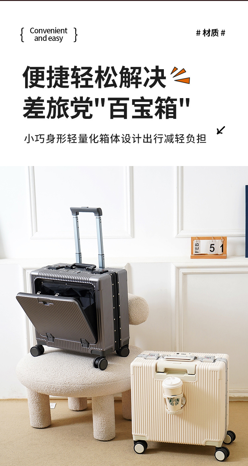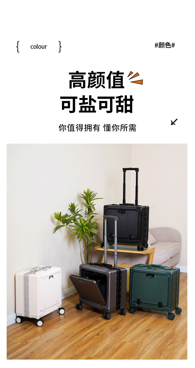 20inch 전면 개방형 다기능 학생 트롤리 케이스 알루미늄 프레임 컴퓨터 가방 남성과 여성 범용 휠 탑승 케이스 비밀번호스토어 가기