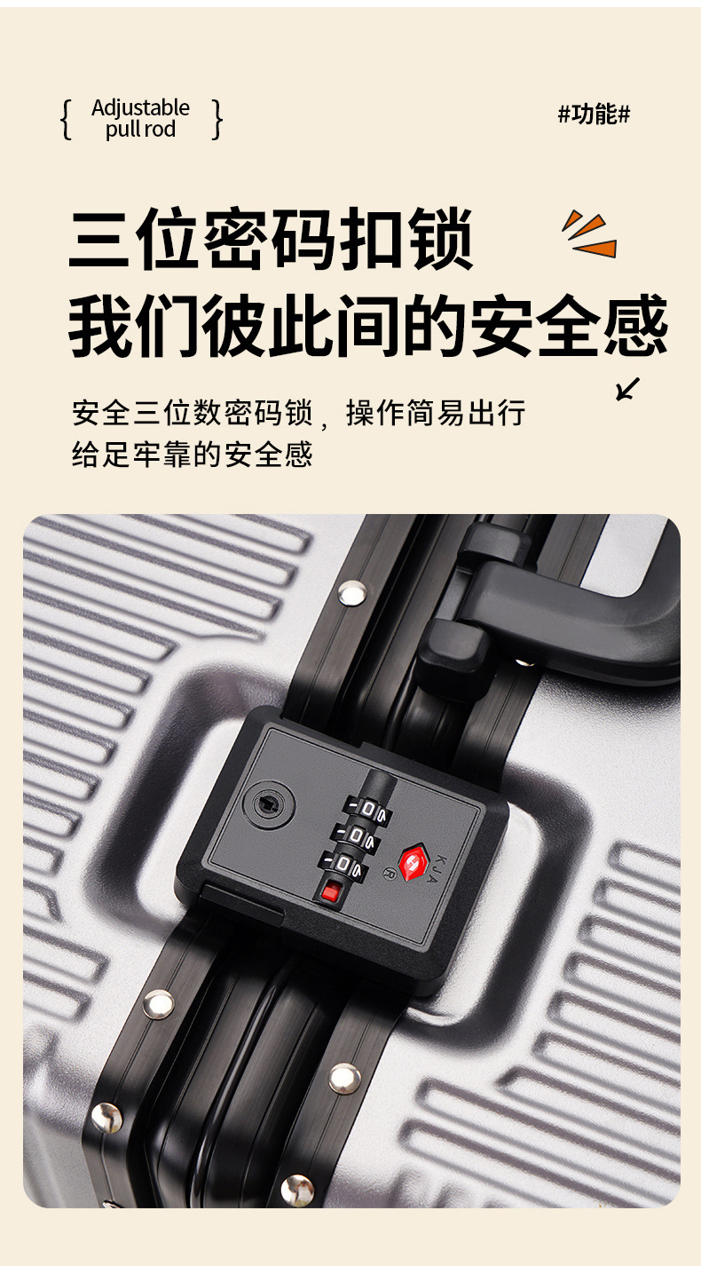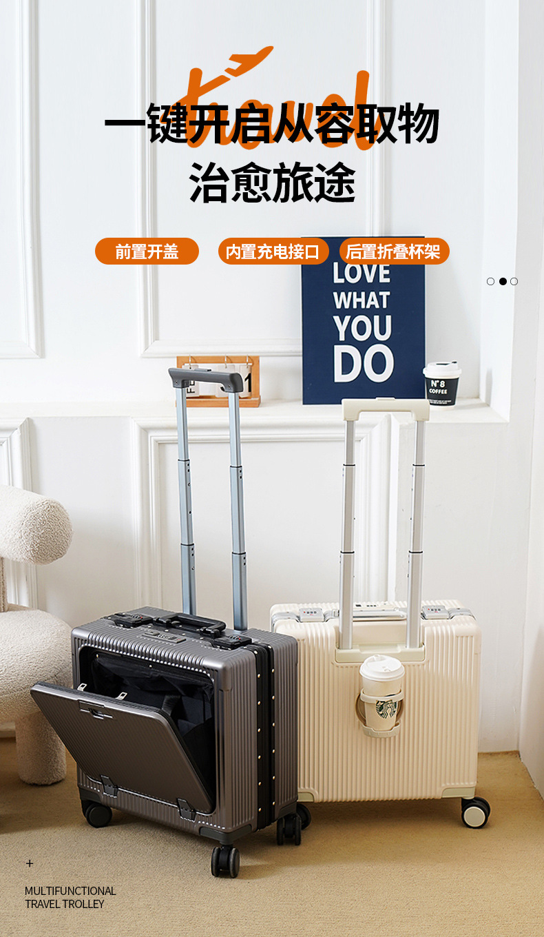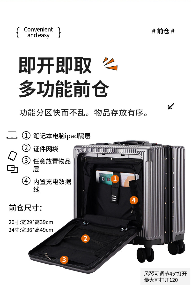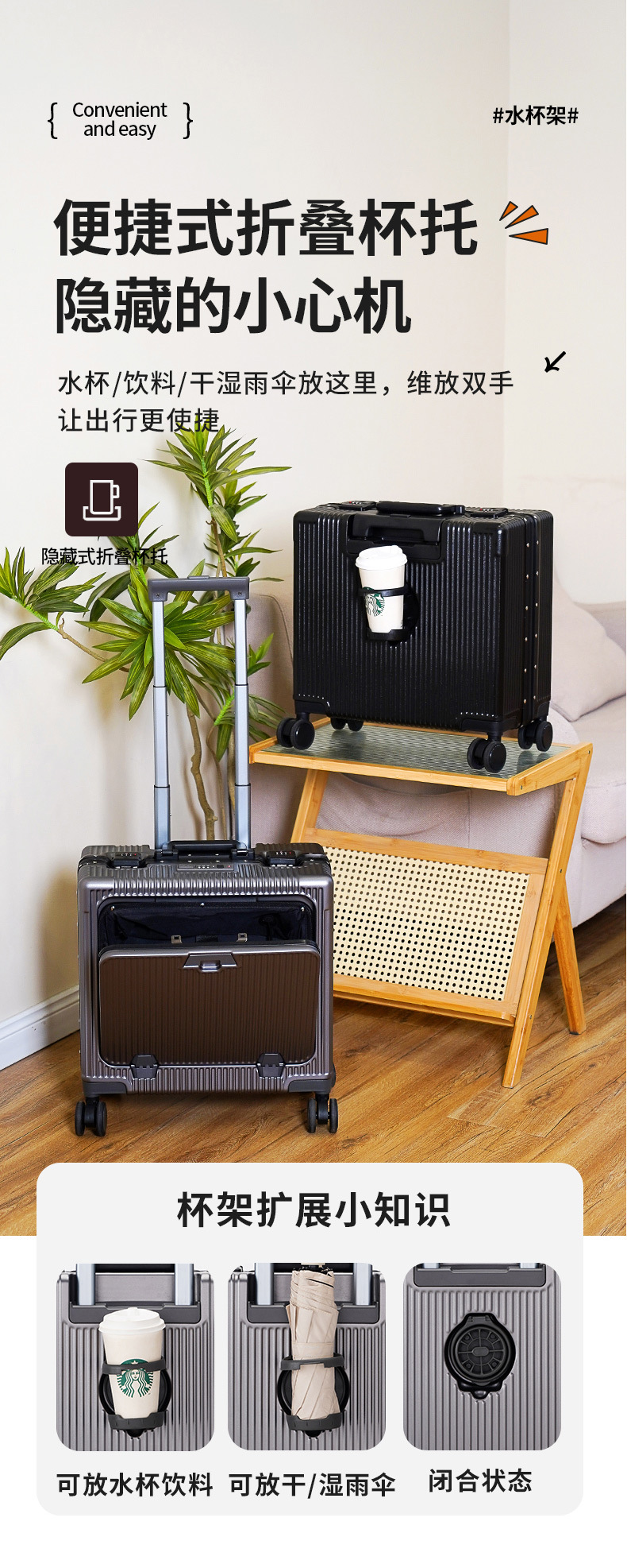 20inch 전면 개방형 다기능 학생 트롤리 케이스 알루미늄 프레임 컴퓨터 가방 남성과 여성 범용 휠 탑승 케이스 비밀번호스토어 가기