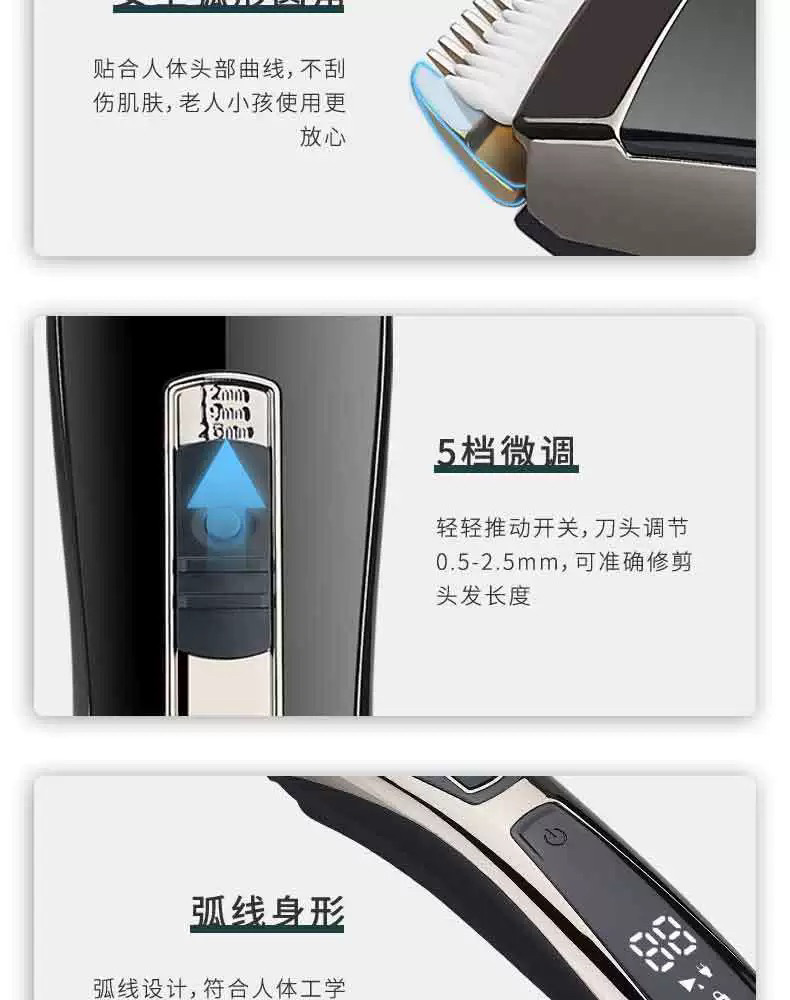 독일 세이코 고출력 전기 머리 깎기 충전식 스마트 디지털 디스플레이 전기 머리 깎기 성인, 유아 및 어린이용 자동