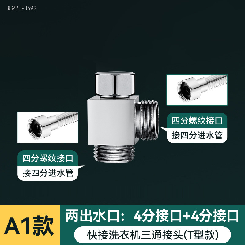 • [두꺼운 구리] T자형 3방향 물 분배기(세탁기 노즐 4점 + 세탁기 노즐 4점)