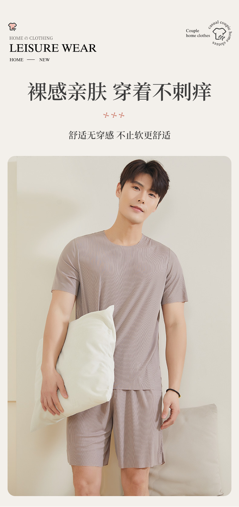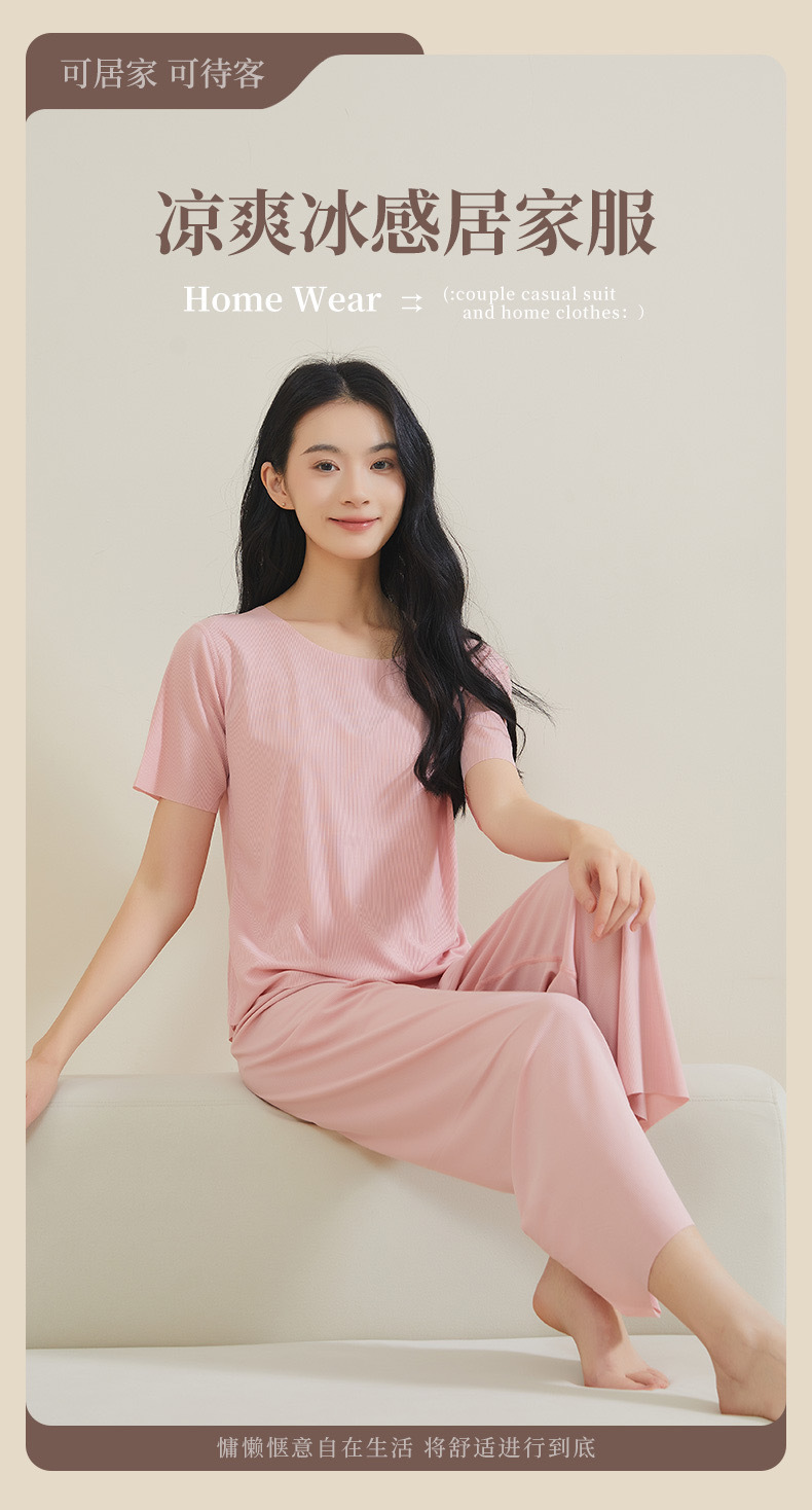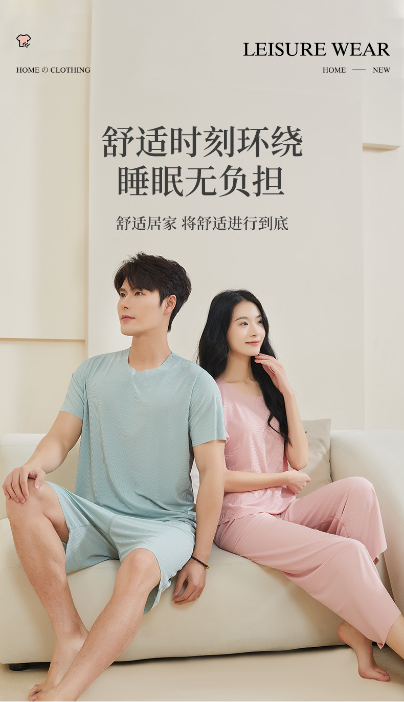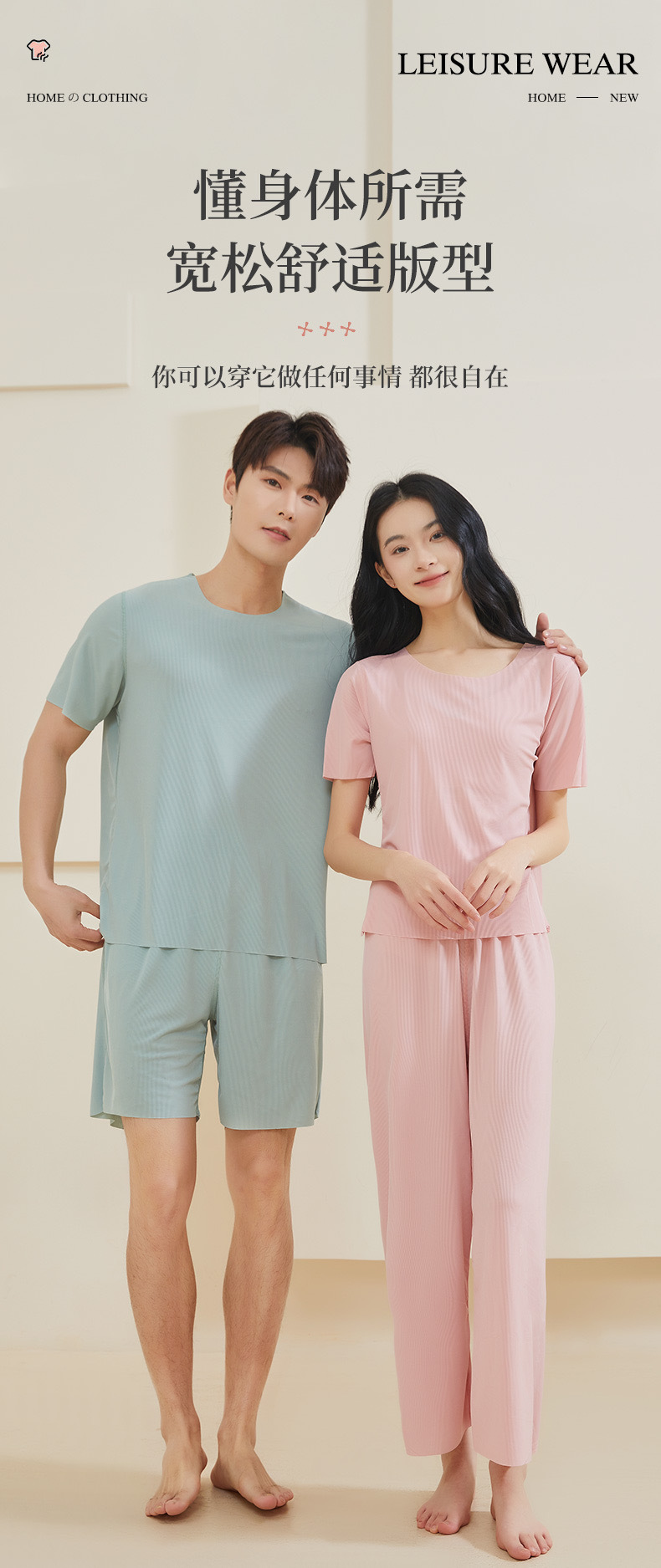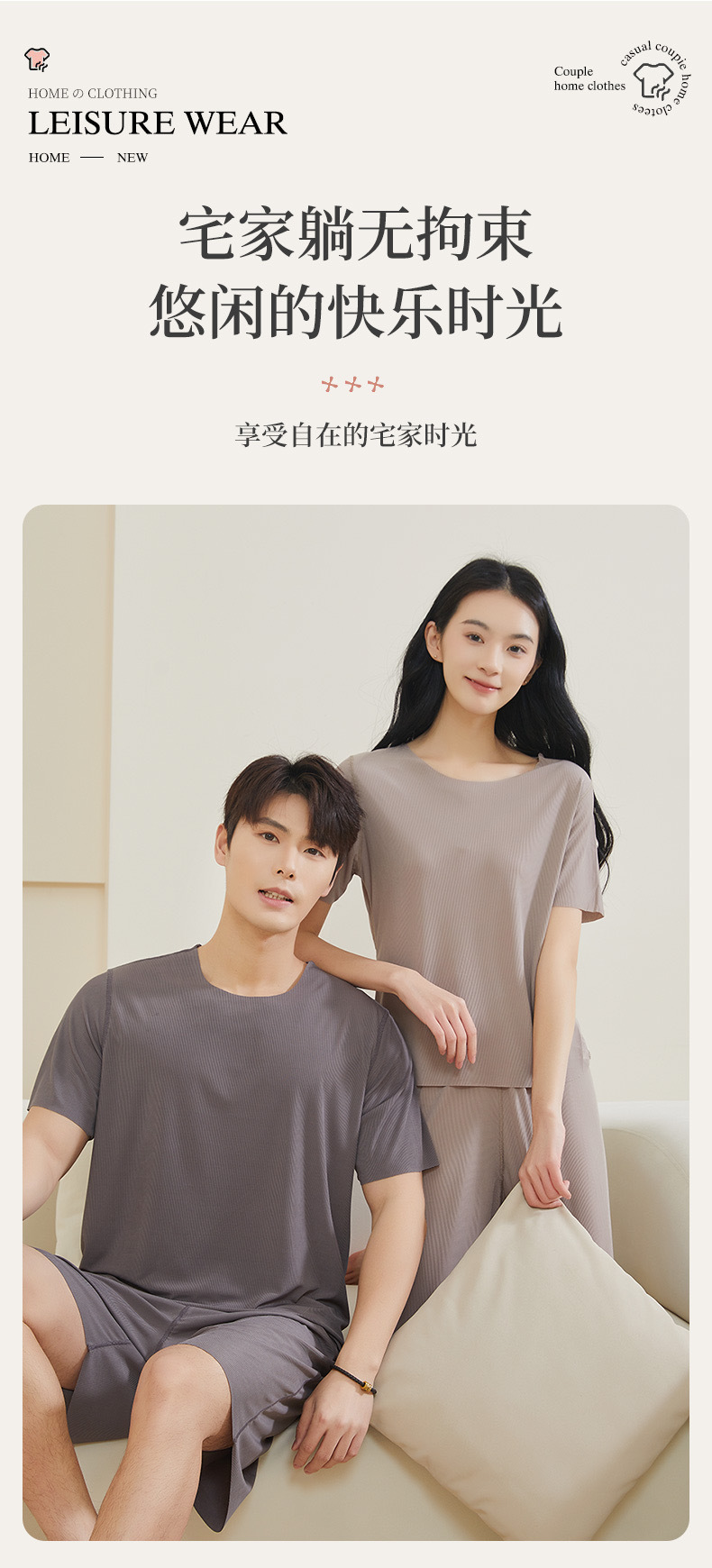 커플 홈웨어 세트, 여성용 아이스 실크 얇은 홈 파자마, 여름 반팔 반바지, 편안한 캐주얼웨어스토어 가기