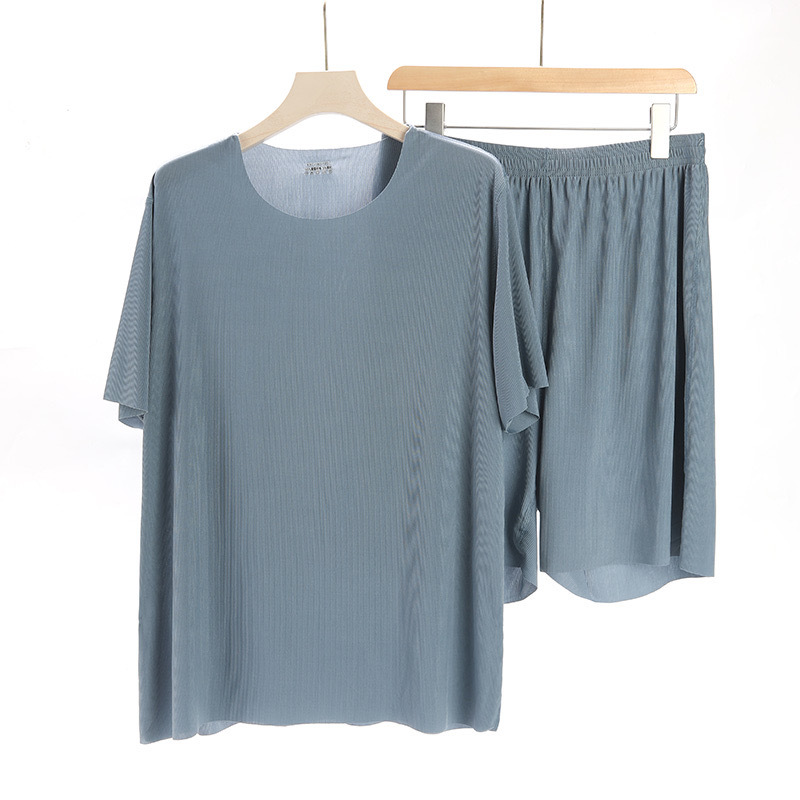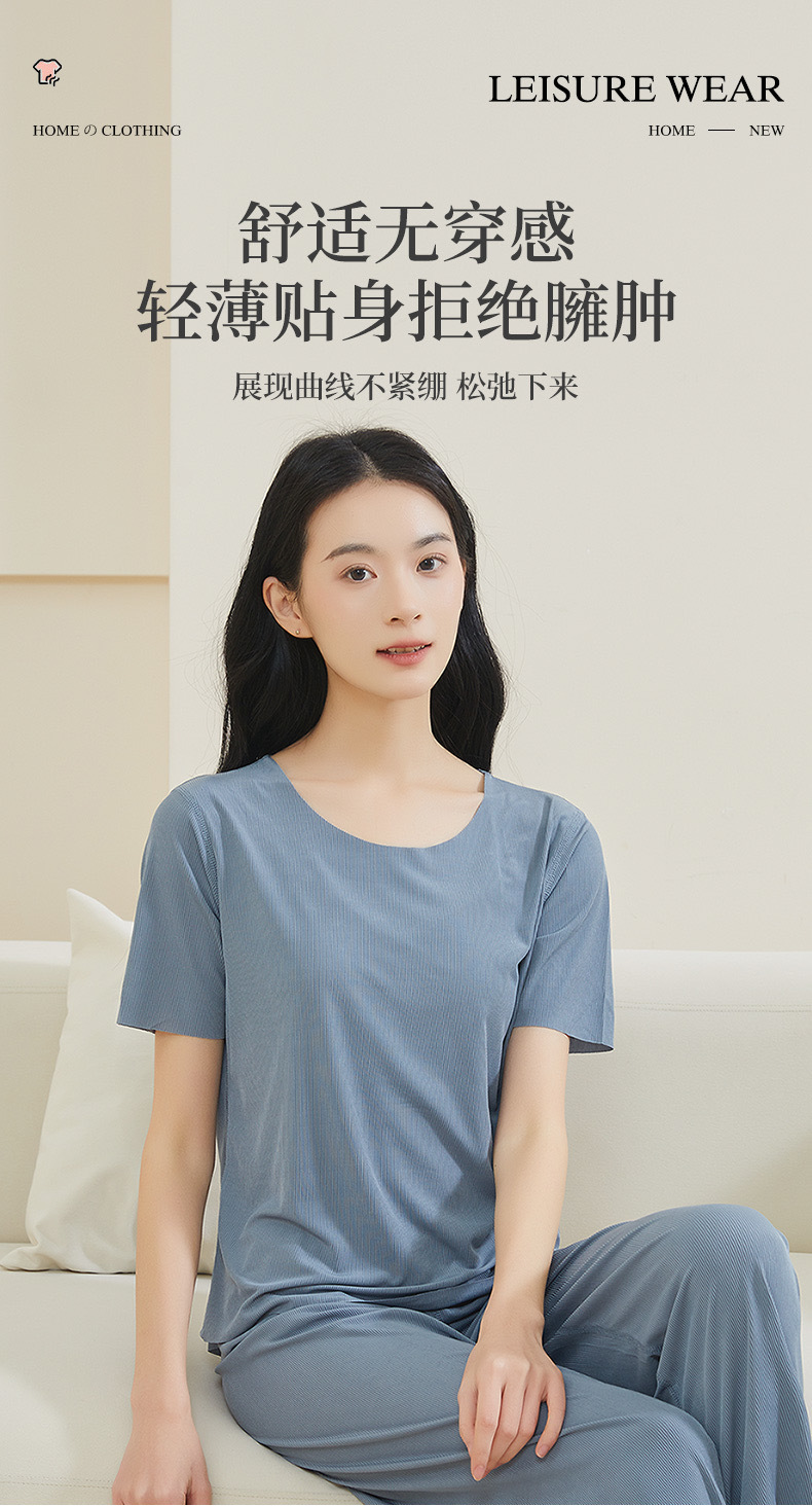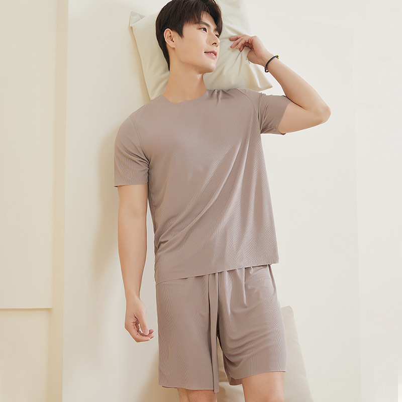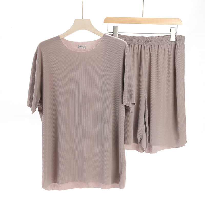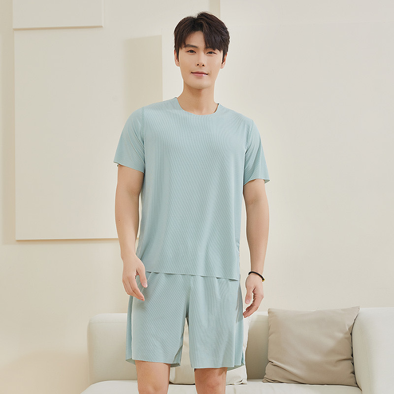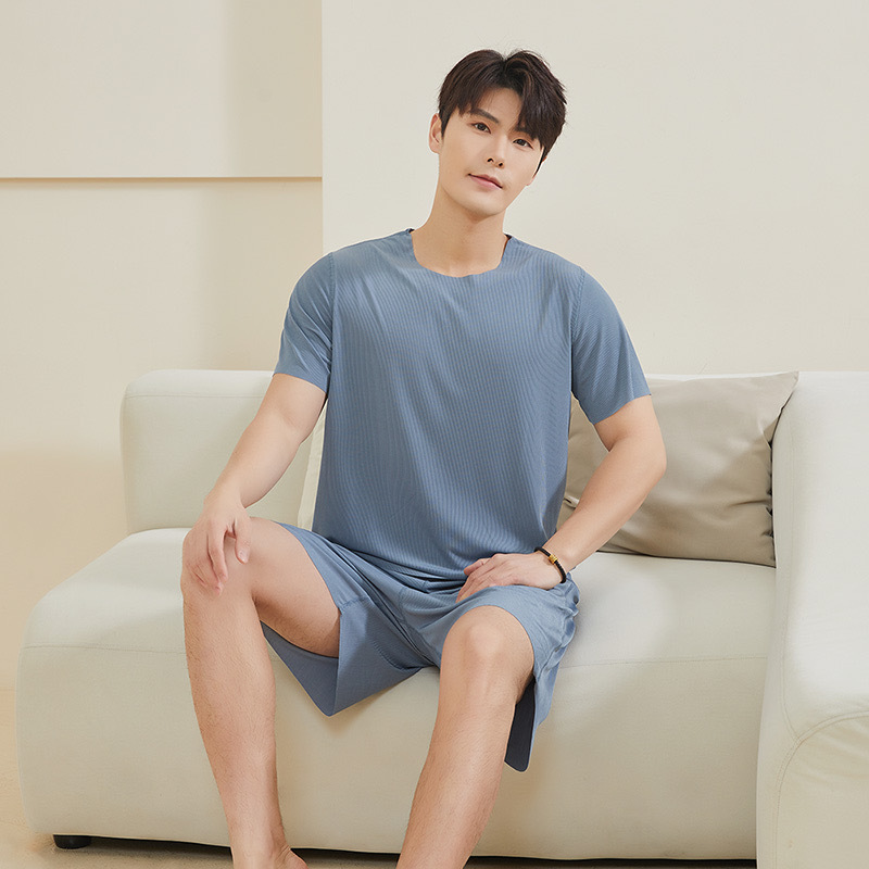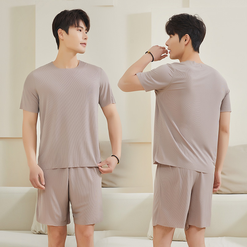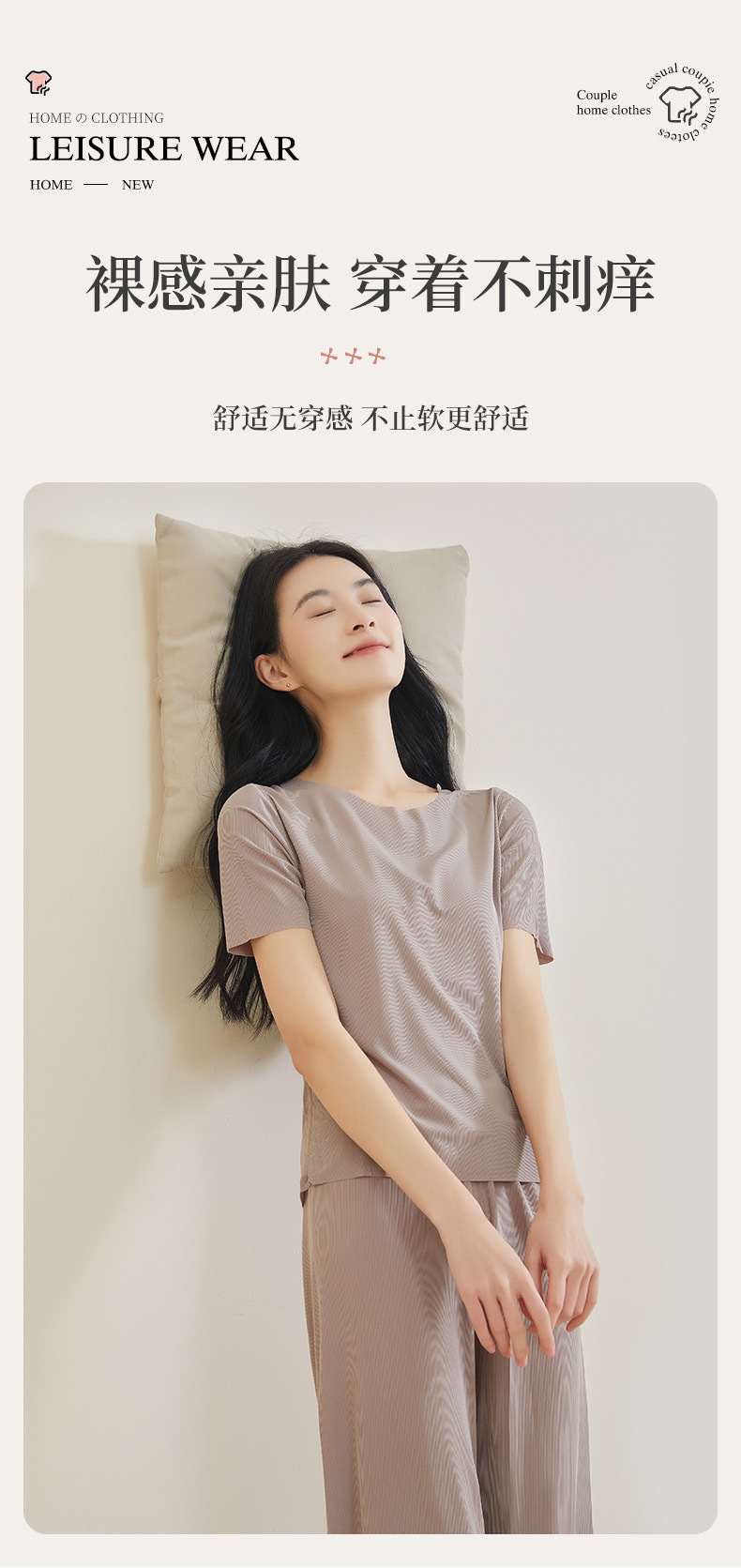 커플 홈웨어 세트, 여성용 아이스 실크 얇은 홈 파자마, 여름 반팔 반바지, 편안한 캐주얼웨어스토어 가기