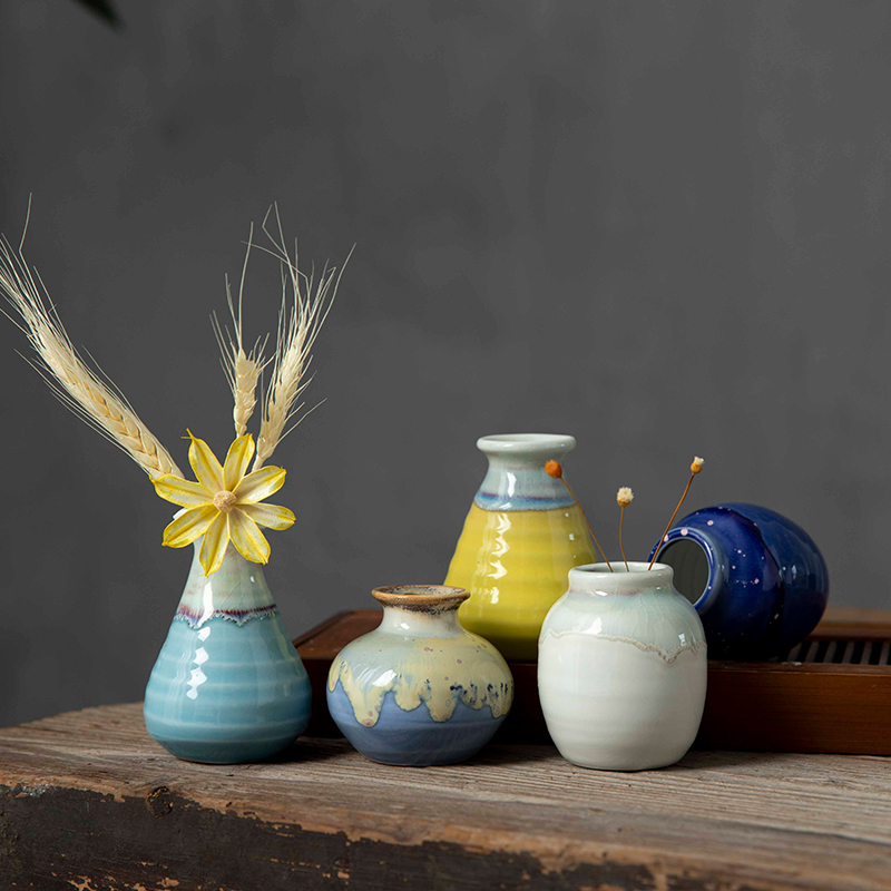 Jingdezhen 세라믹 작은 꽃병 ins 스타일 침실 수경 식물 거실 장식품 꽃꽂이 말린 꽃 수제 장식품