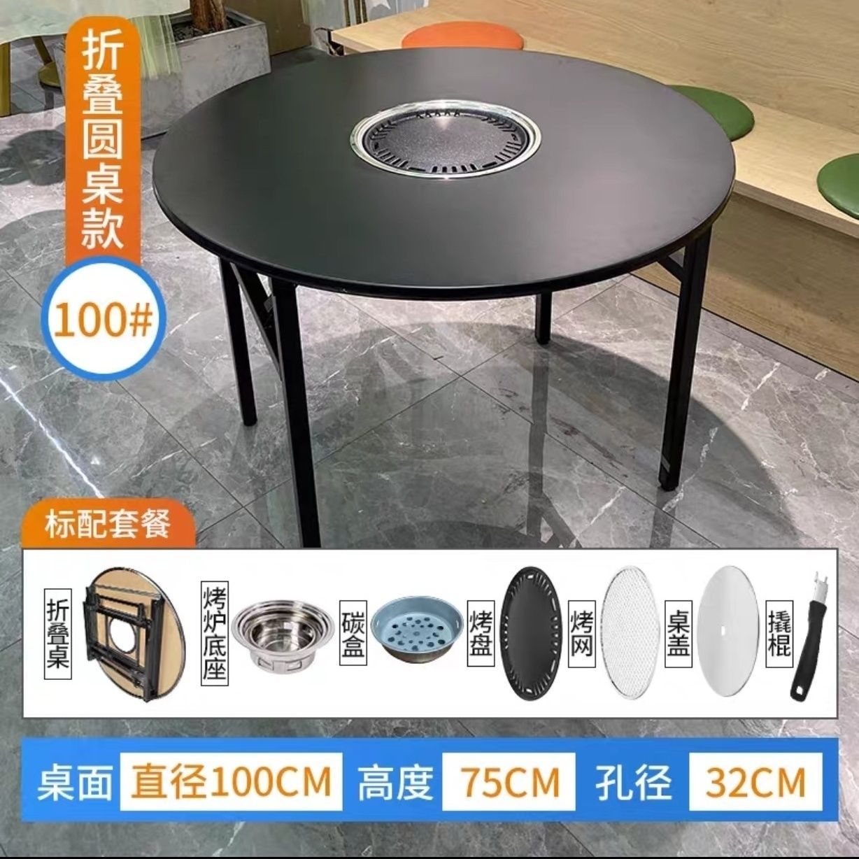 • 검정색 원형 테이블 인쇄 표면 접이식 90 높이 50(오븐 전체 세트 포함)