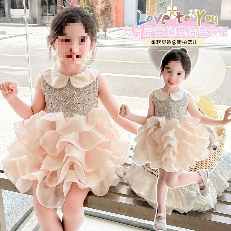 여자 드레스 여름 드레스 2025 새로운 스타일 어린이 조끼 드레스 거즈 스커트 어린 소녀 여름 케이크 스커트스토어 가기