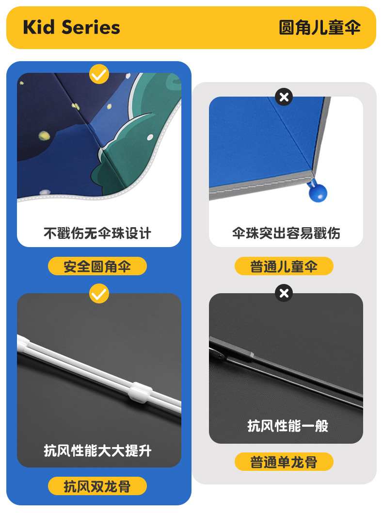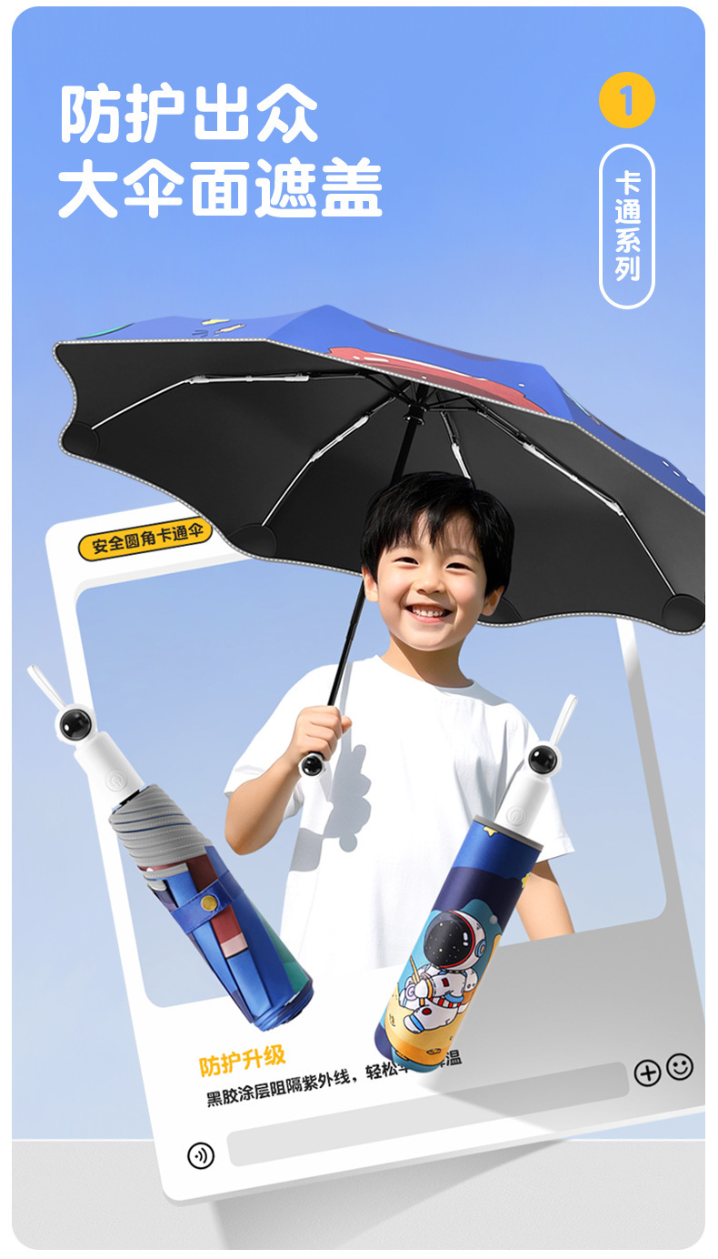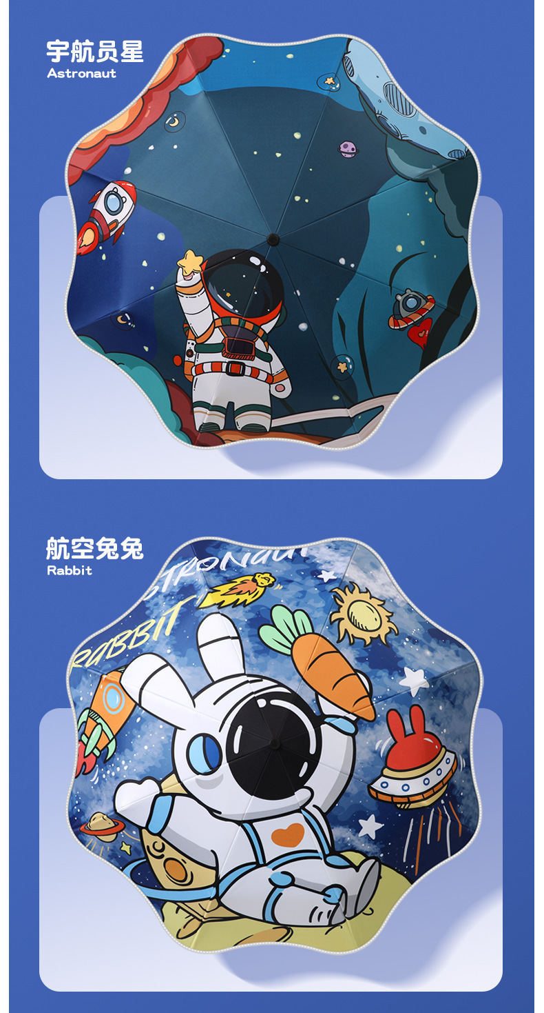 우주 비행사 안전 만화 둥근 모서리 어린이 우산 가장자리 반사 스트립 학생 태양 우산 제조 업체 재고 있음