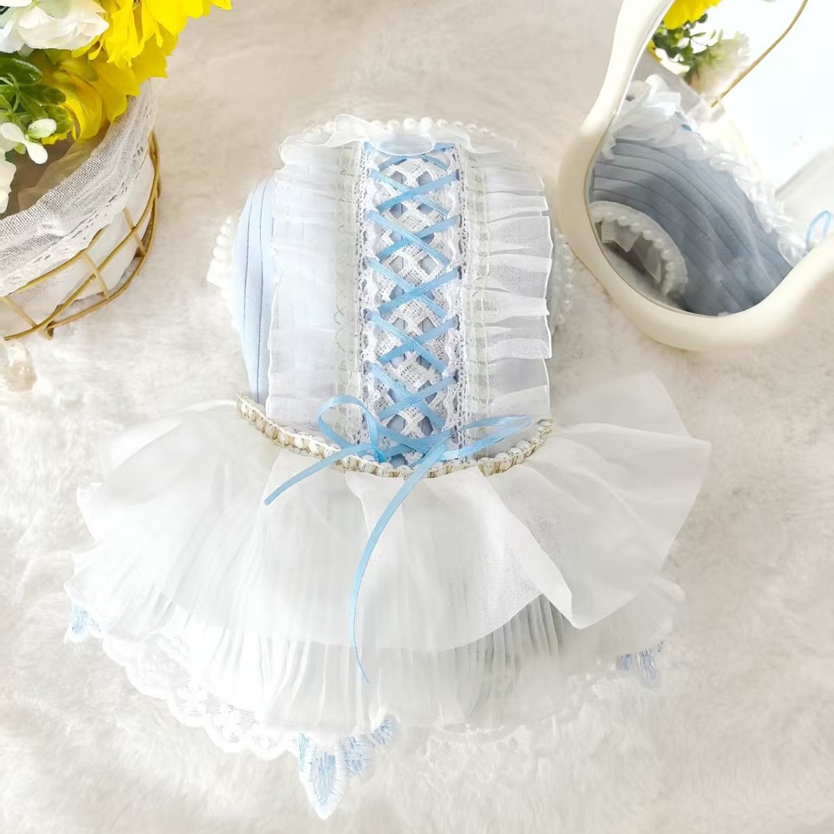 애완 동물 고양이와 개 봄과 여름 레이스 진주 레이스 발레 댄스 스타일 스커트 중소형 개와 고양이스토어 가기